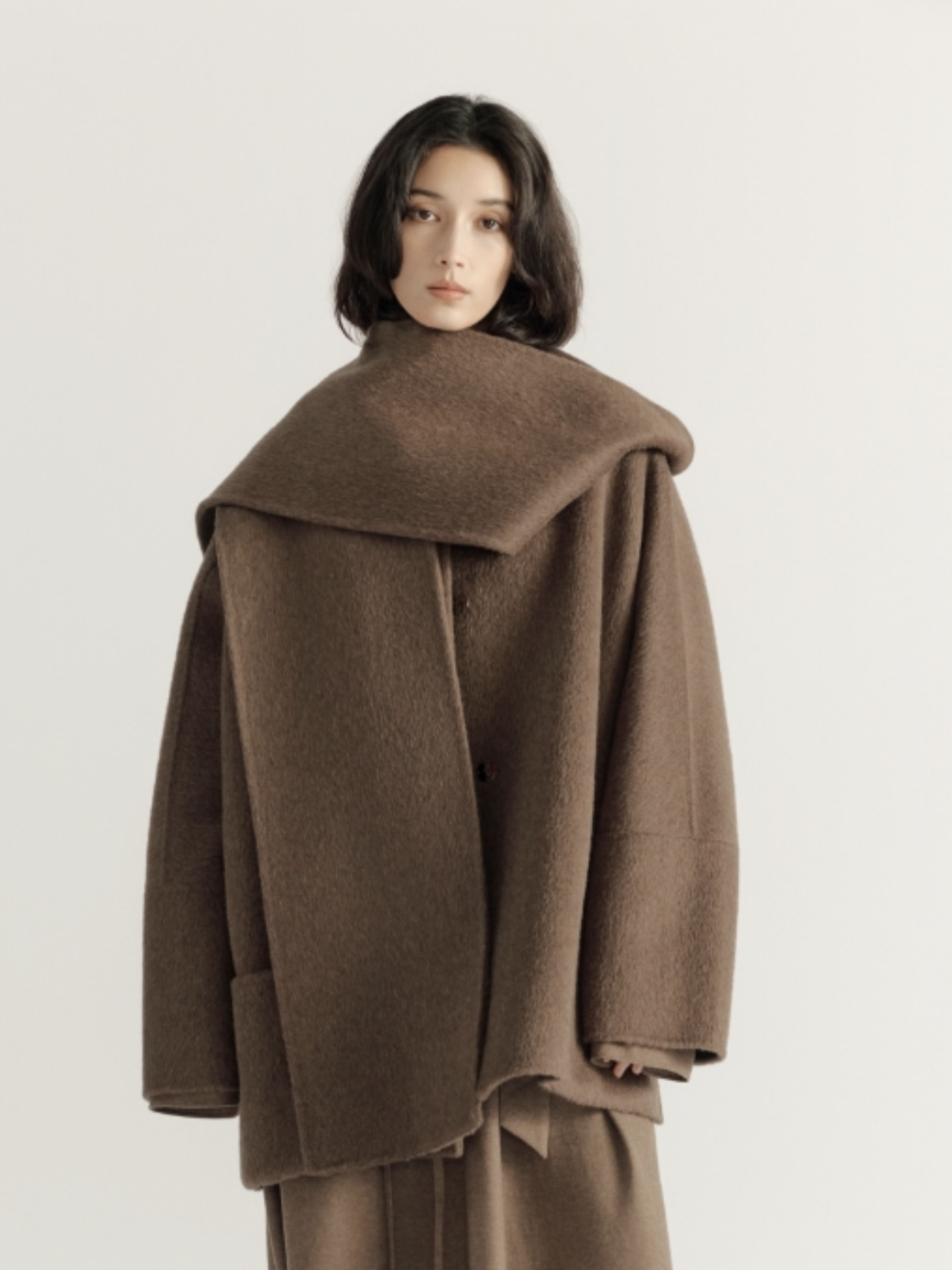 DONSEE10|DS10AW2509-A 深灰棕 围巾简约短外套