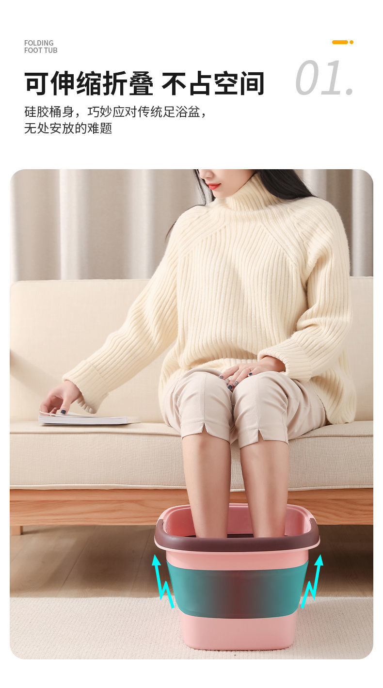 可折叠泡脚桶塑料洗脚盆家用足浴盆便携式过小腿按摩洗脚桶高深桶