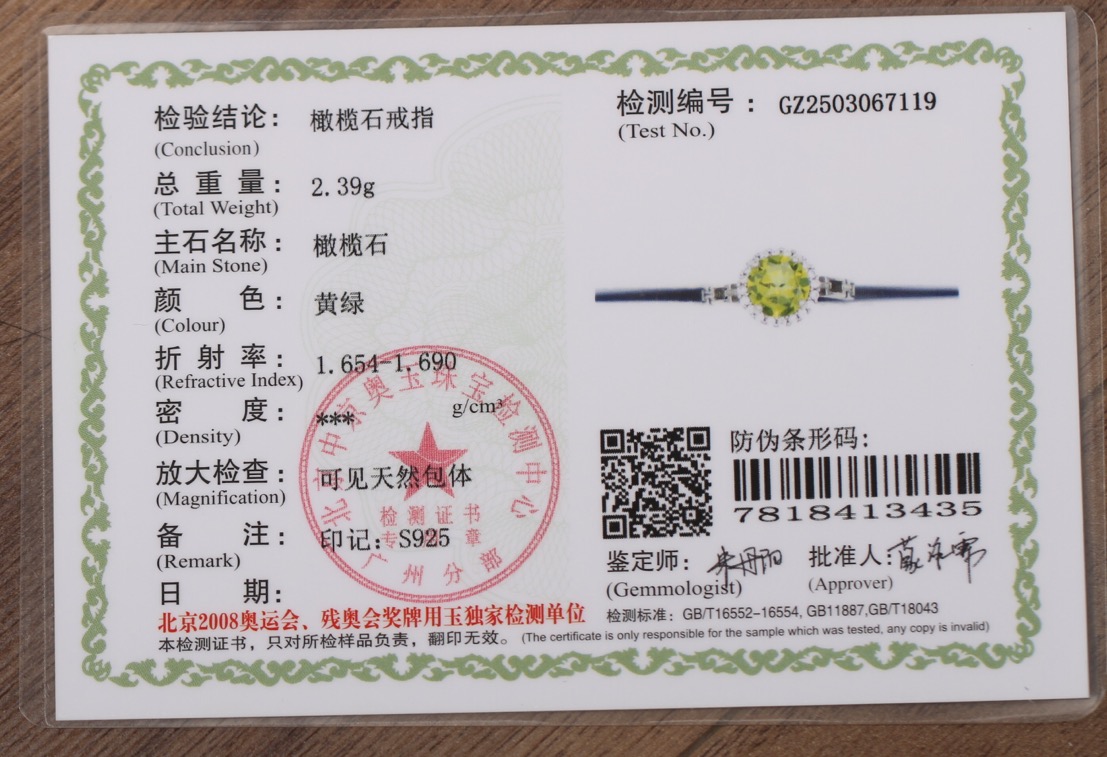 【莺时】橄榄石戒指 ,镶嵌:925银镶