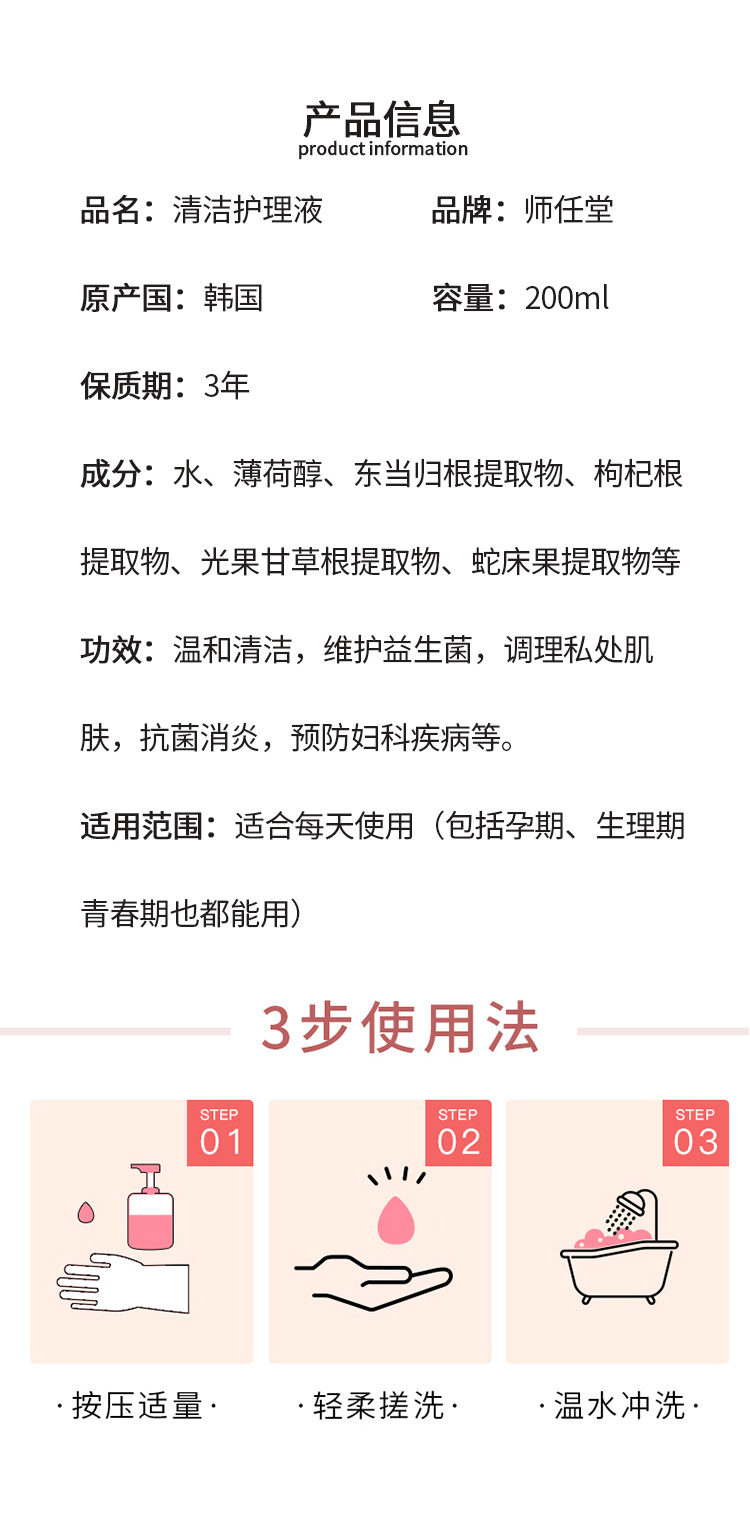 【3天左右发/本仓发】韩国女性都在用的私处护理液,师任堂小粉裙!古代妇科名药“八物汤”,妆字号每天都能用!弱酸性啫喱,清凉感很舒服,有效祛除异味/预防妇科病/改善阴道炎,孕妇/青春期/生理期都能用!