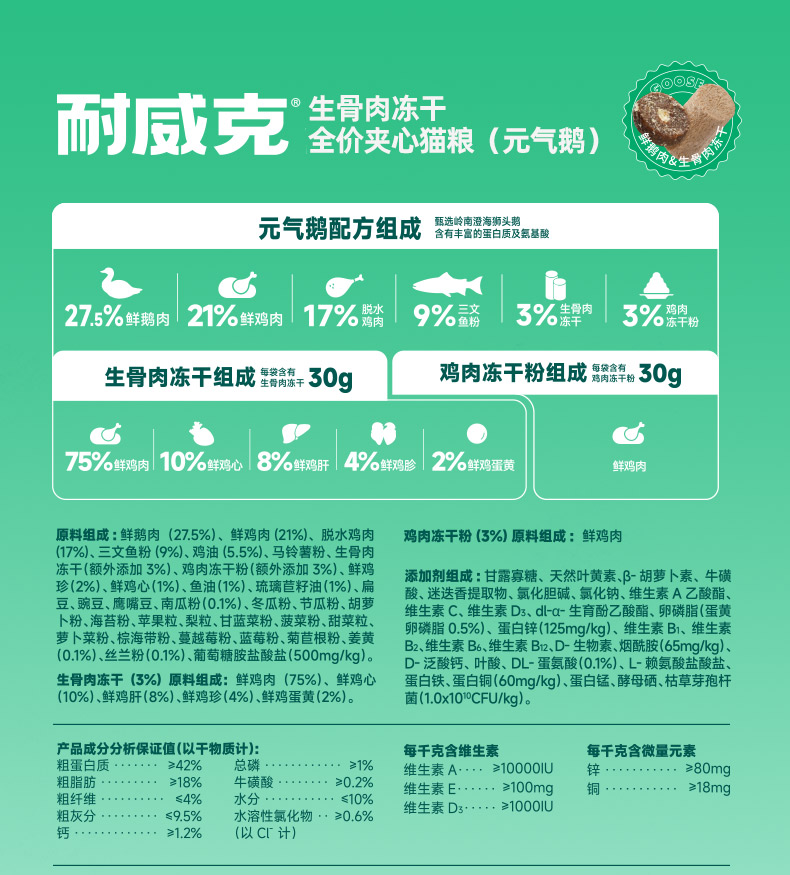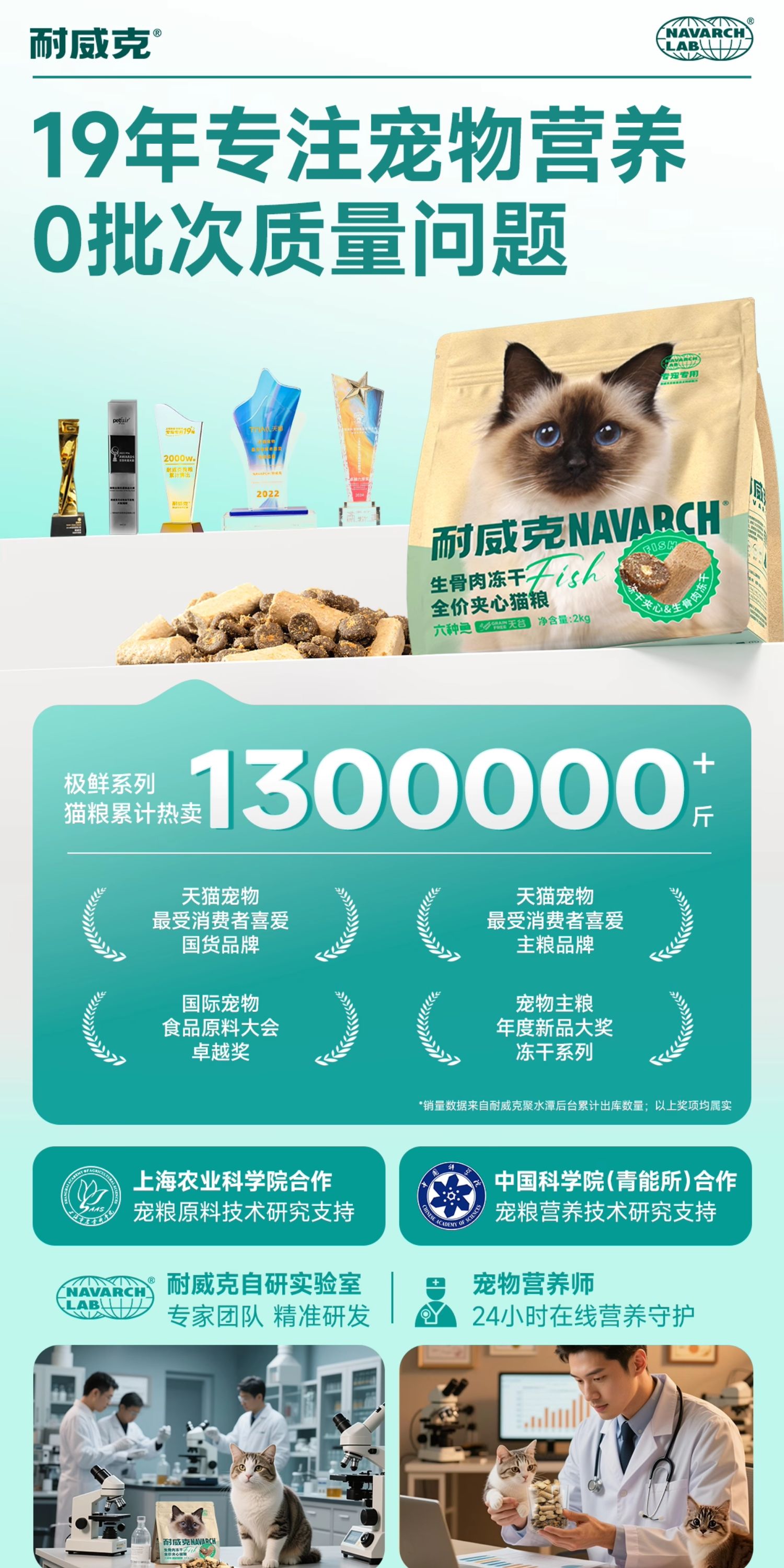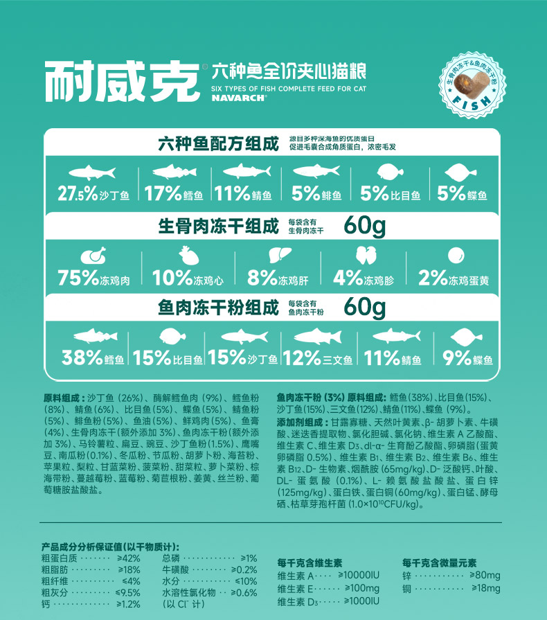 耐威克极鲜六种鱼冻干猫粮|少掉毛|美毛粮