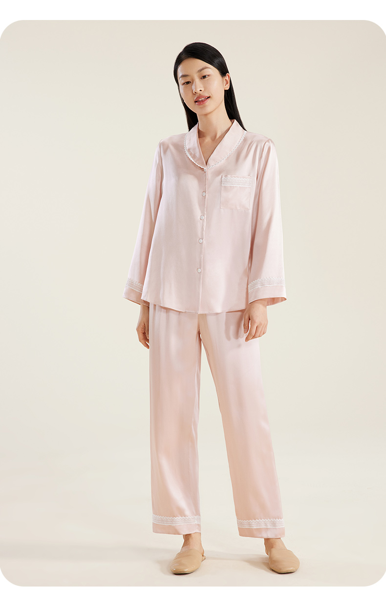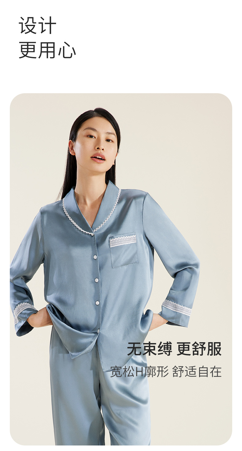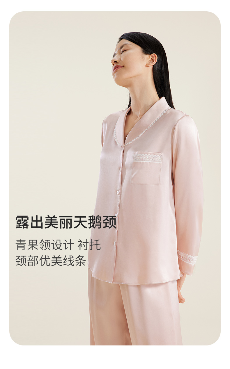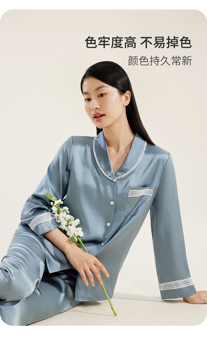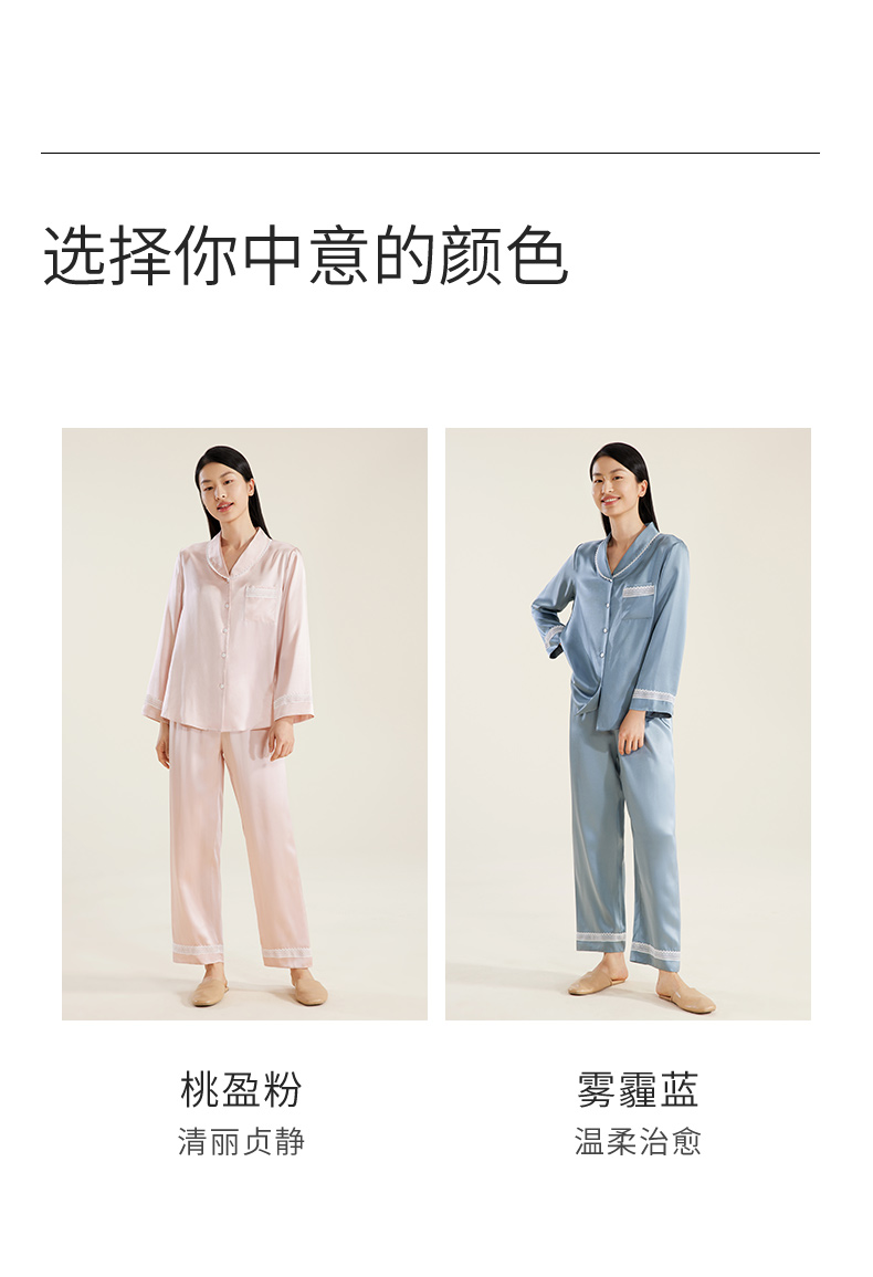 礼物】金三塔重磅真丝睡衣女100%桑蚕丝春夏丝绸高级感家居服长袖衣裤套 YSFDB206