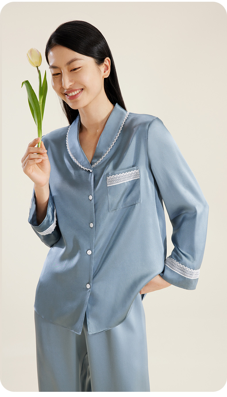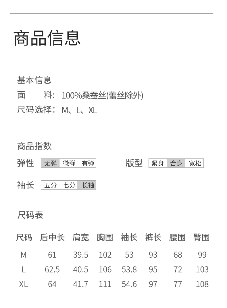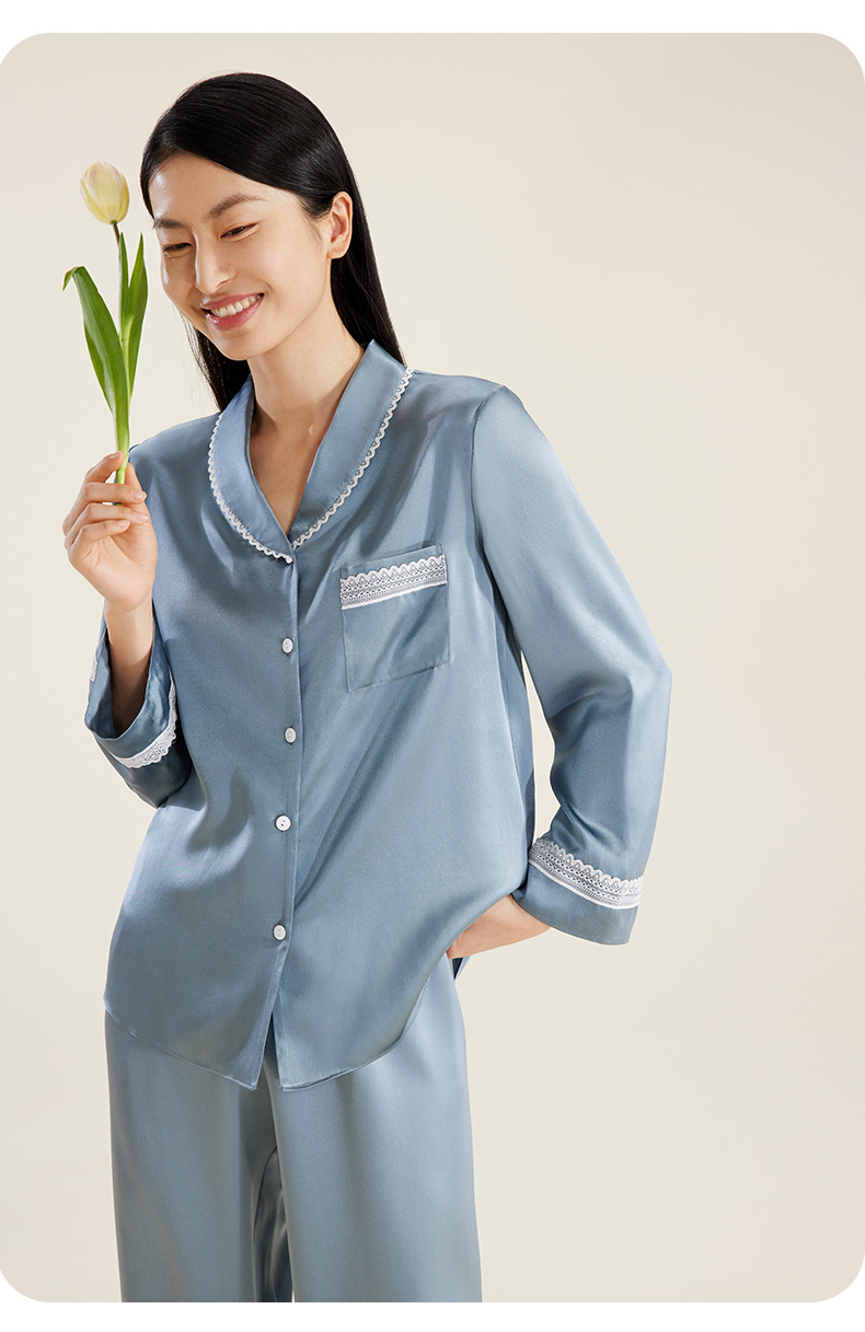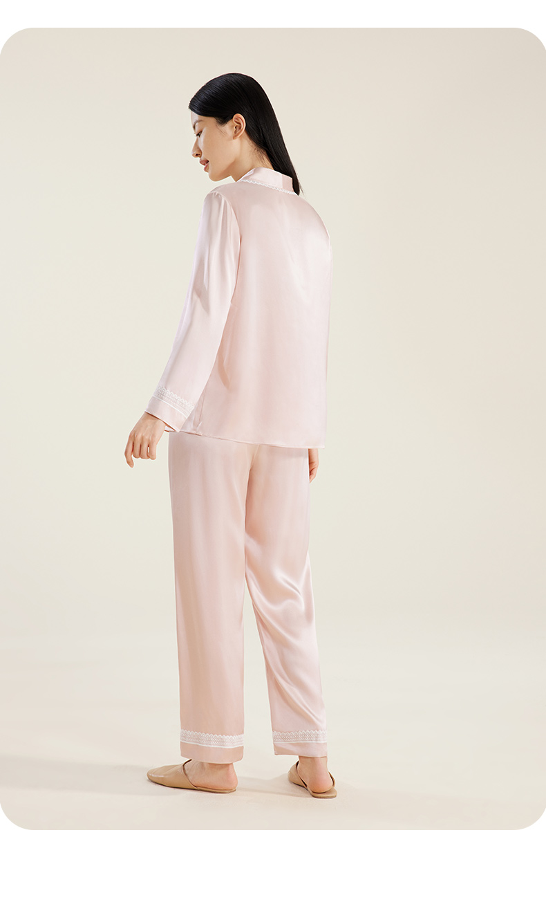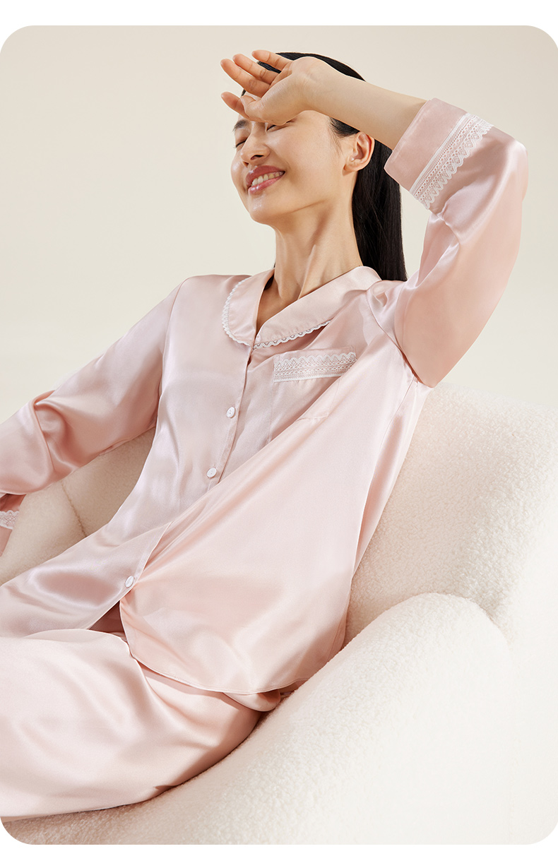 礼物】金三塔重磅真丝睡衣女100%桑蚕丝春夏丝绸高级感家居服长袖衣裤套 YSFDB206