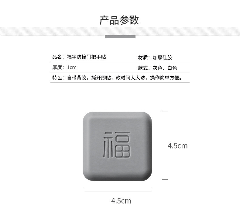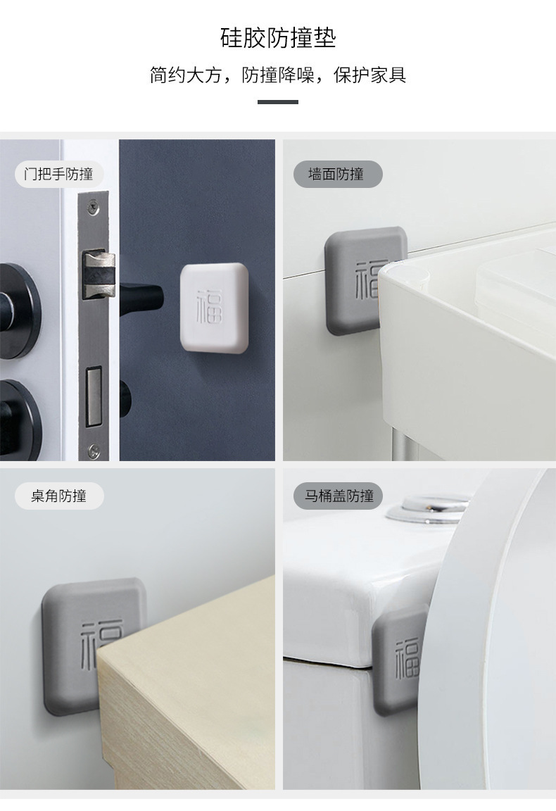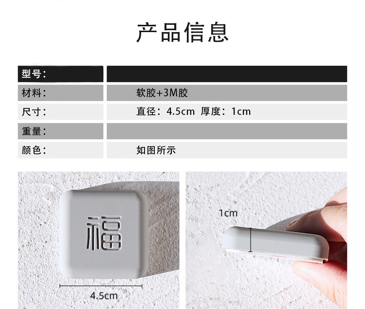 福字硅胶防撞贴 加厚开门撞福门把手冰箱门墙面防碰撞缓冲垫门挡器1个