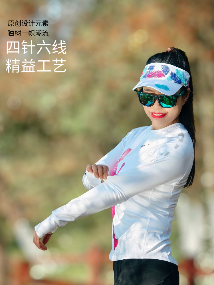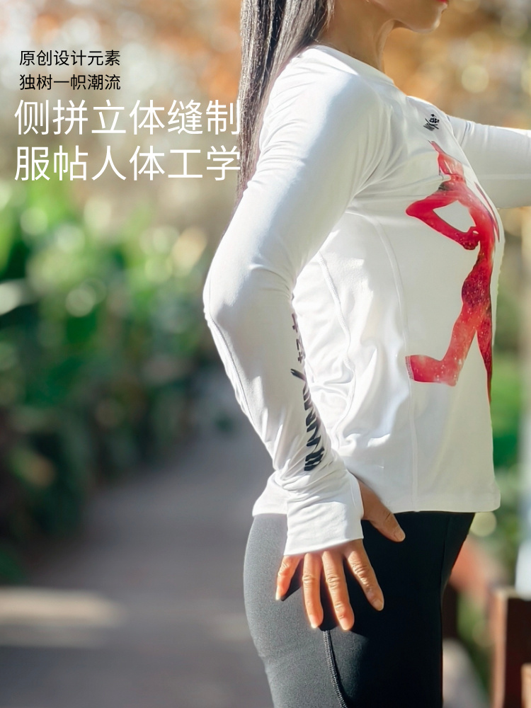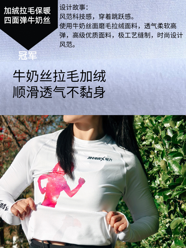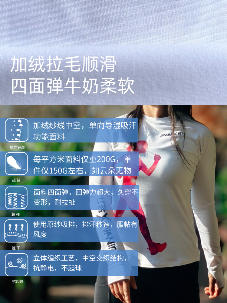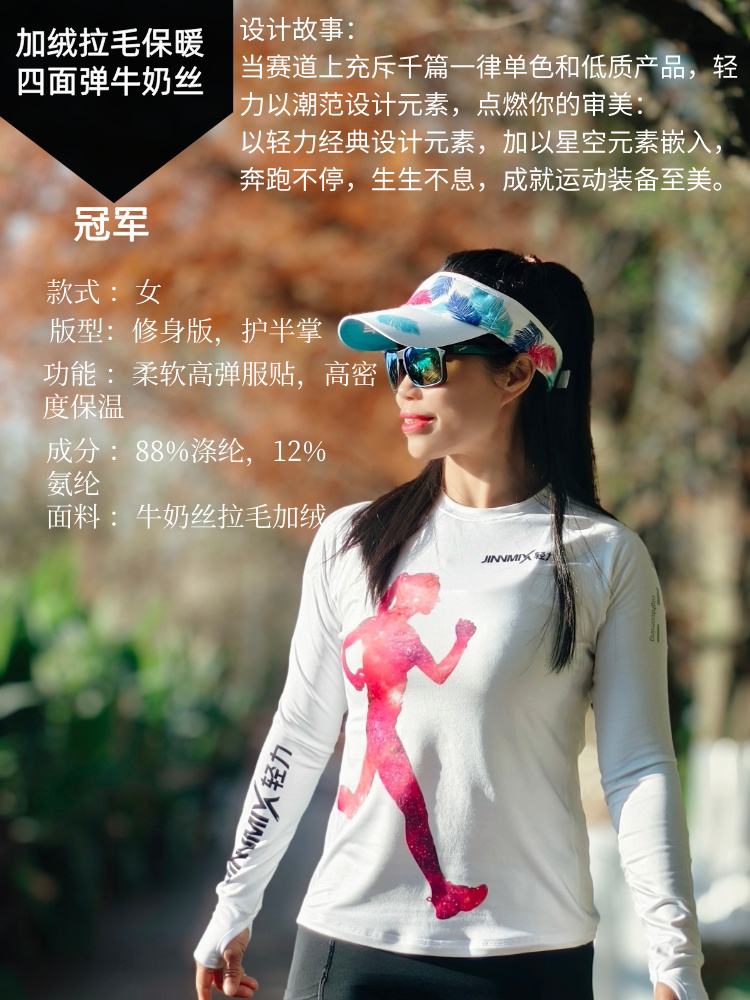 冠军加绒透气高弹加长护腕修身跑步运动长袖女