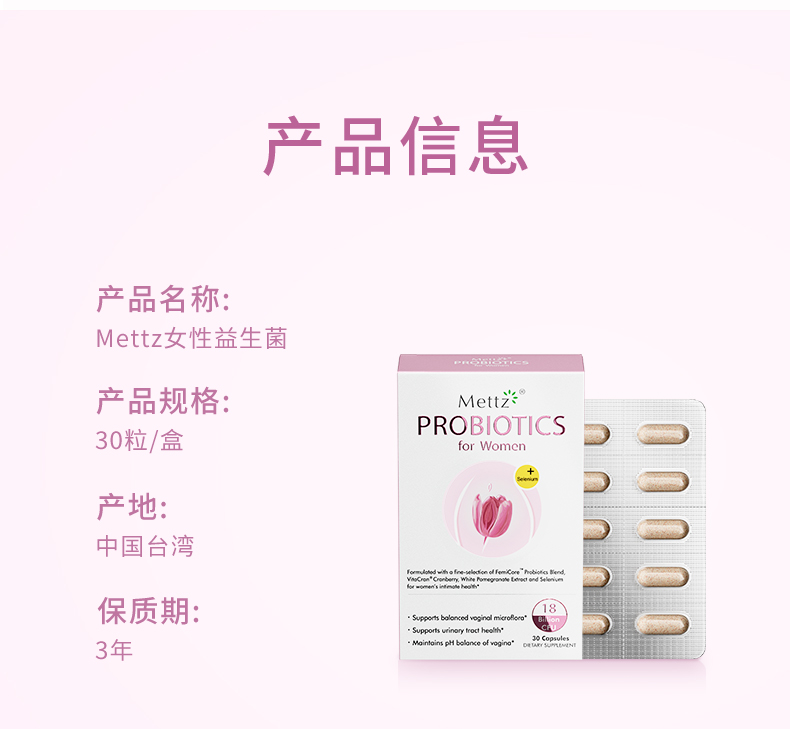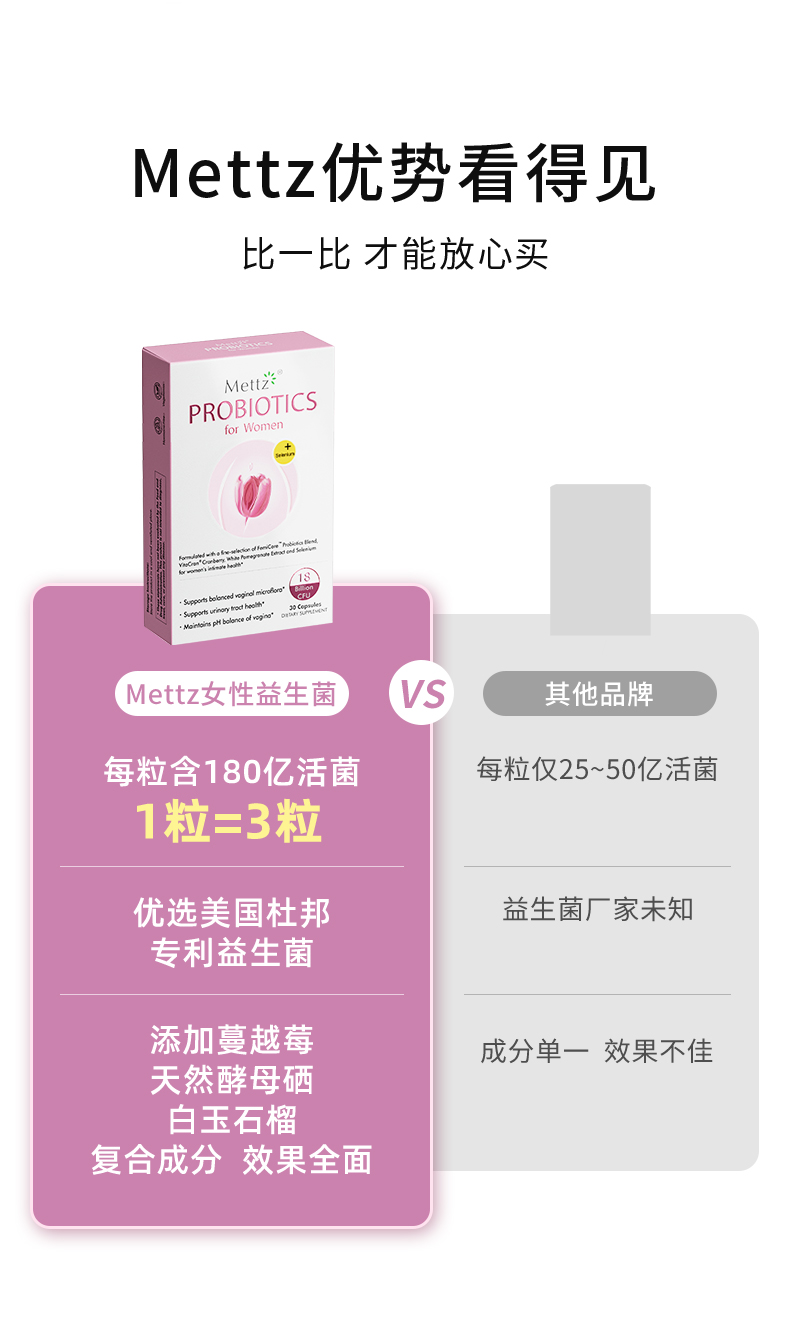 Mettz女性益生菌护理蔓越莓粉进口乳酸杆菌口服胶囊守护菌群平衡