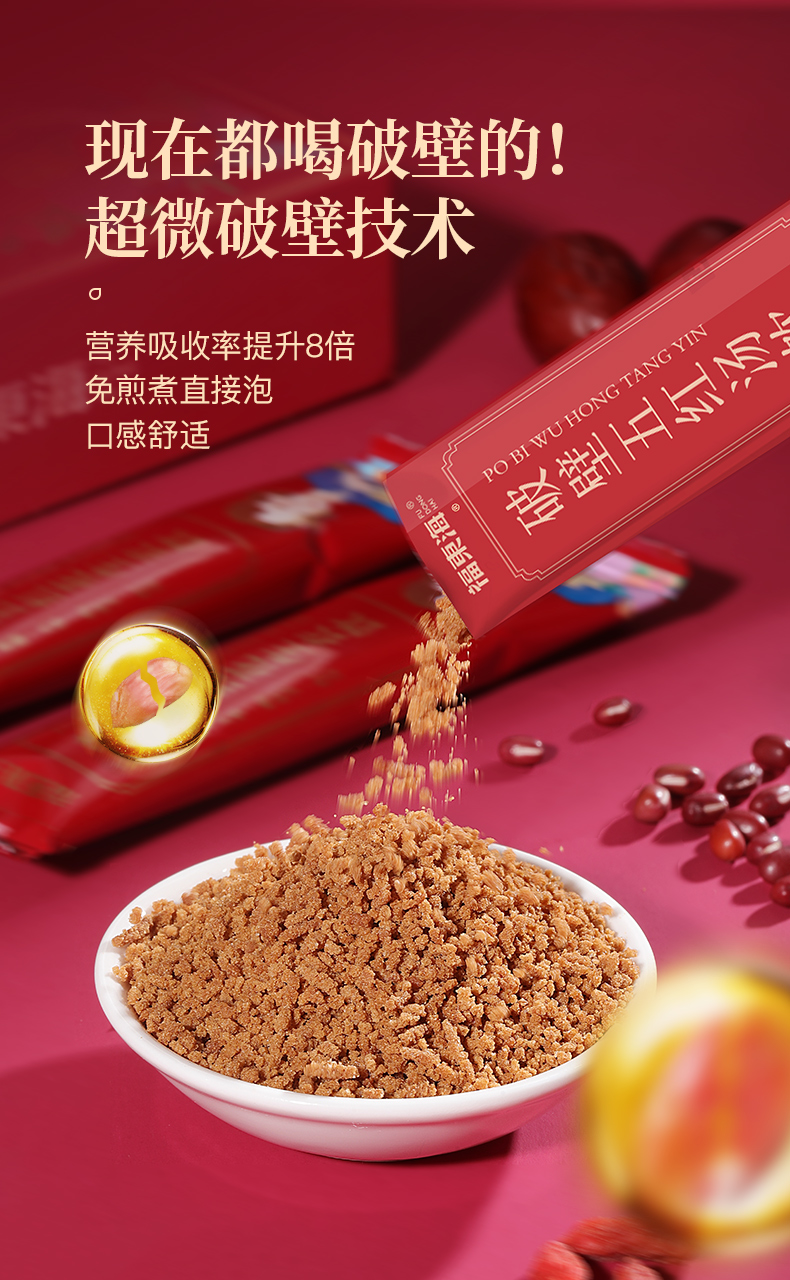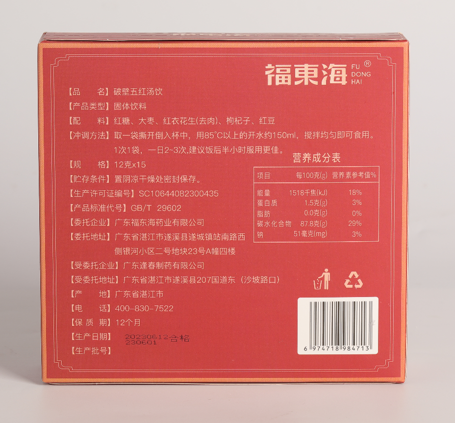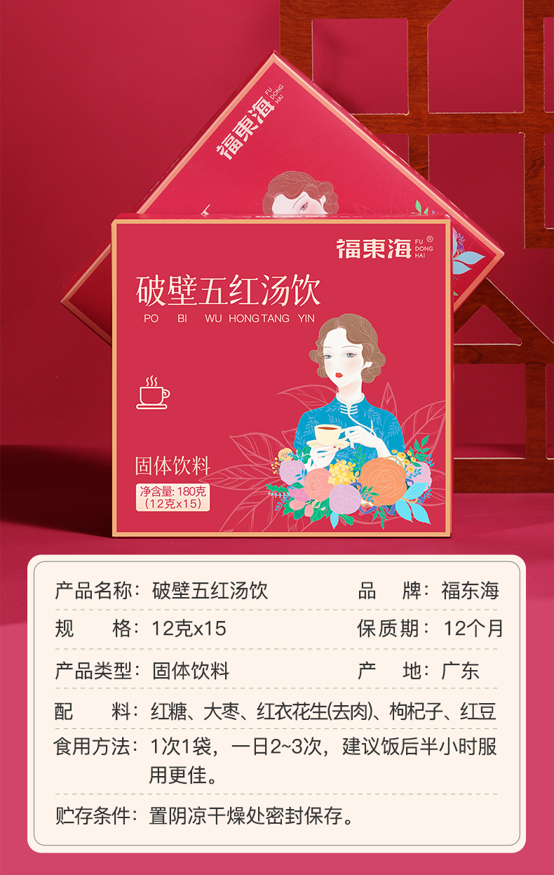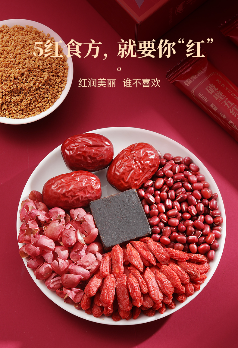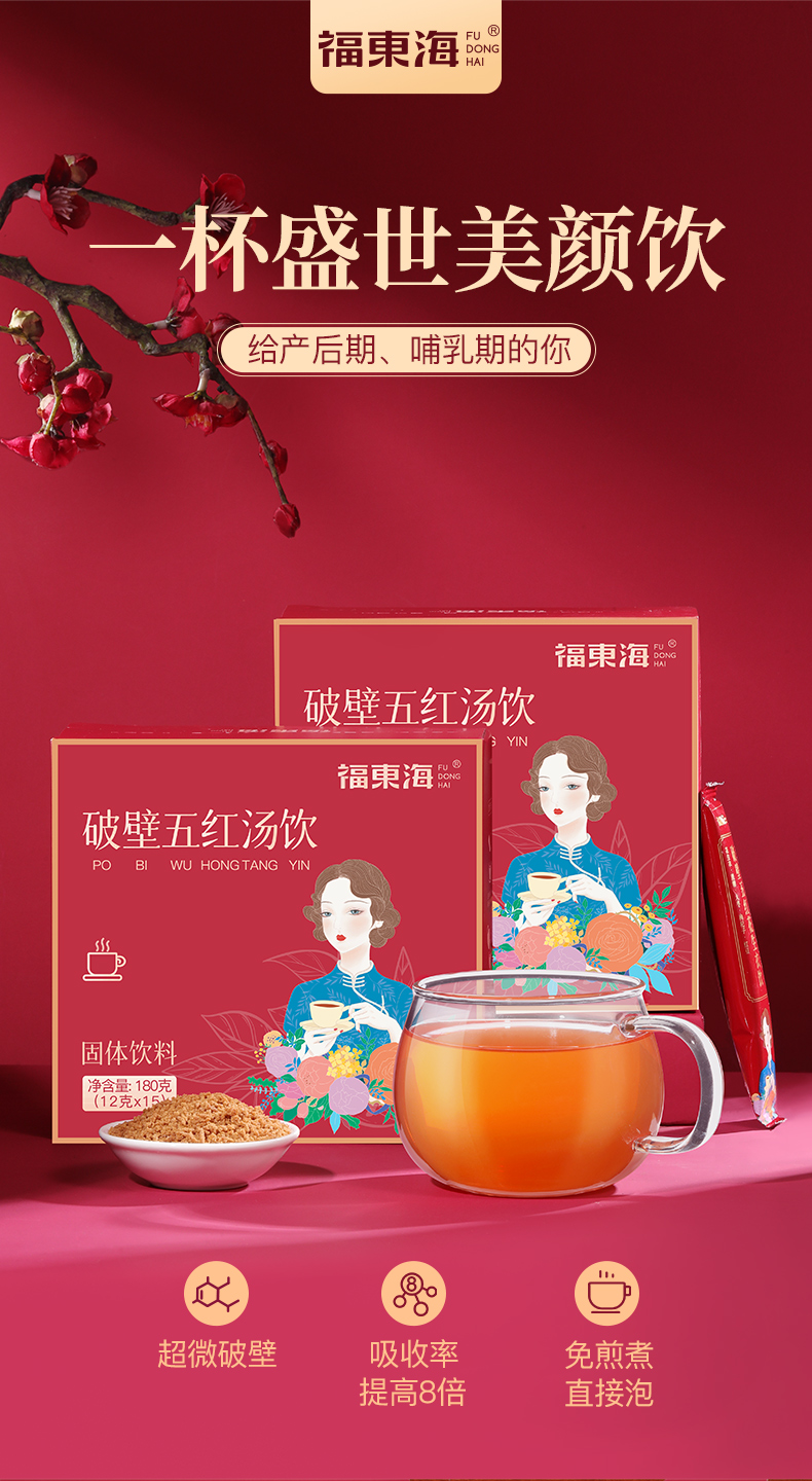 福东海 破壁五红汤料饮180克/盒 红皮花生红豆红糖枸杞材 即冲养生茶饮