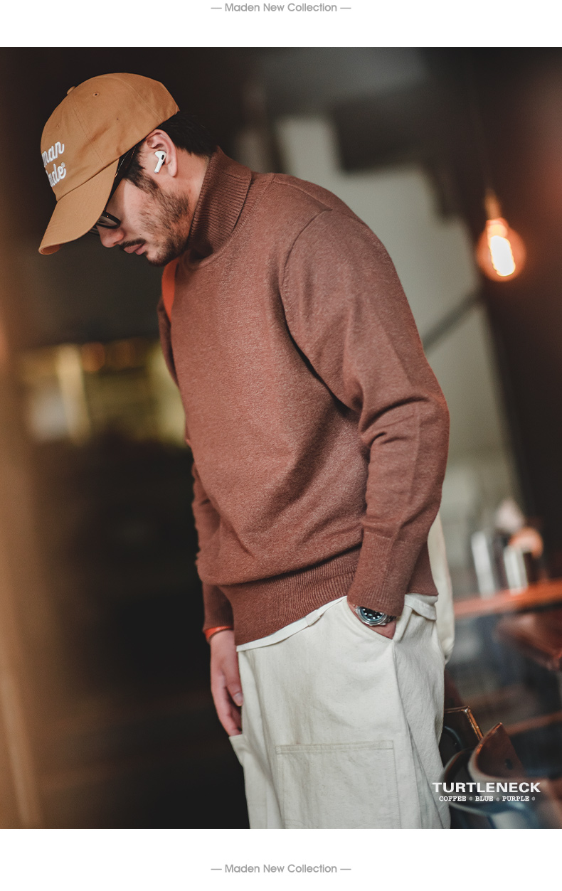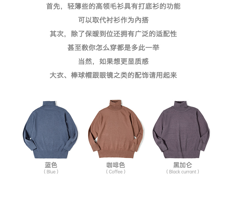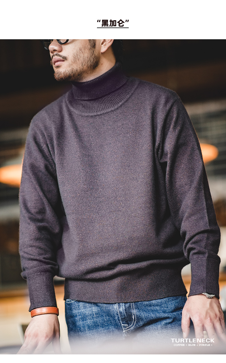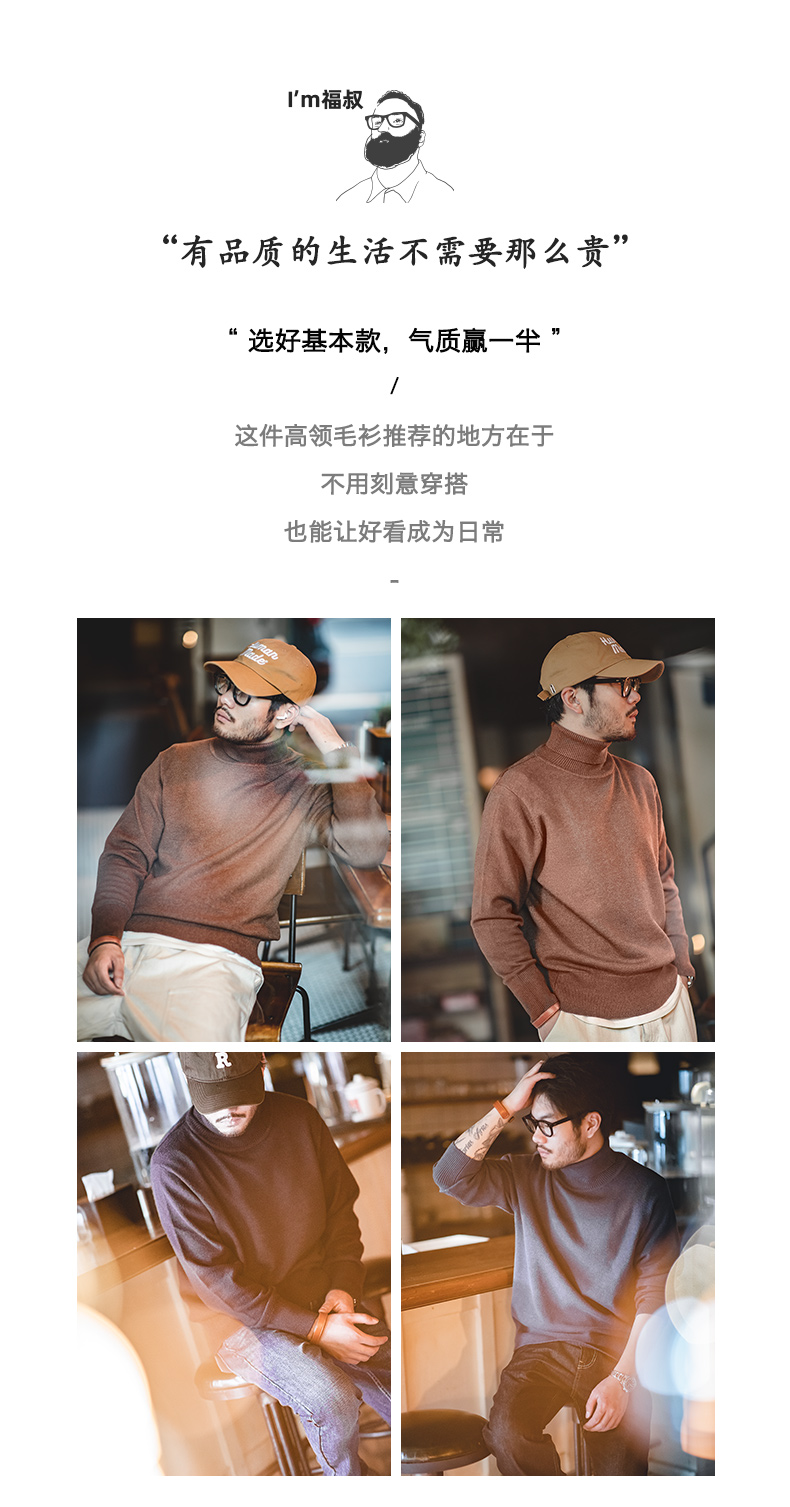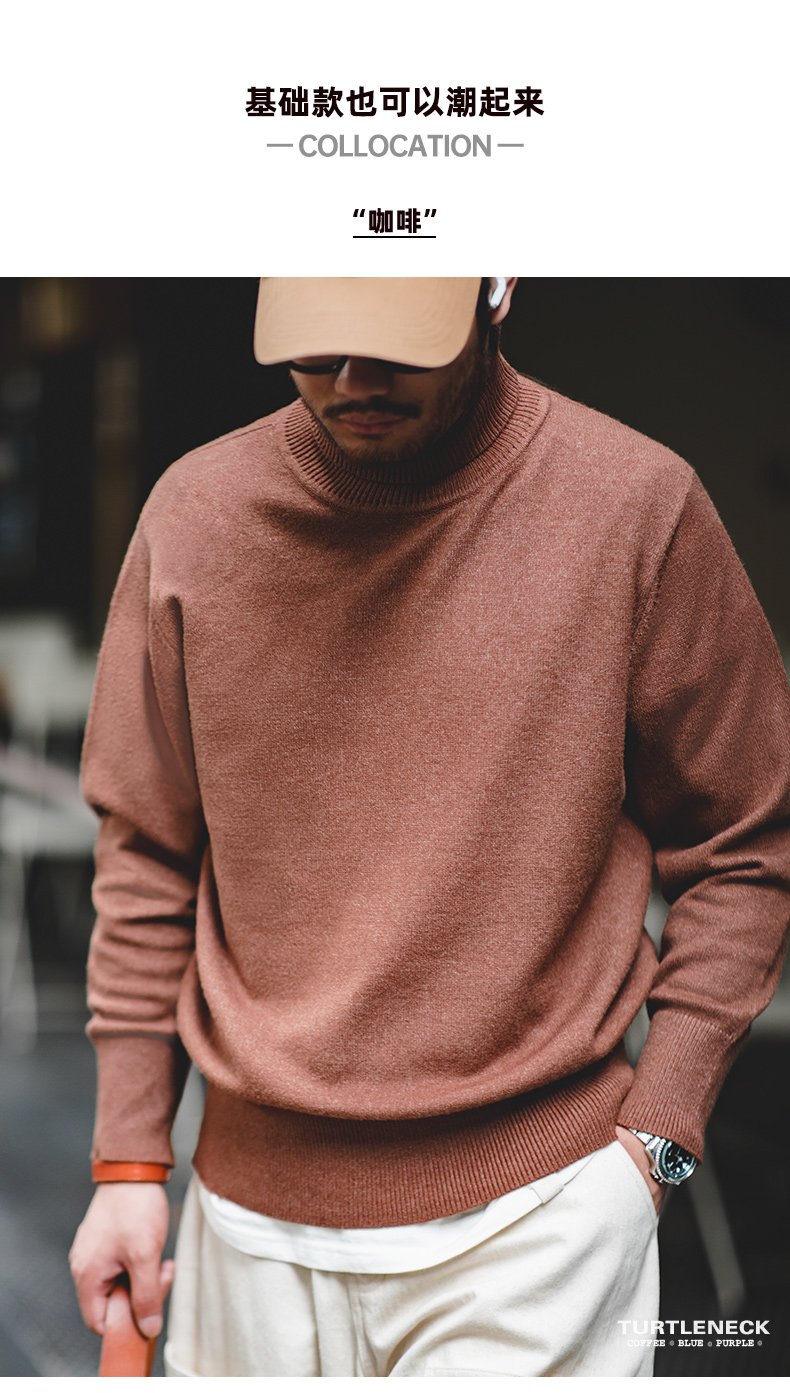 工装优选 美式休闲基础款半高领毛衣套头保暖针织打底衫男士秋冬
