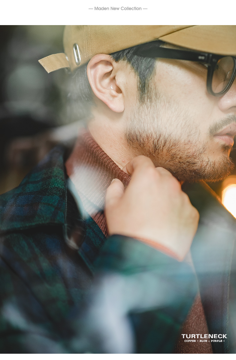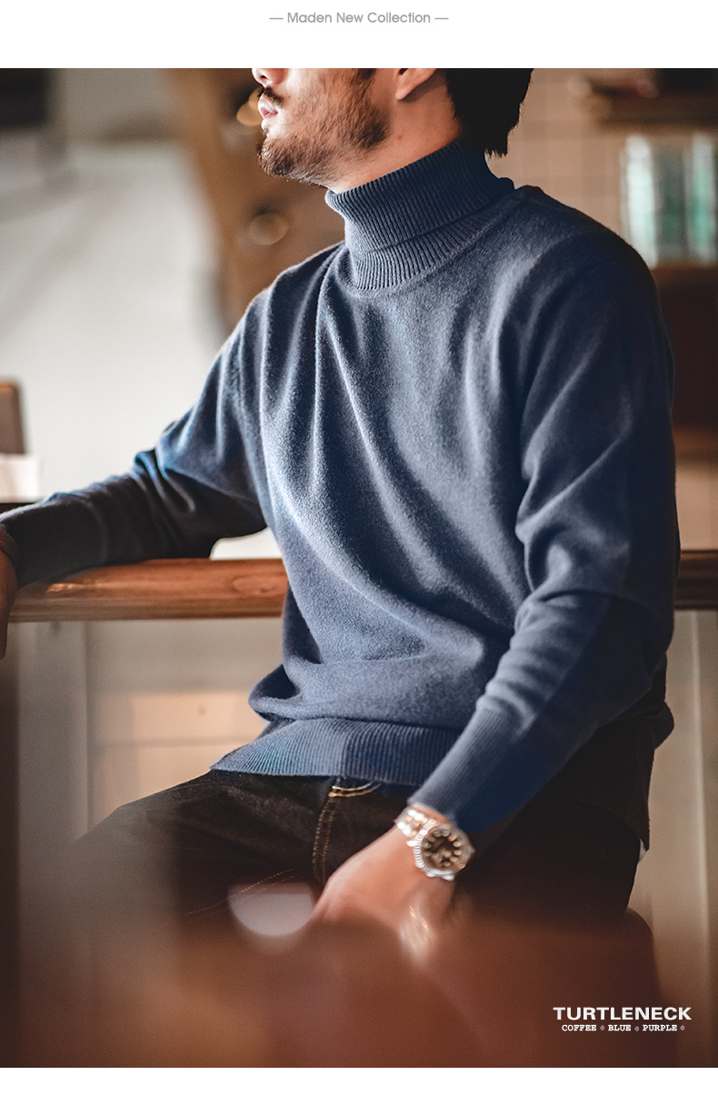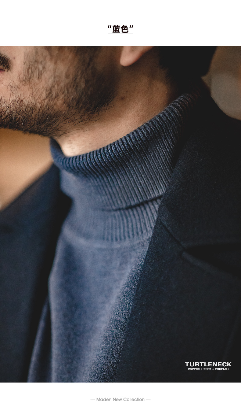 马登工装美式休闲纯色高领毛衣保暖翻领基础款打底针织衫男士秋冬