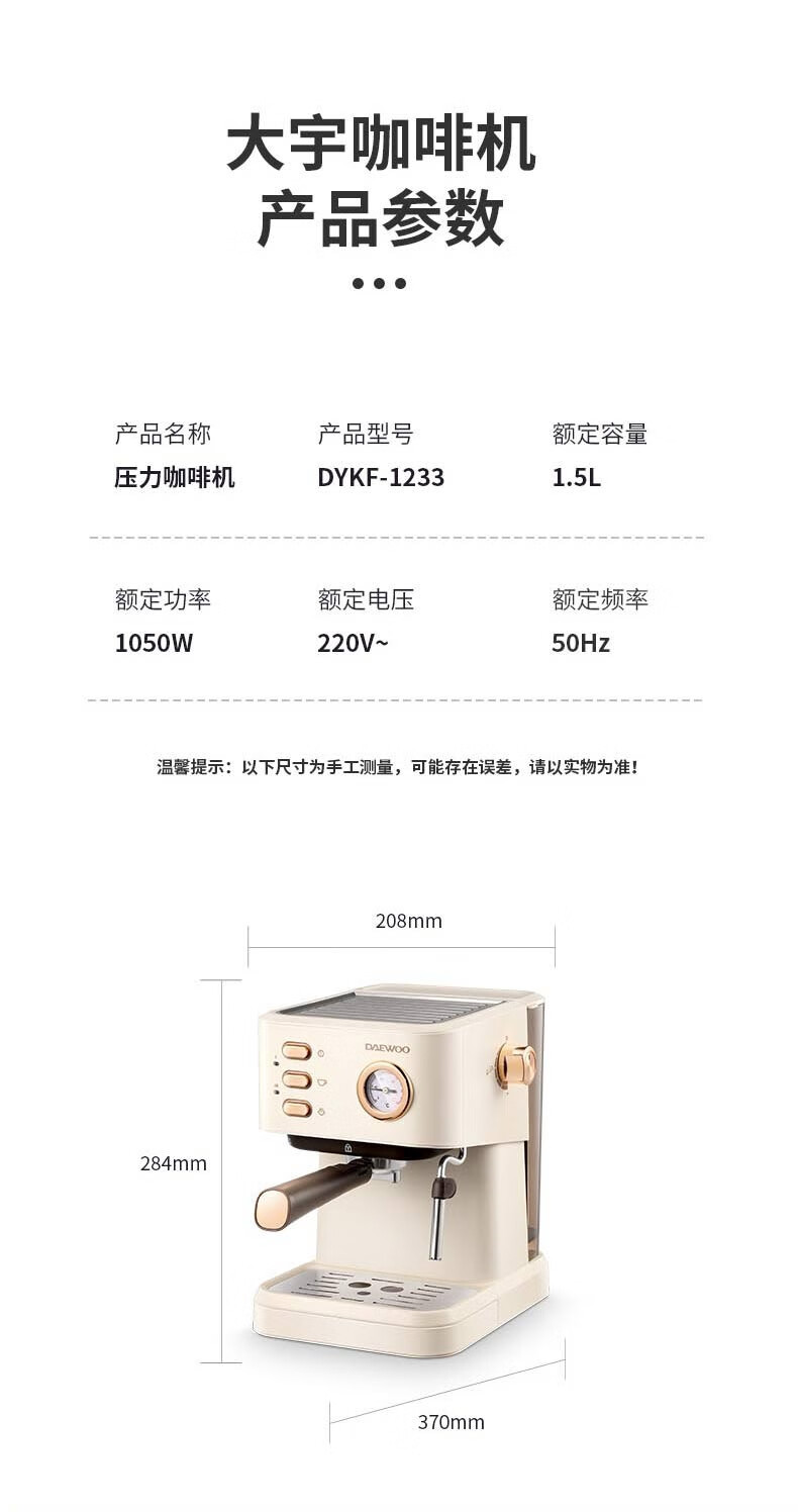 大宇 咖啡机DYKF-1233 (彩邮外)【ZXZQ6.4】