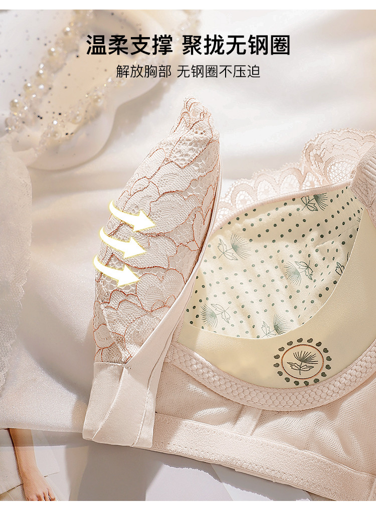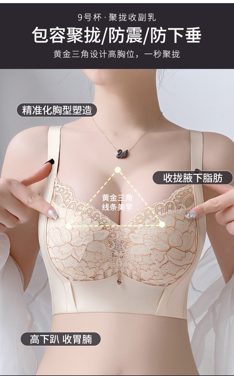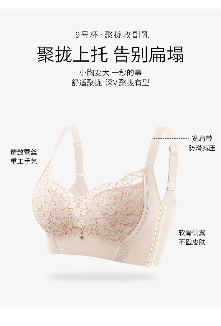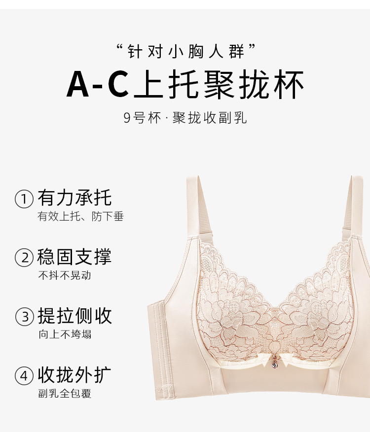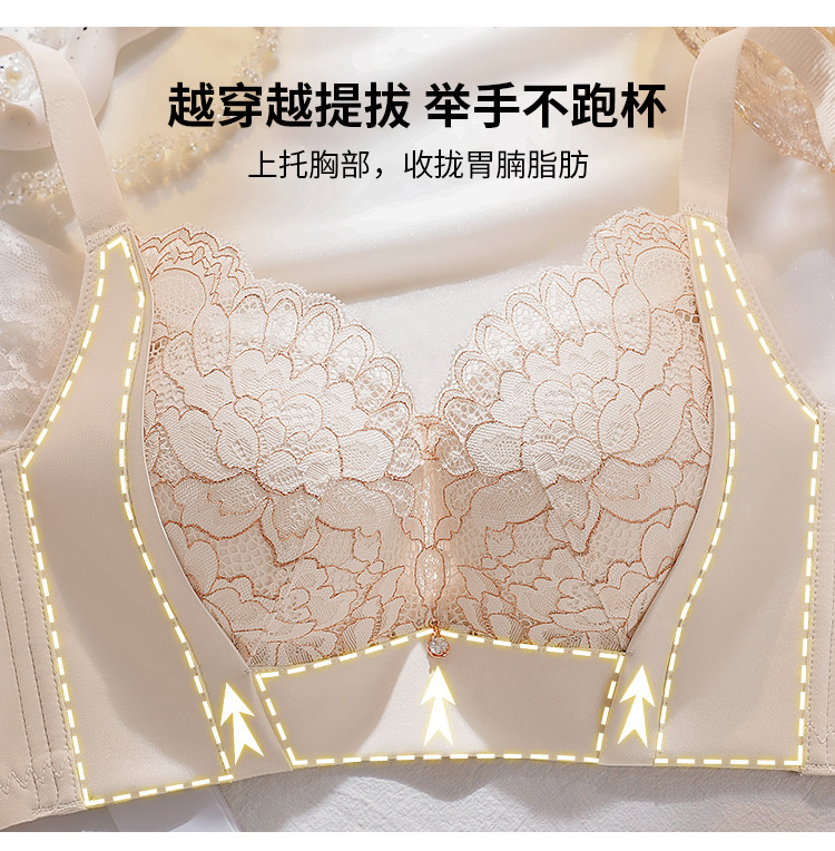 A4-【A-C杯】【院线调整塑型】强聚拢收副乳小胸聚拢防下垂调整型红内衣女文胸 梨花娇雪/烈焰繁花