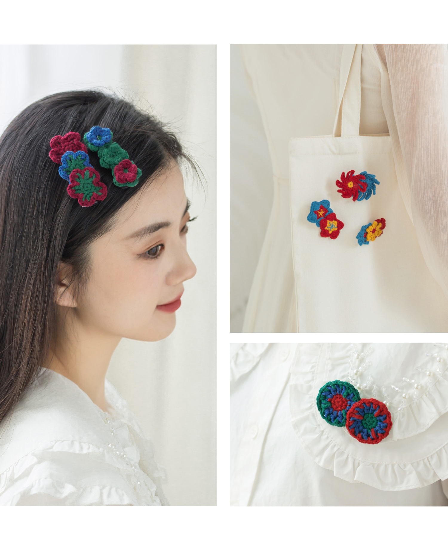 苏苏姐家多彩绚丽发夹胸针手工diy钩针毛线团自制材料包打发时间