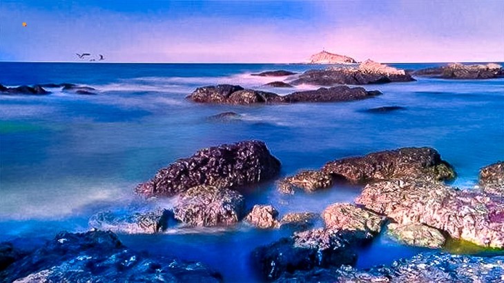 - 下午|集合前往半月湾及九丈崖参观,半月湾可欣赏月牙湾美景,拾到五颜六色晶莹剔透的球石,看动感的海豚表演,非常有趣。参观结束后到九丈崖看日落,站在高岗上放眼远方竖立在海岸线上一闪一闪的灯塔,别有一番特色。参观结束后返回宾馆。