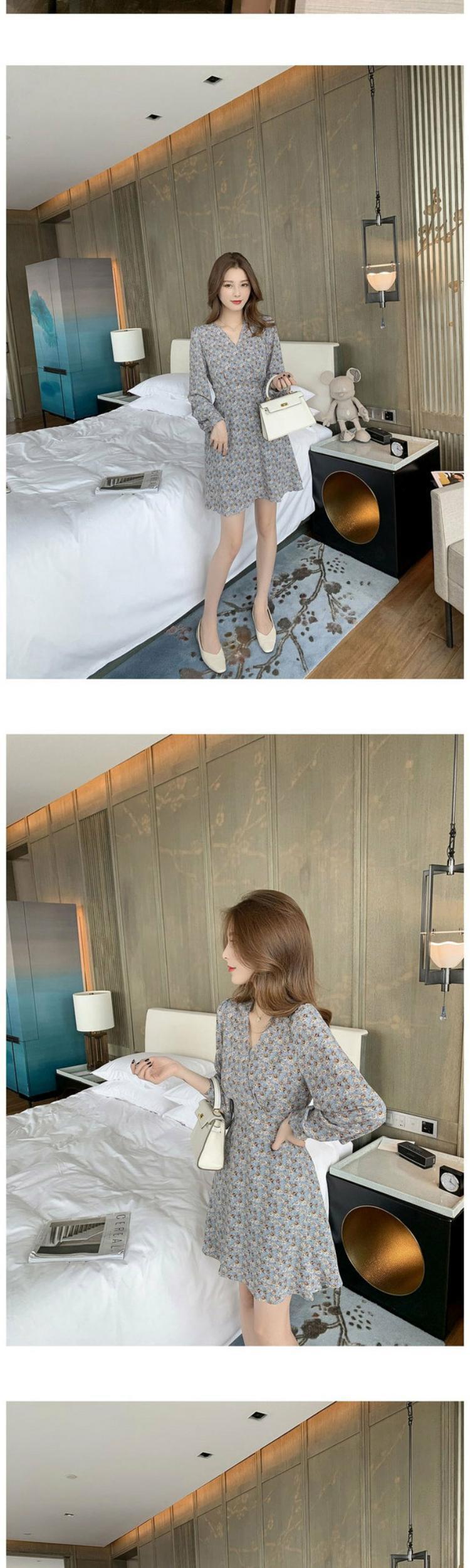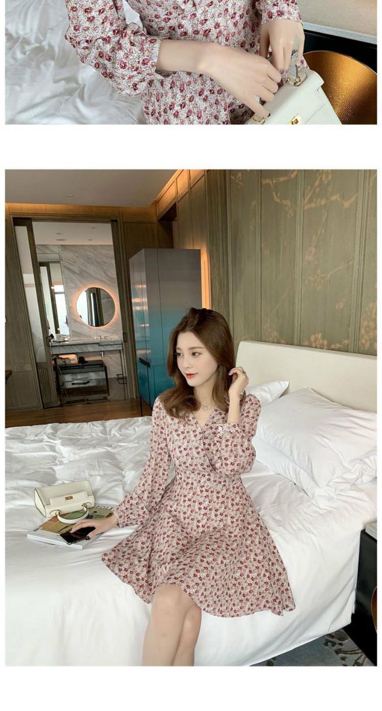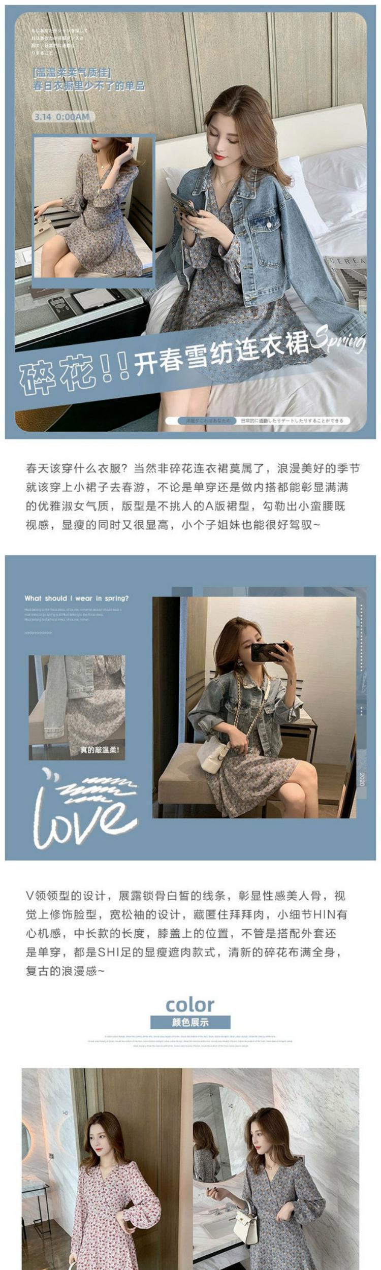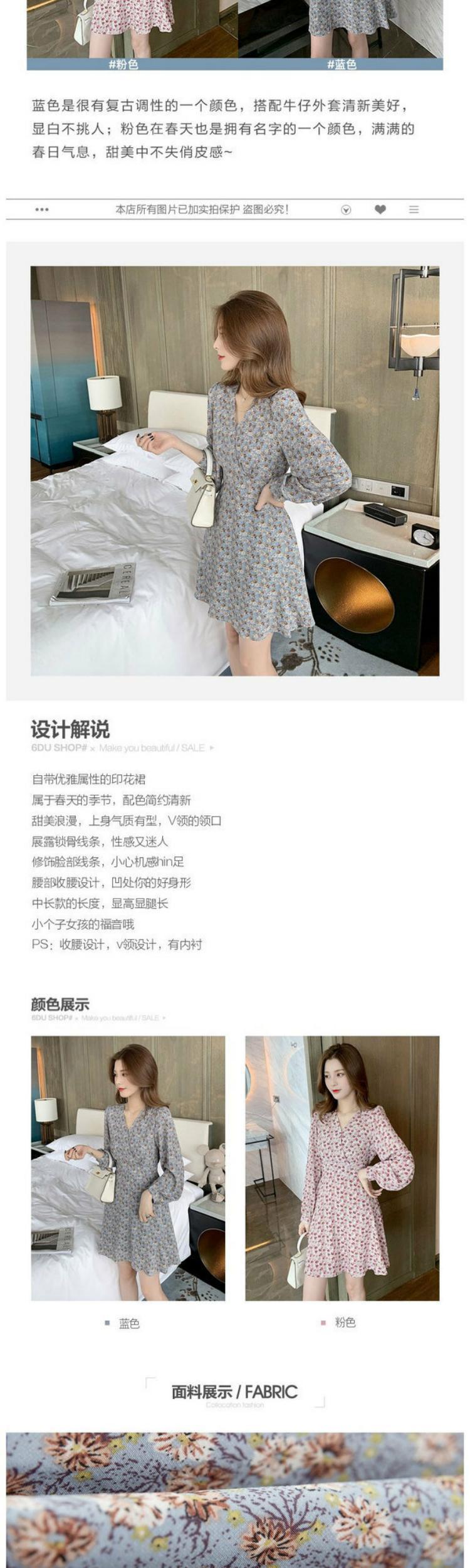 【服饰鞋包】春秋冬季高腰雪纺新款气质女神范小个子长袖碎花连衣短裙森系显瘦
