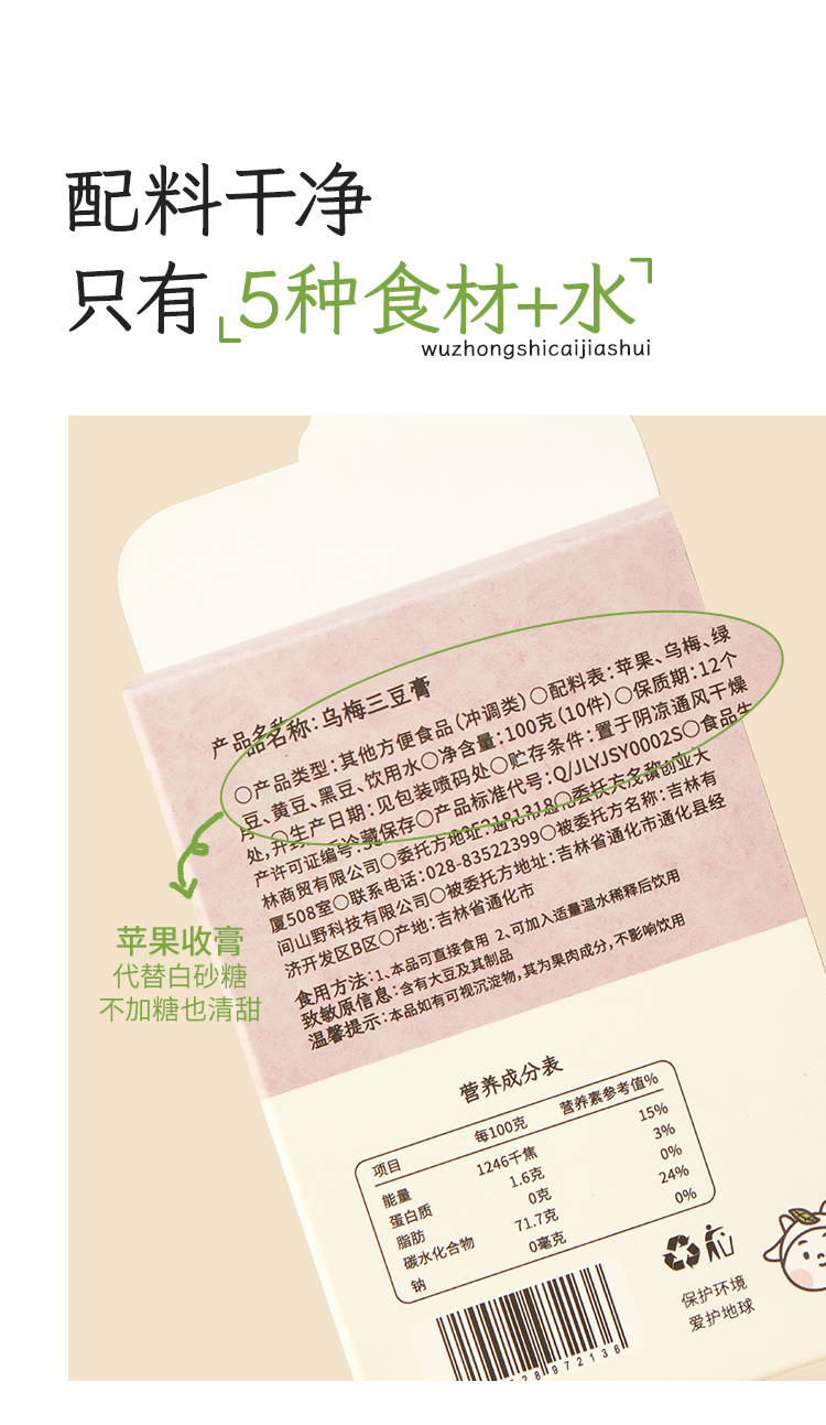 「乌梅三豆膏」清热补津液 古方复配 浇灭火苗 天然食材 酸甜可口 小包装随身带 随时“灭火”