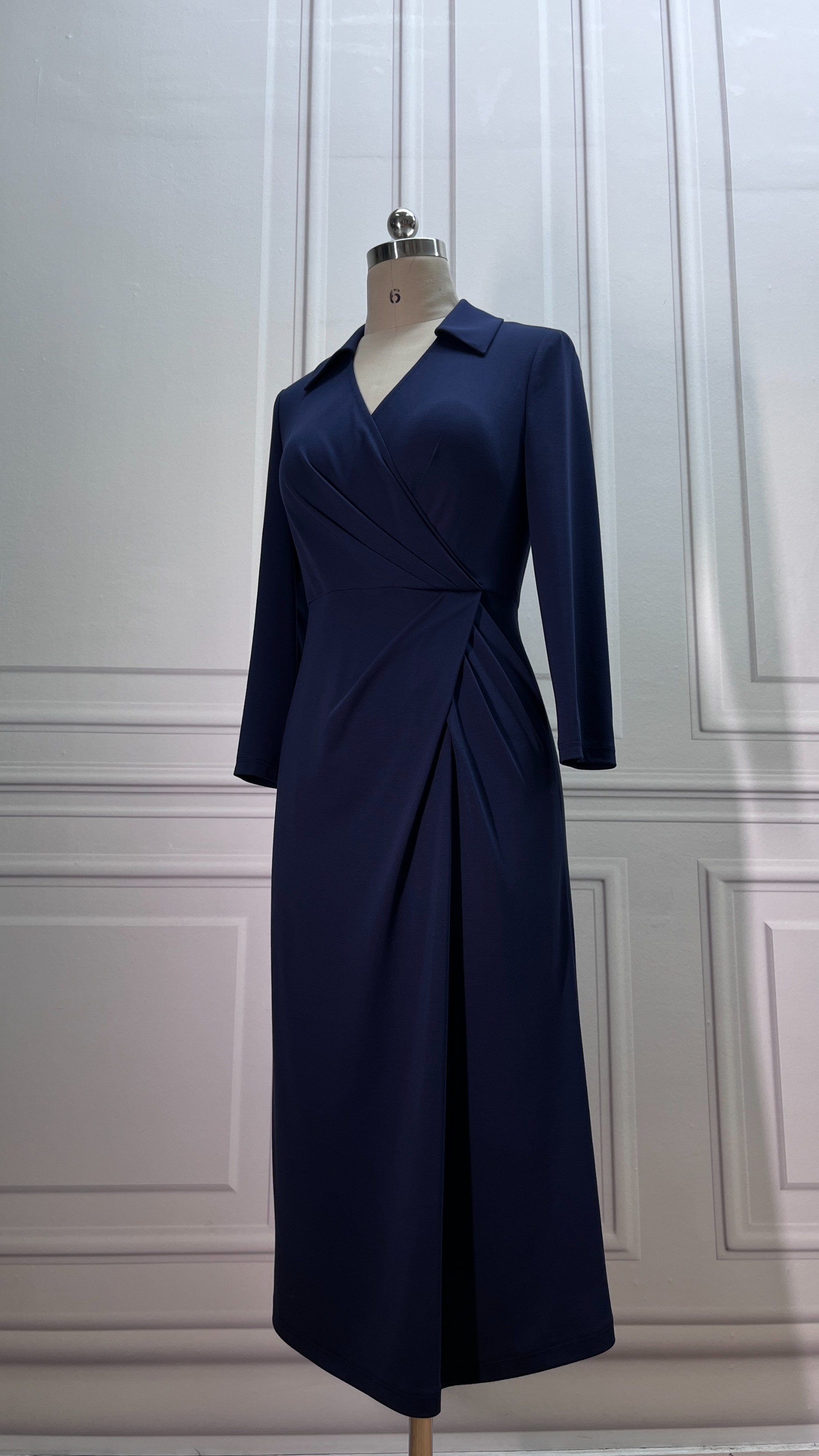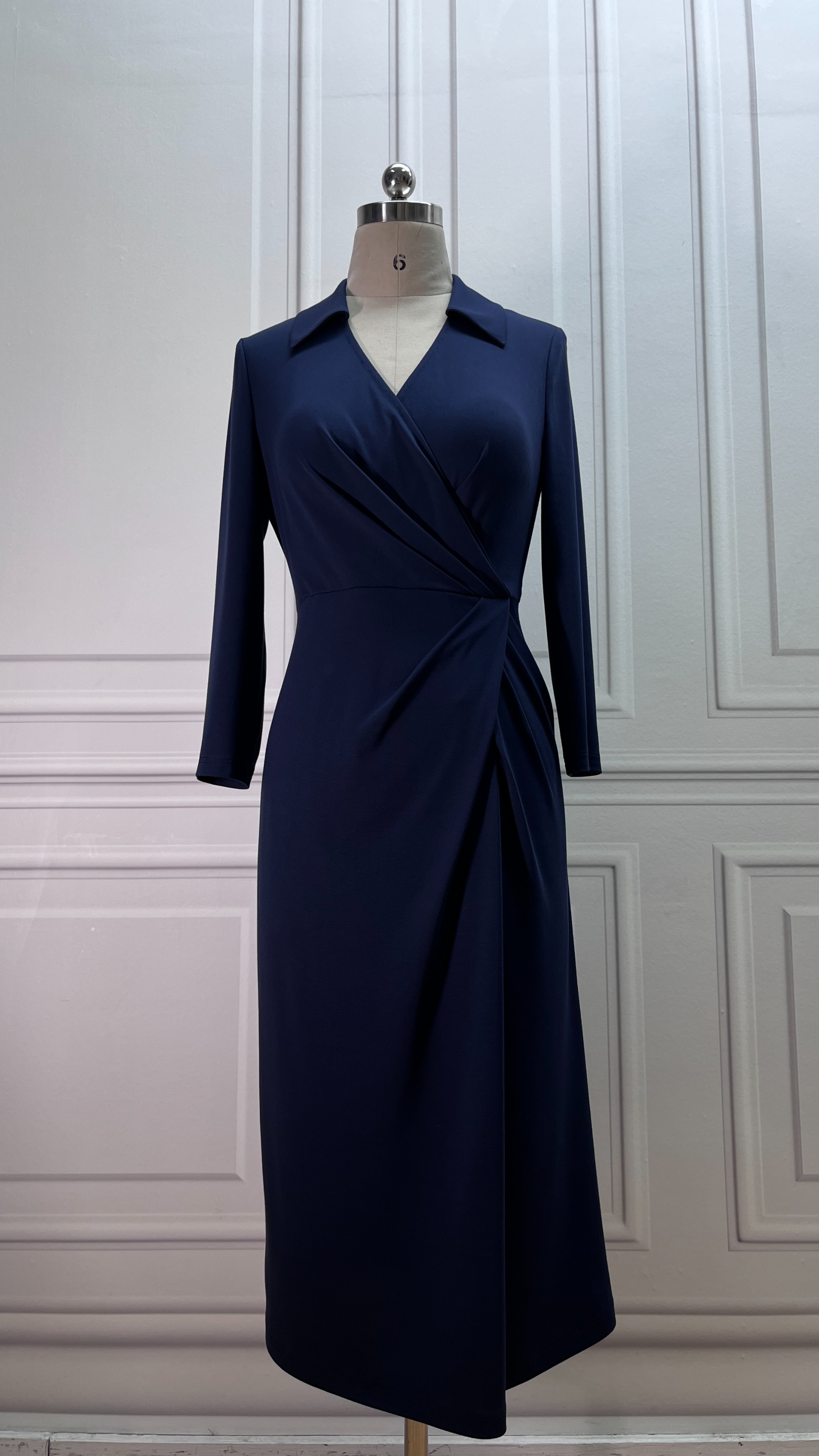定制—自然意境—优雅绽放 褶饰针织纯色修身收腰连衣裙 2301001
