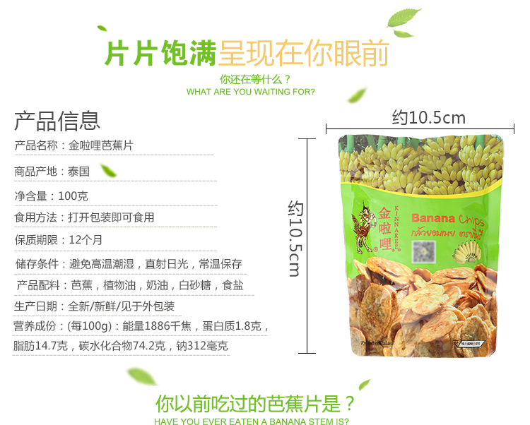 泰国进口金啦哩芭蕉干烤香蕉片椰子片水果干休闲零食小吃100g