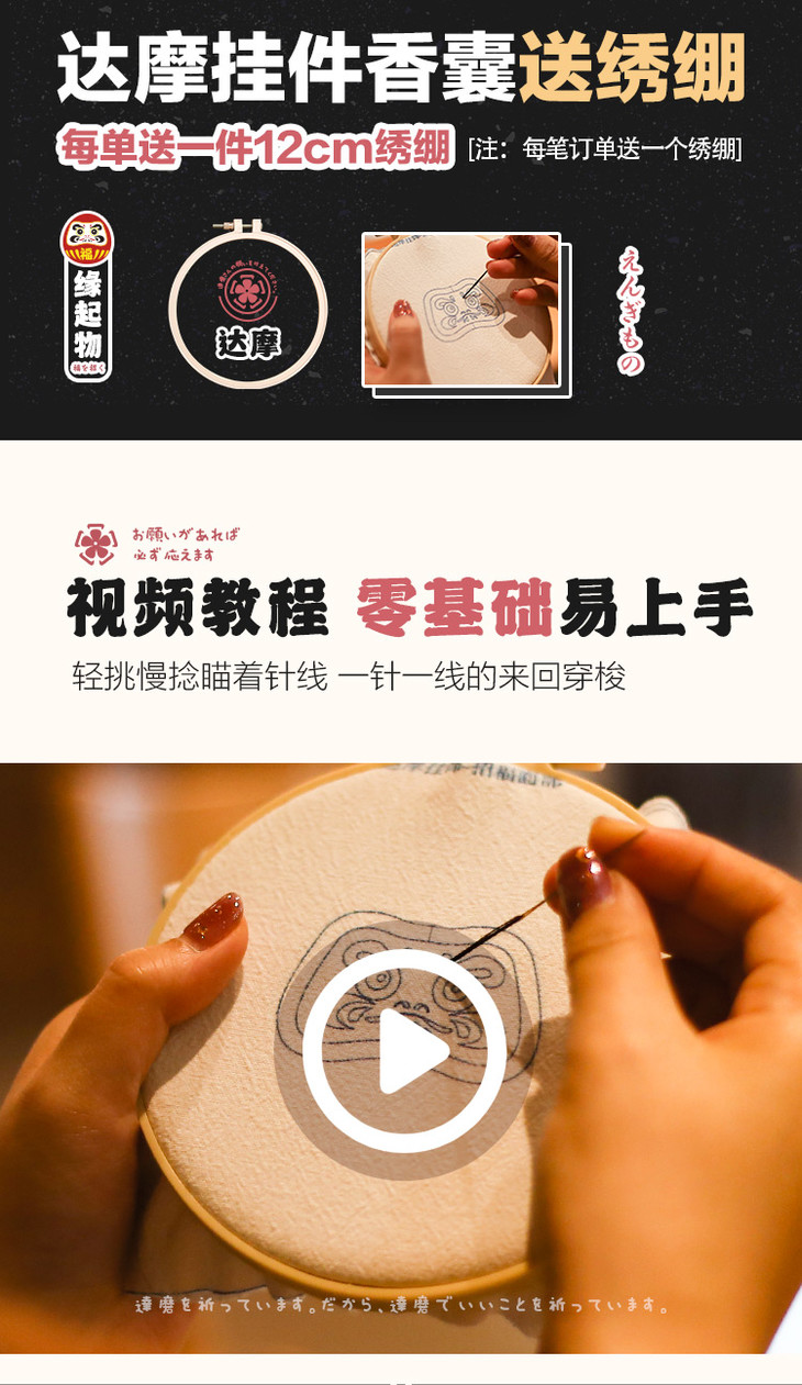 手工刺绣diy材料包达摩平安符
