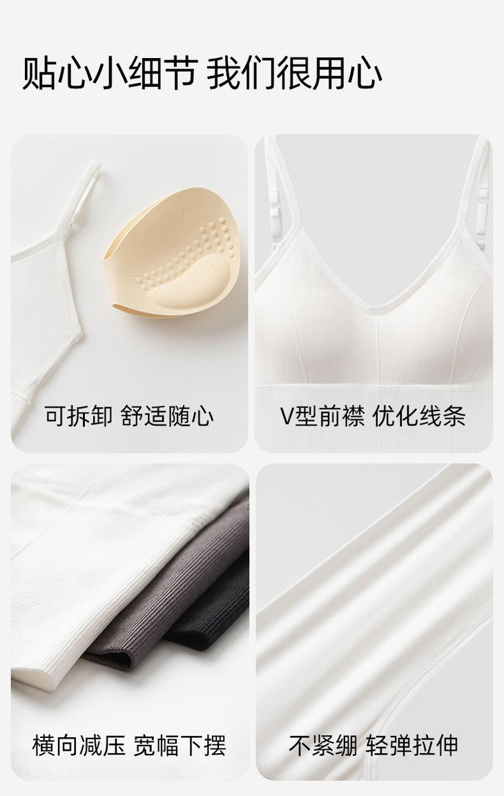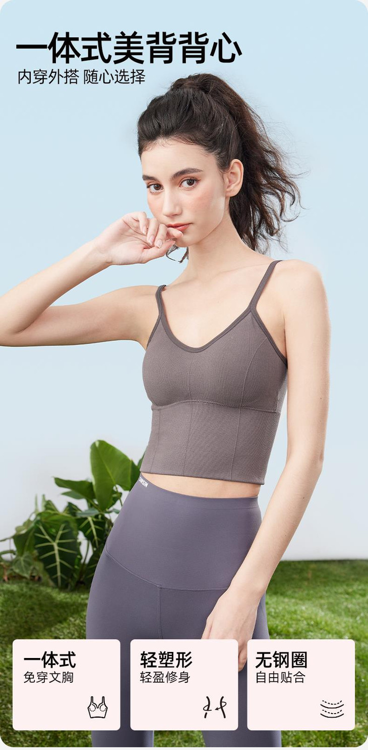 不用穿bra的神仙吊带美背,又多了一款!SINSIN背心文胸二合一,设计很简约,内搭外穿都适合!黄金面料比,82%锦纶12%氨纶,上身轻盈会呼吸;无尺码设计,80-135斤都能穿;一片式仿乳胶杯垫隐形承托,无钢圈不束缚,轻盈承托;V领前襟,还有聚拢效果,优化线条;大U背设计,随心露肤;轻塑小蛮腰,微压收肉,横向减压;肩带高弹高韧,可随意调节;杯垫还可拆卸,清洗更方便!