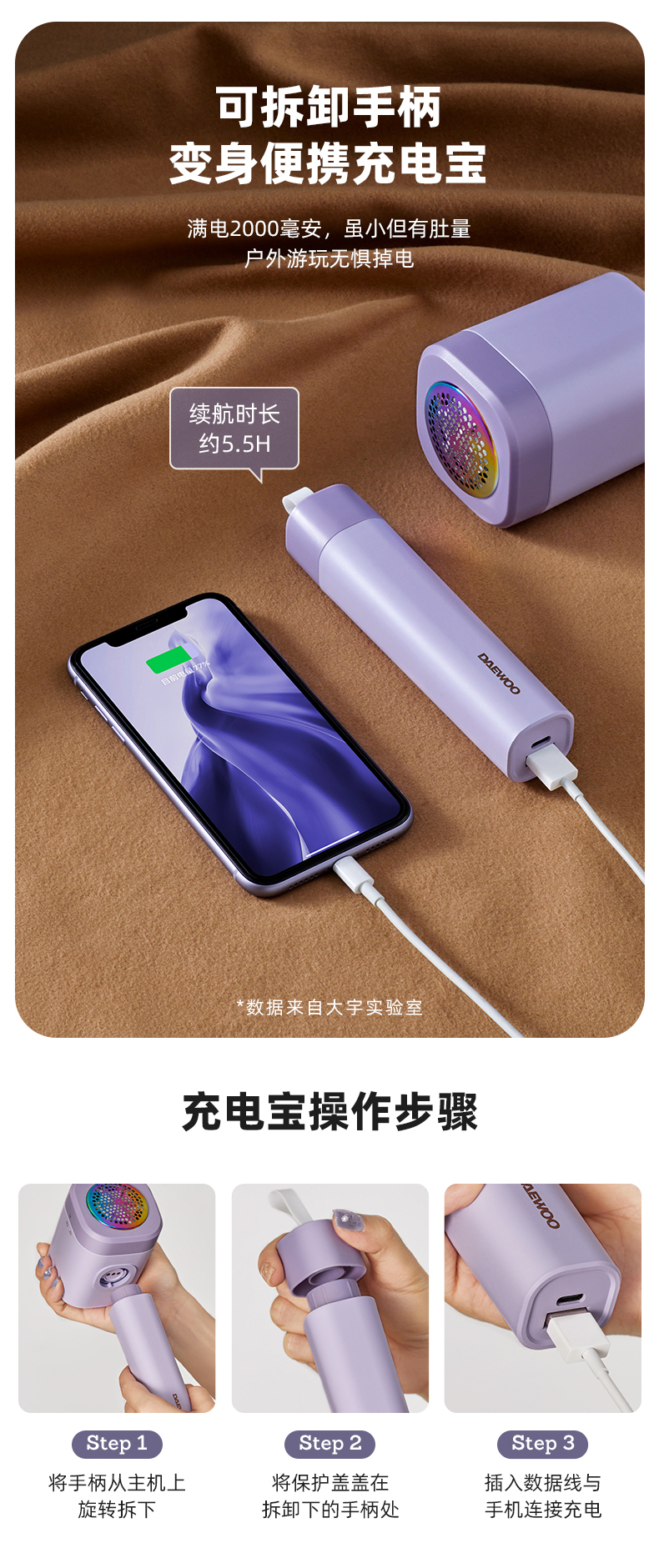 [屁侠推荐.pippa]韩国大宇/DAEWOO新款毛球修剪器充电式衣服毛球刮除神器家用迷你小型修剪器