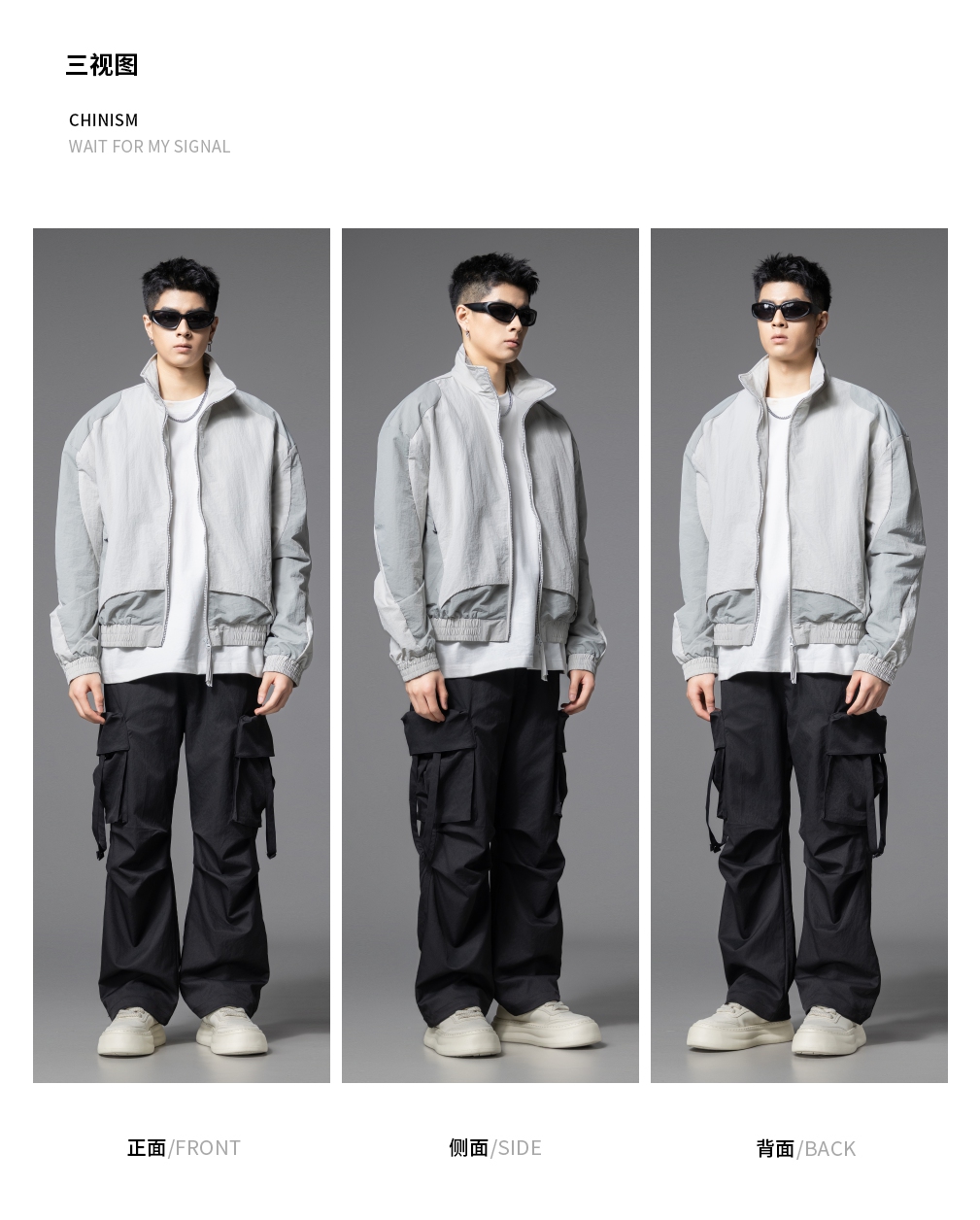 PINLI品立2025秋季新款立领拼接撞色拉链门襟长袖衬衫男士衬衣GD252113295