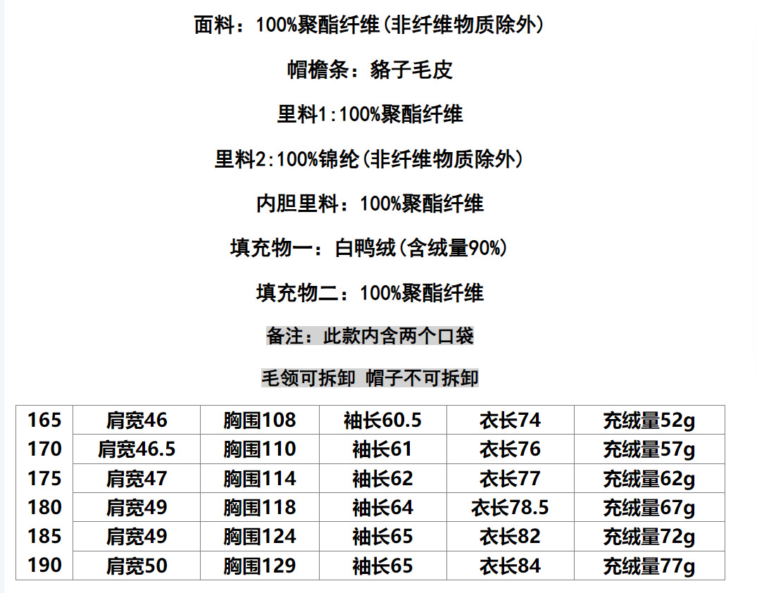 高密定织 顺滑防静电 可脱卸的羽绒内胆 !