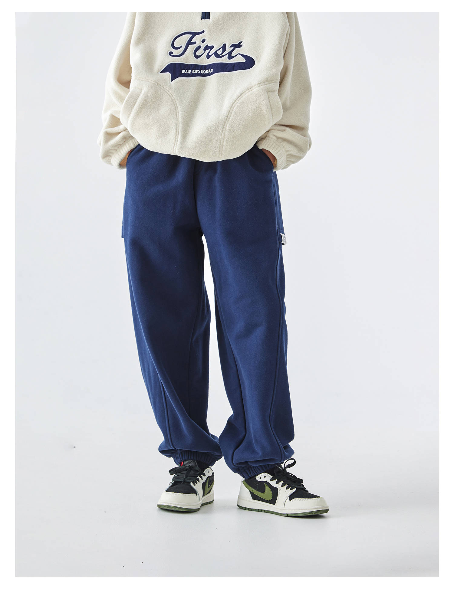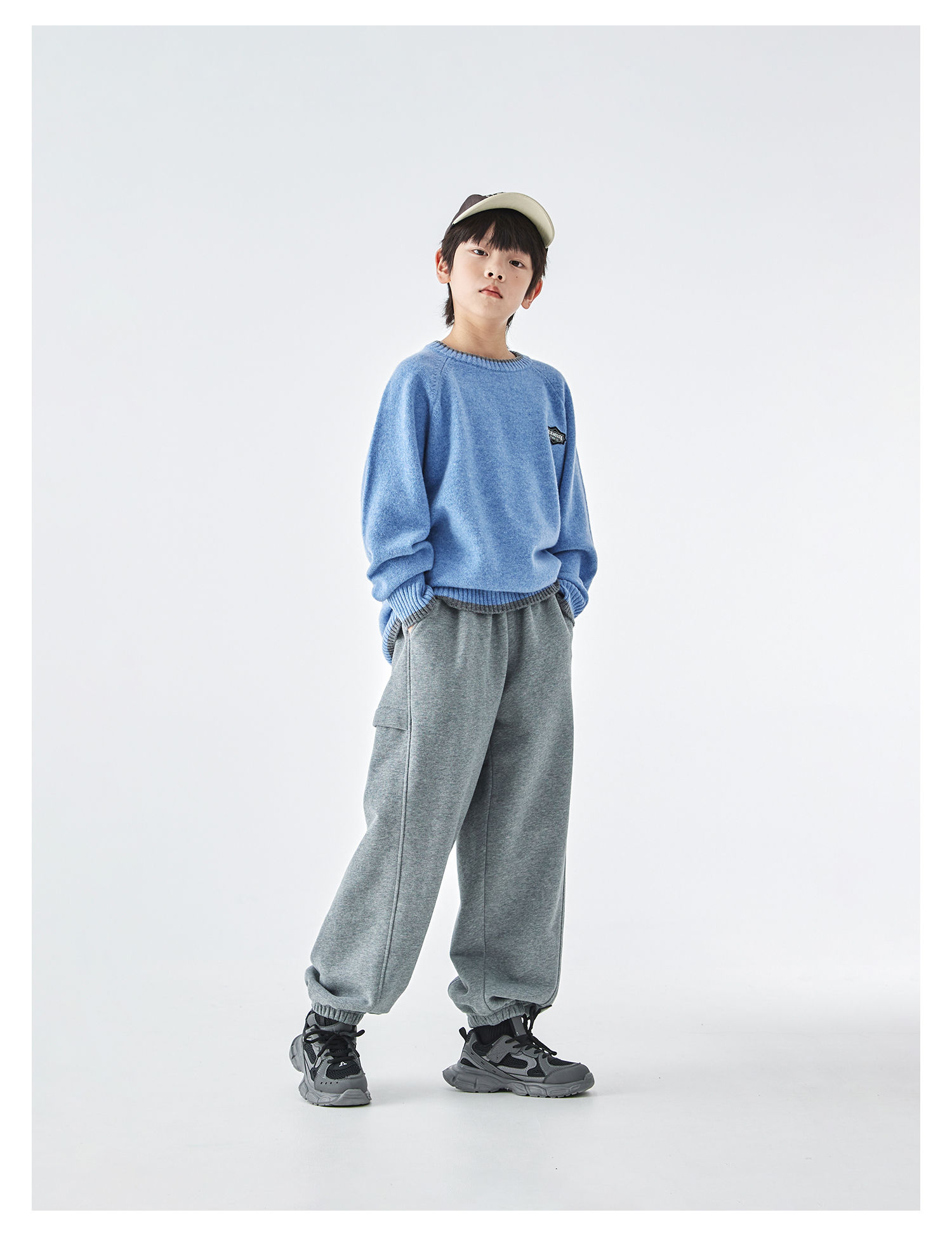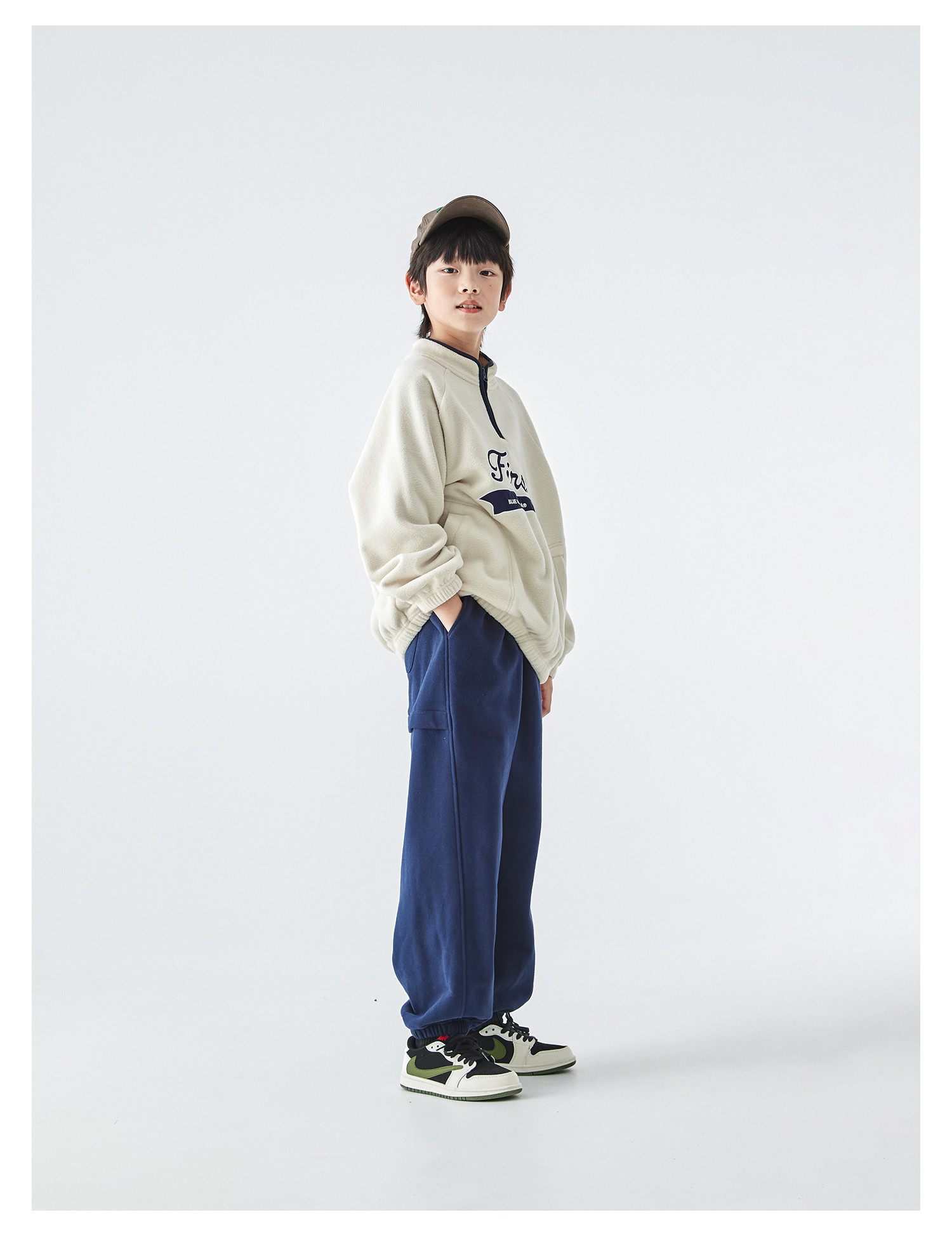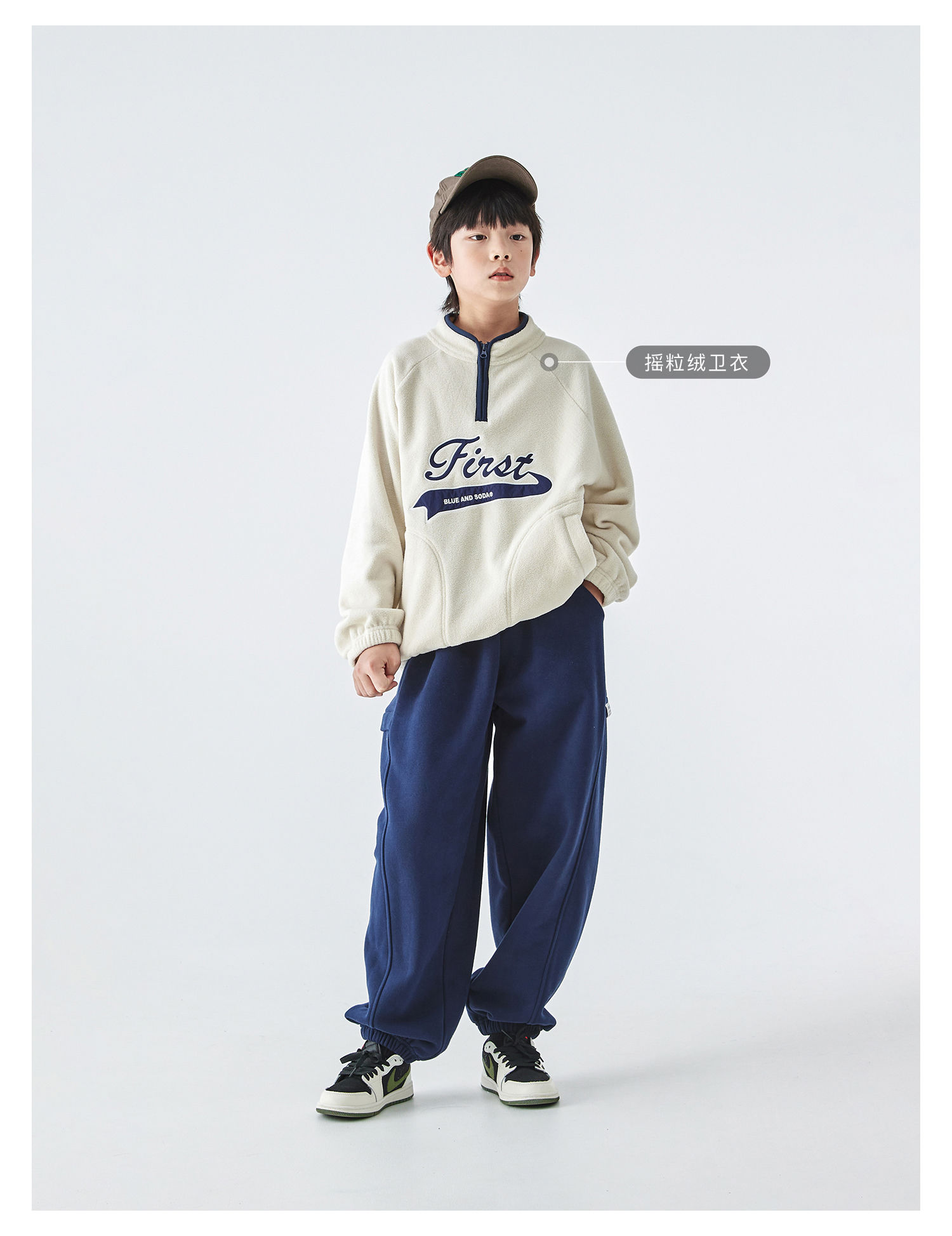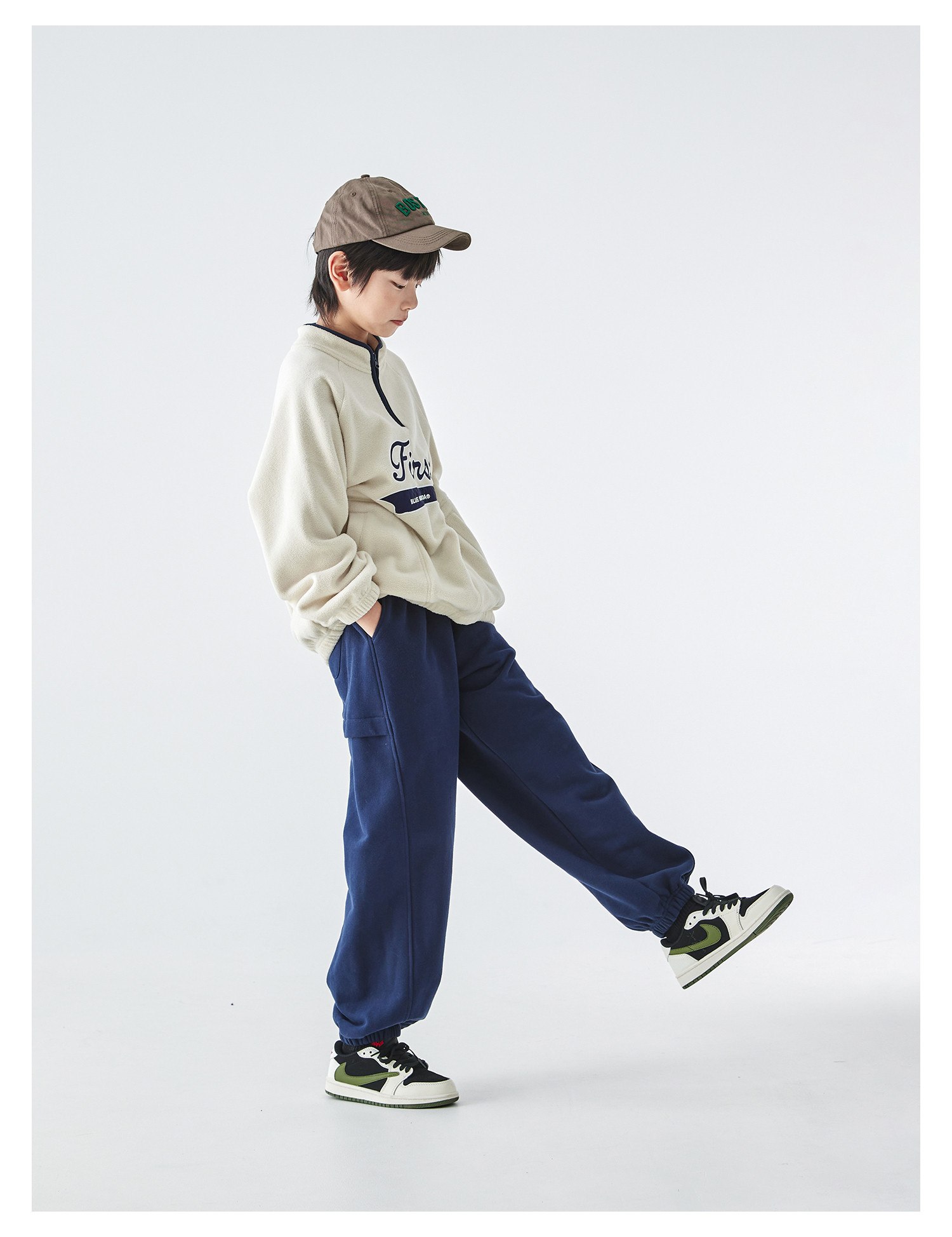 蓝汽水25年冬季新款亲子中大男童分割拼接卫裤绒感保暖纯色束脚裤