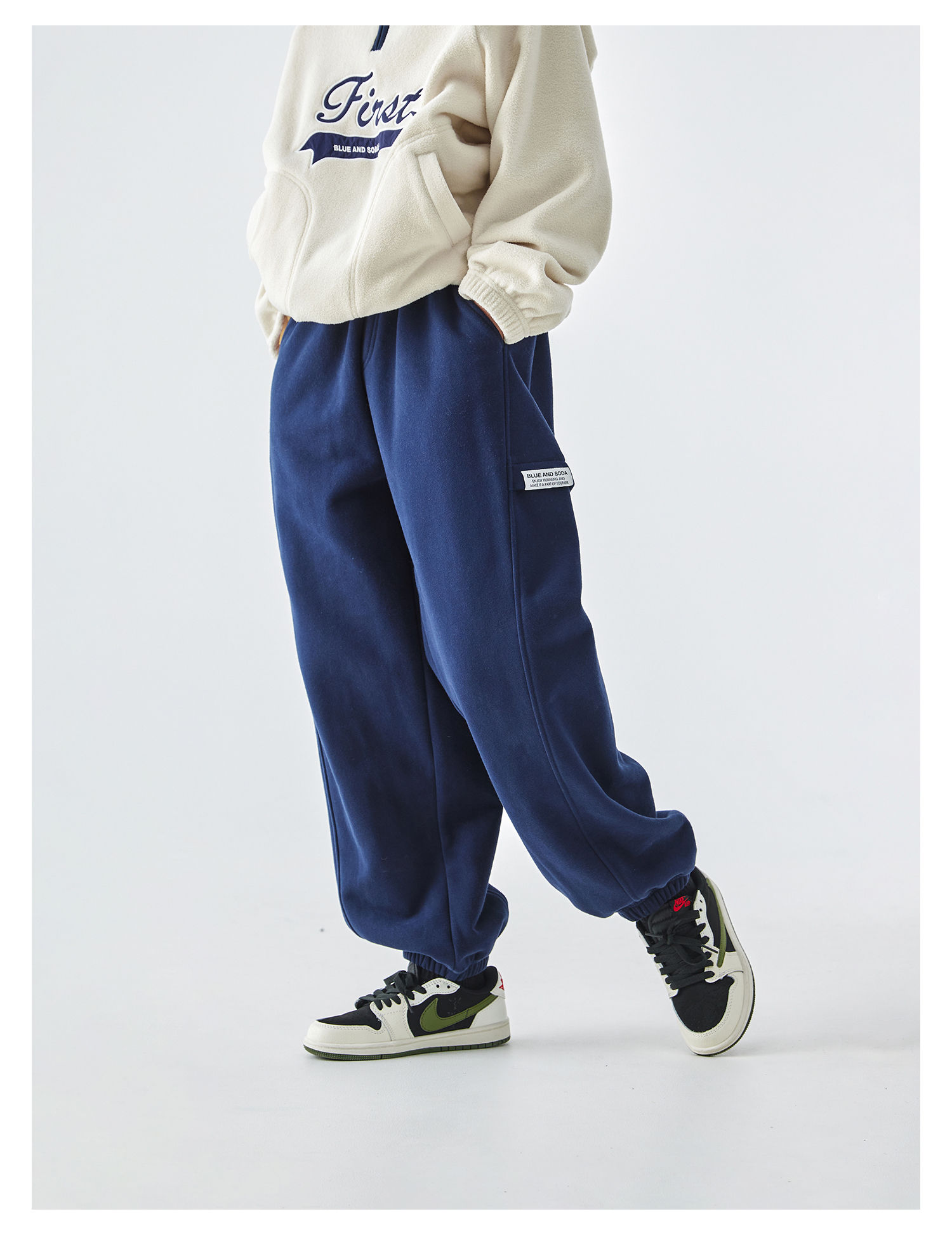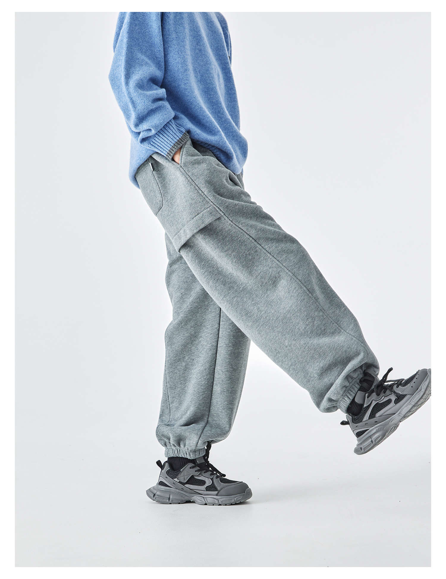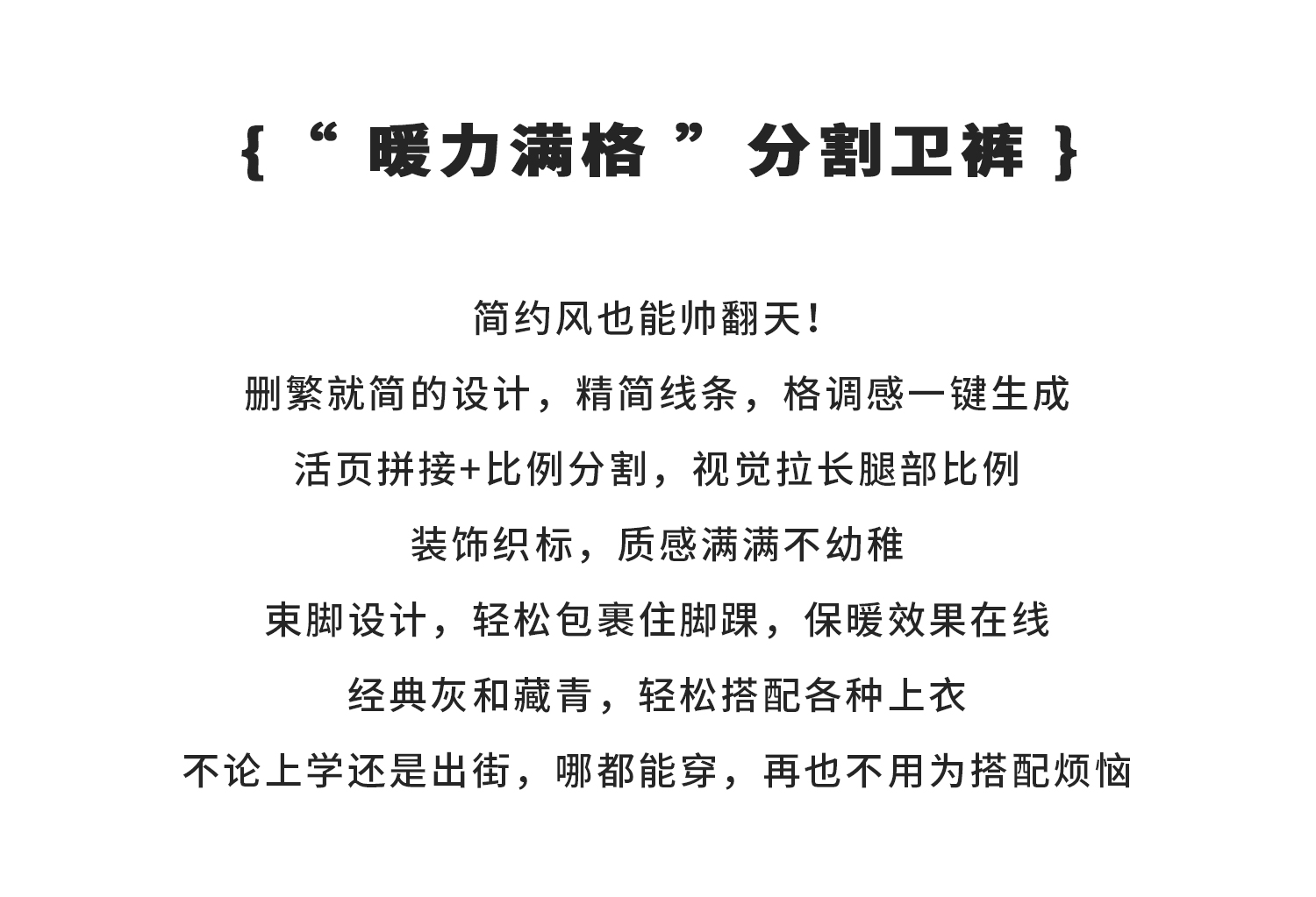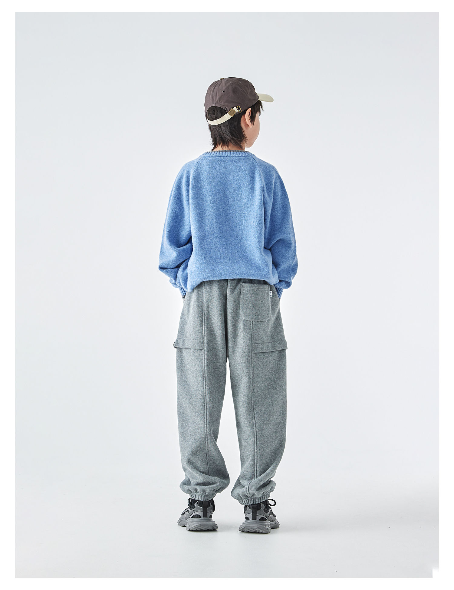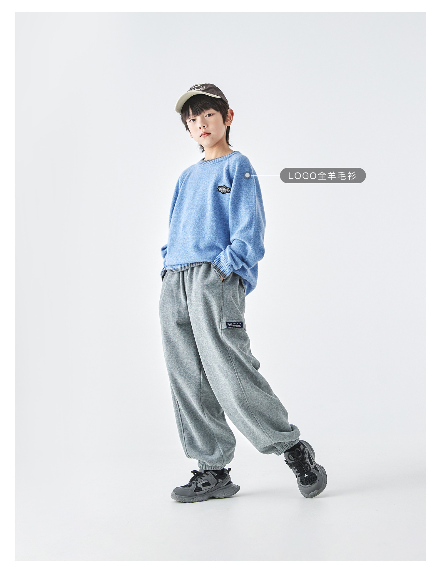 蓝汽水25年冬季新款亲子中大男童分割拼接卫裤绒感保暖纯色束脚裤