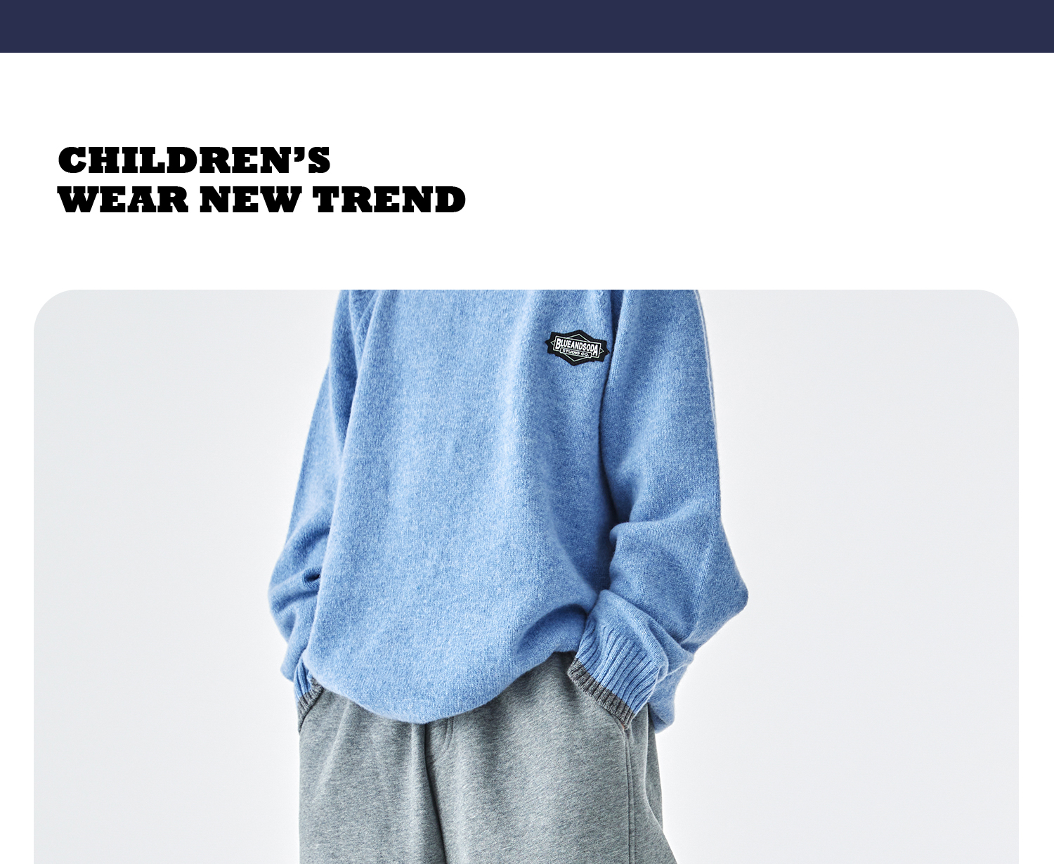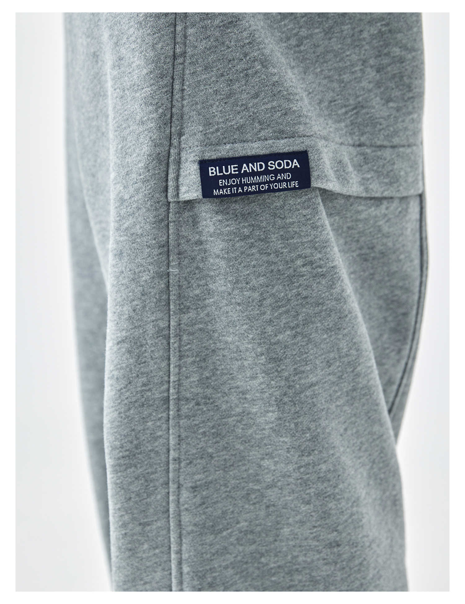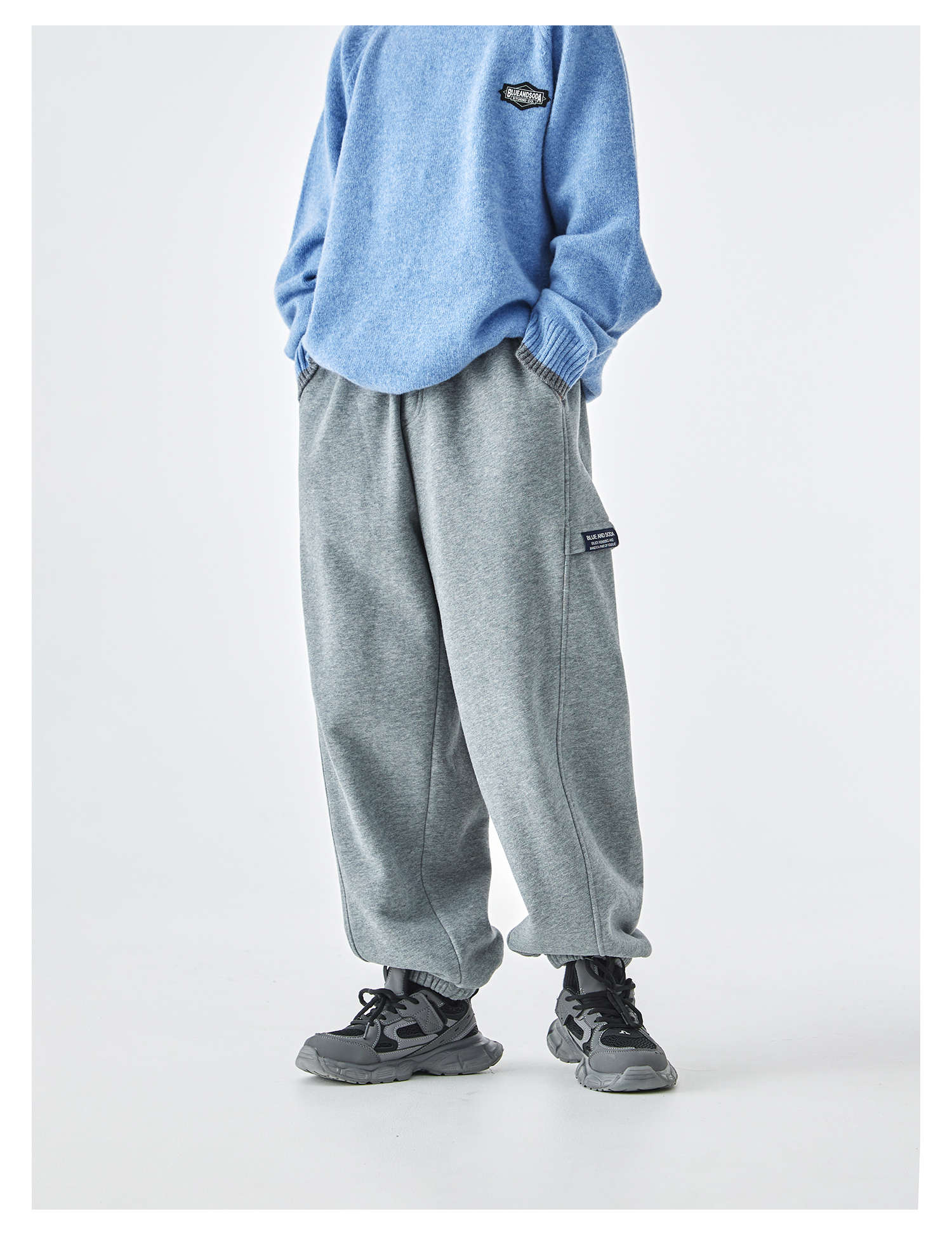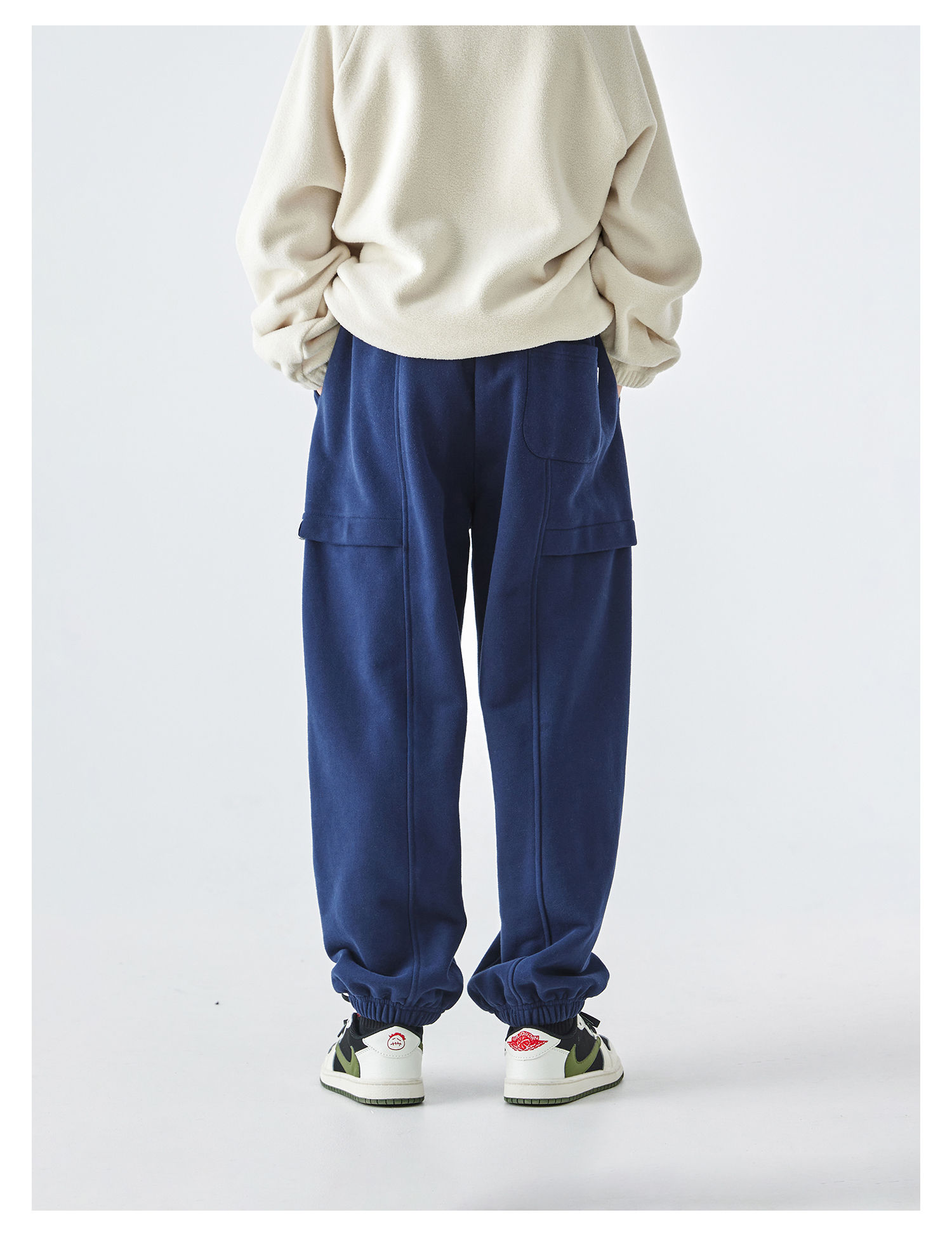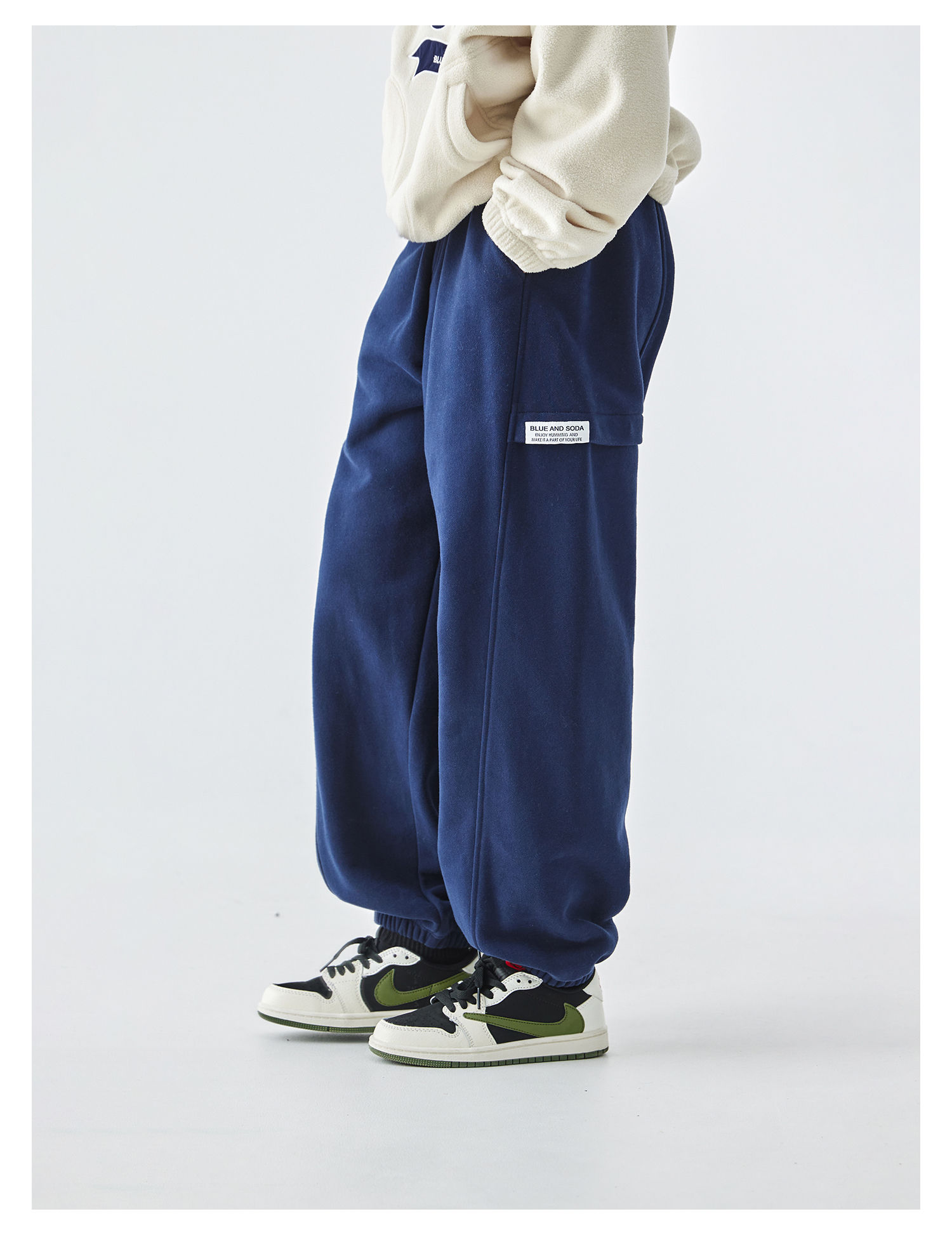 蓝汽水25年冬季新款亲子中大男童分割拼接卫裤绒感保暖纯色束脚裤