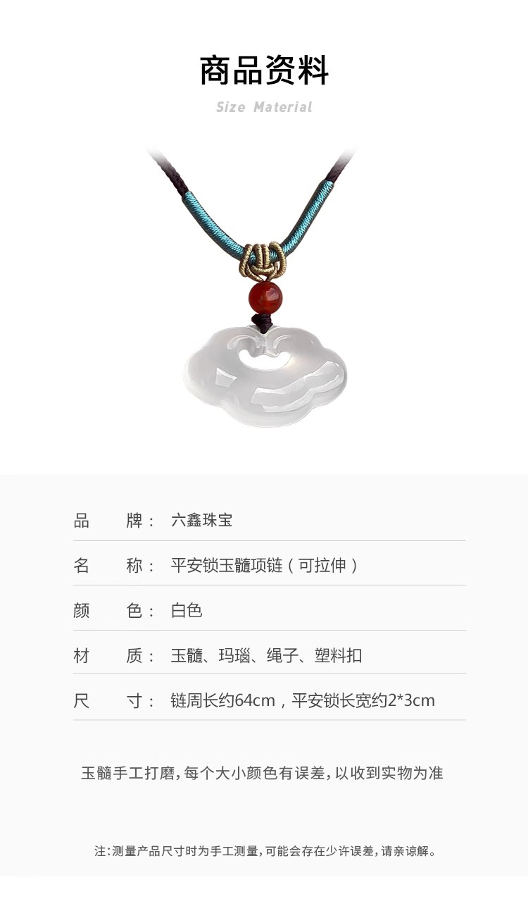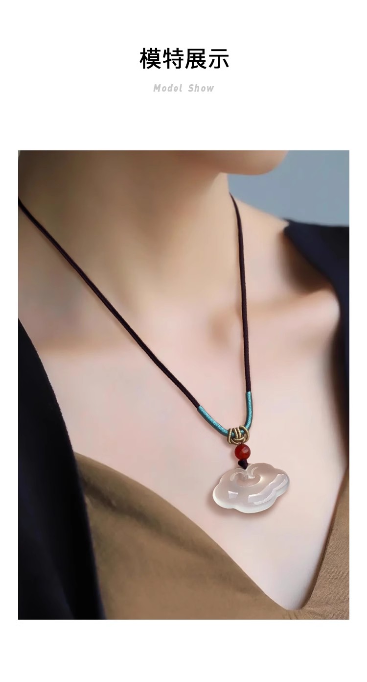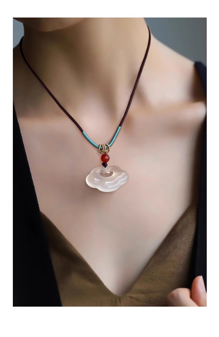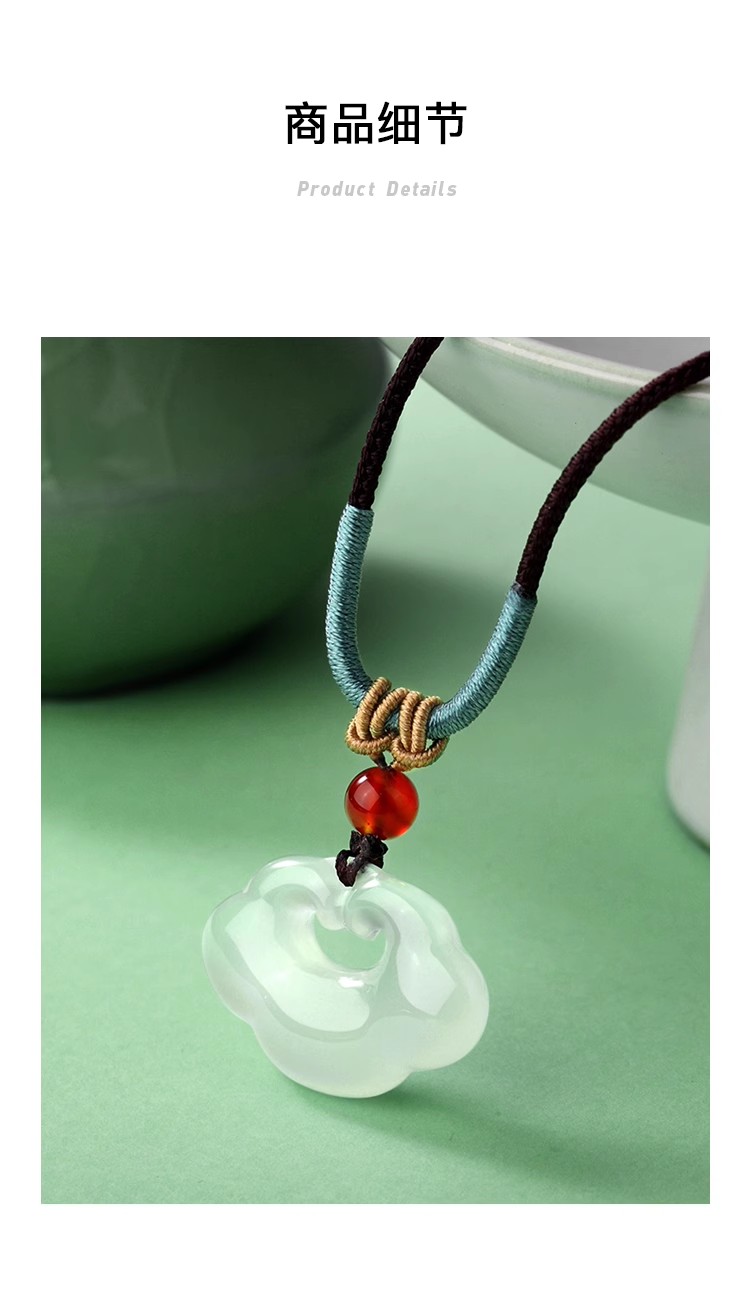 六鑫珠宝 国潮风玉髓如意祥云锁吊坠 长度可调节