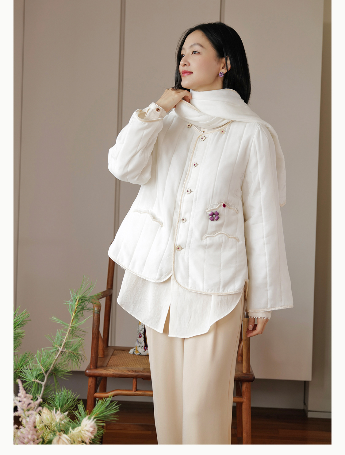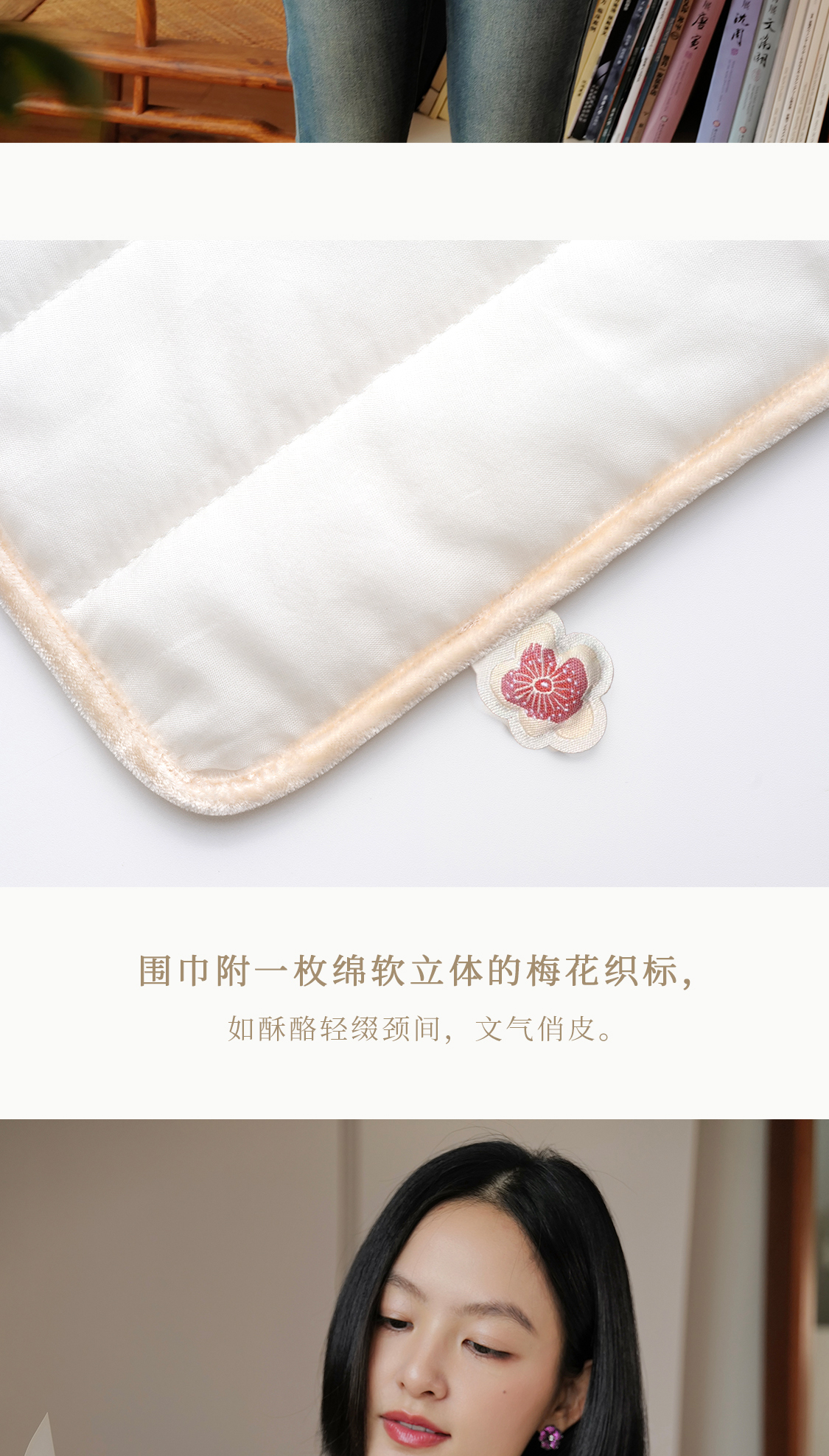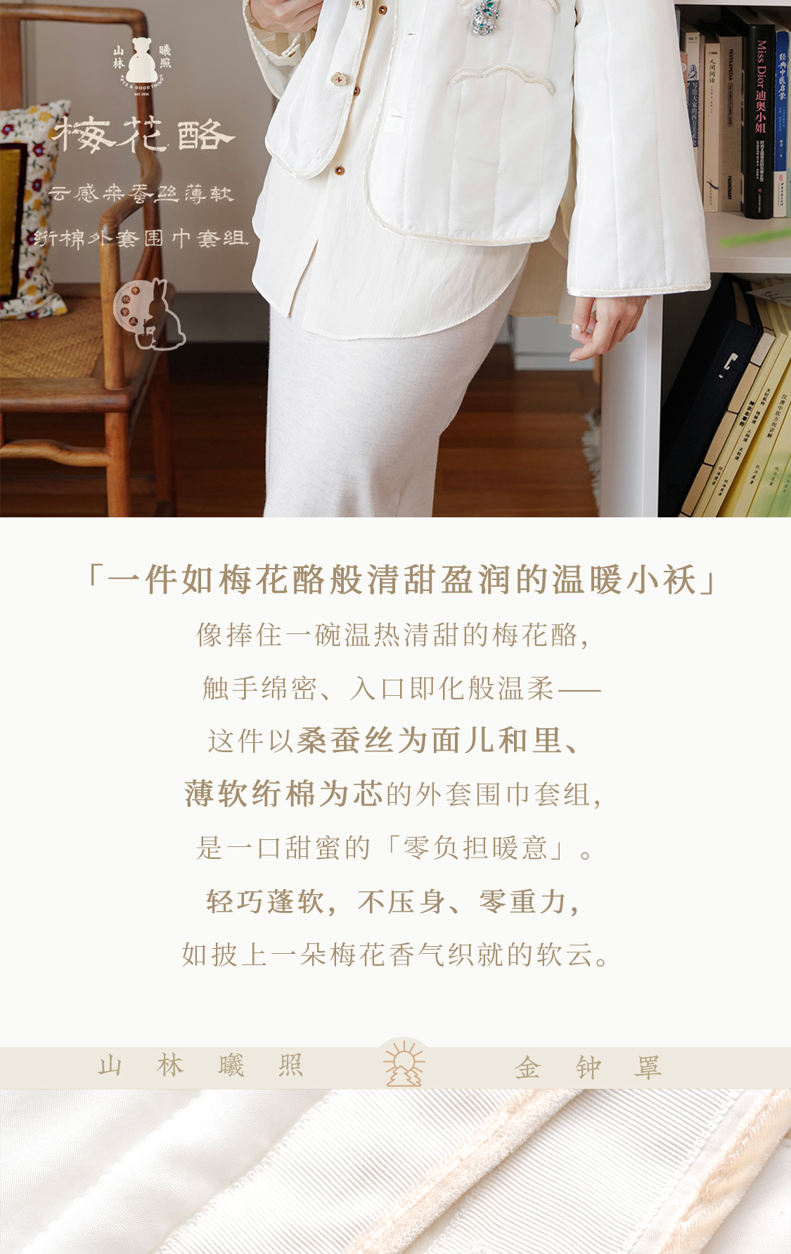 梅花酪 云感桑蚕丝薄软绗棉外套围巾套组 山林曦照