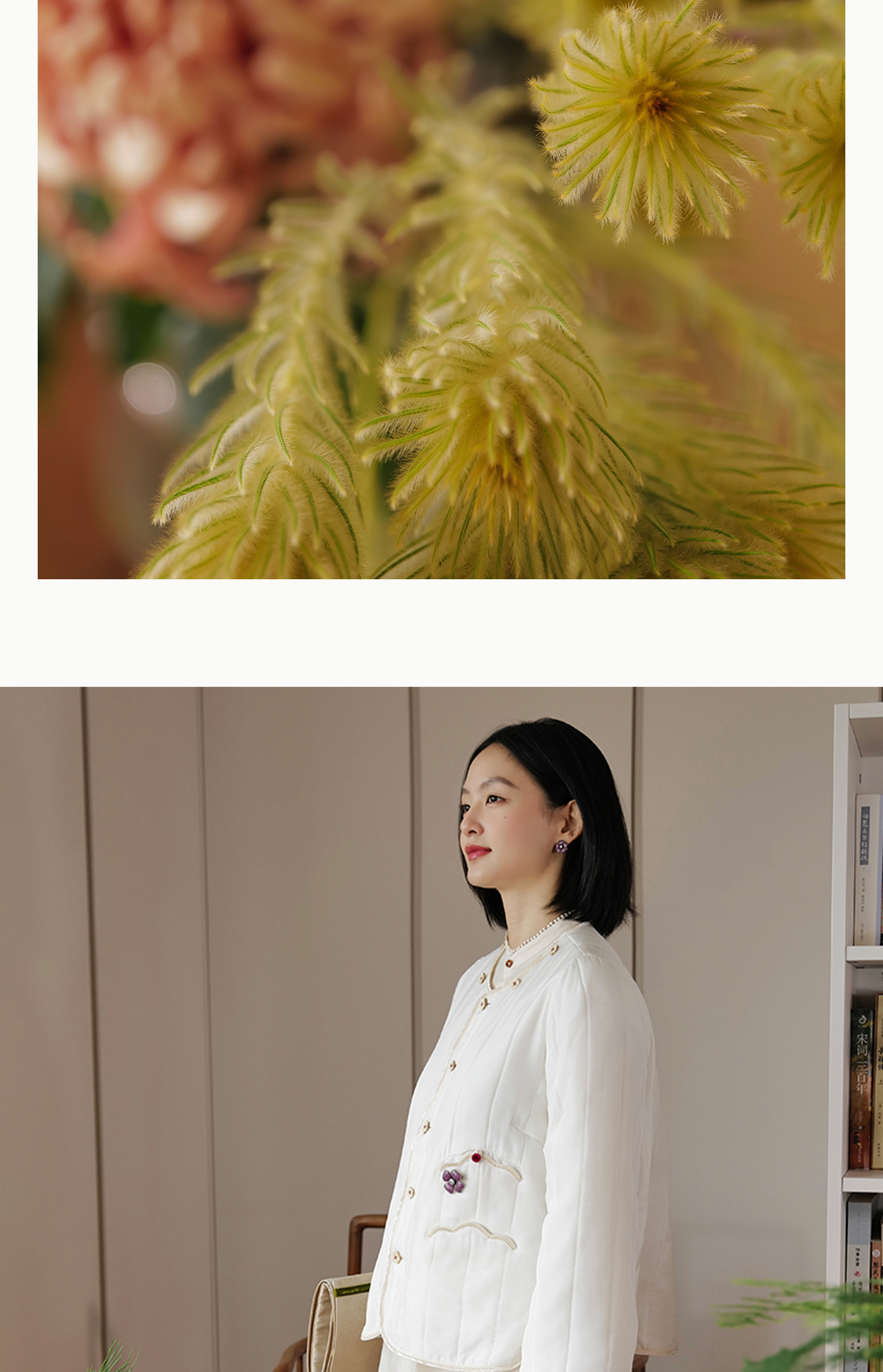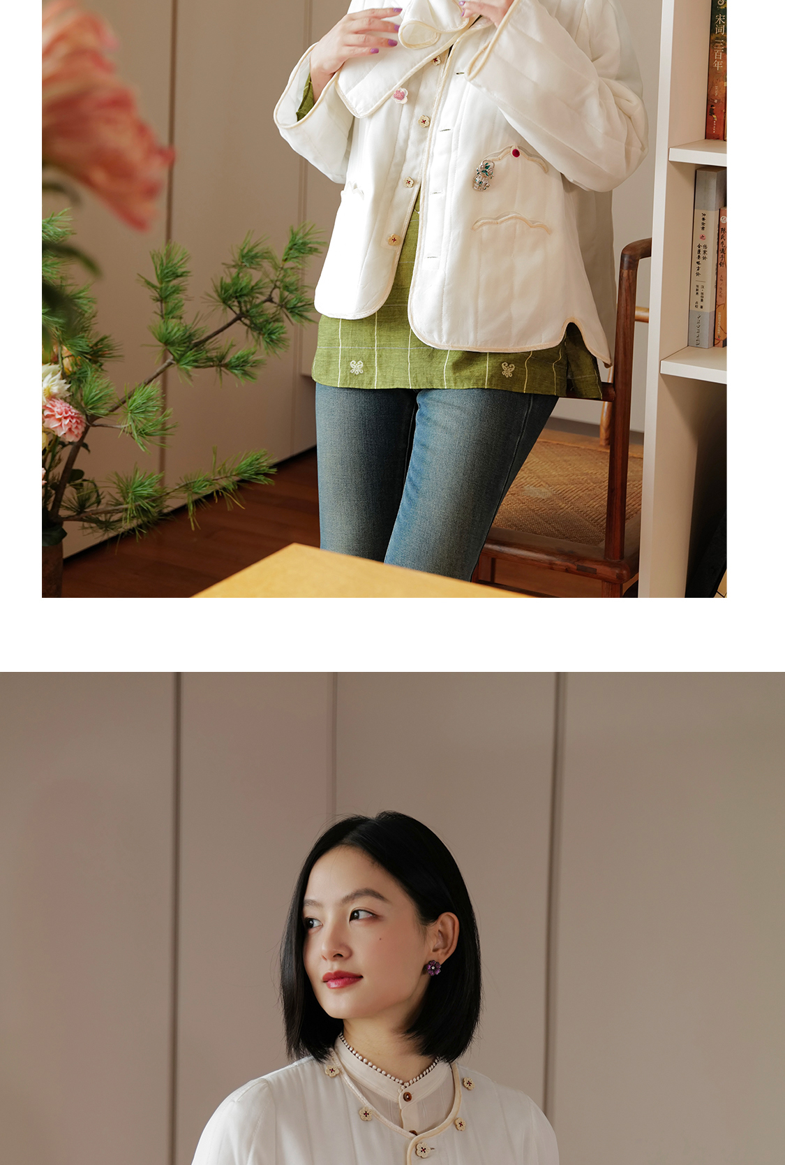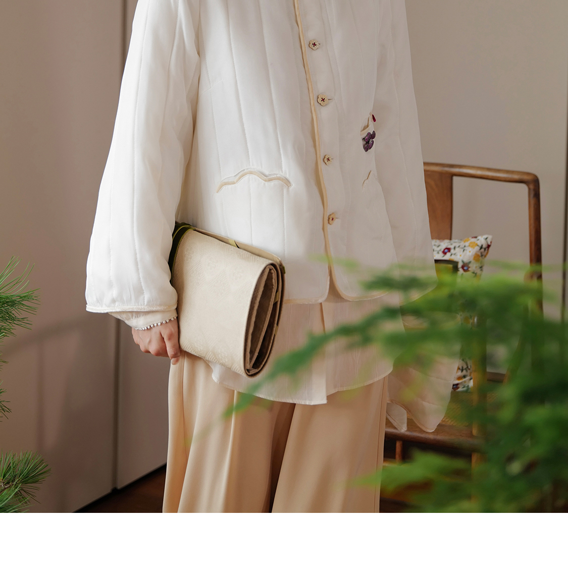 梅花酪 云感桑蚕丝薄软绗棉外套围巾套组 山林曦照