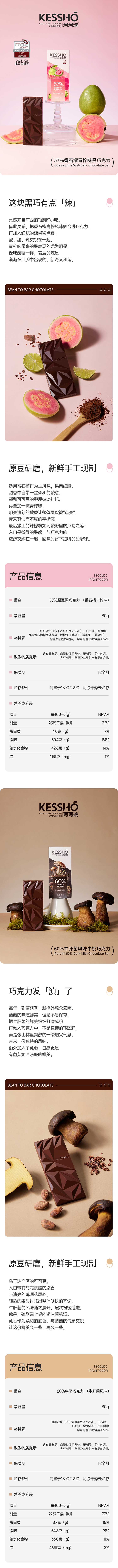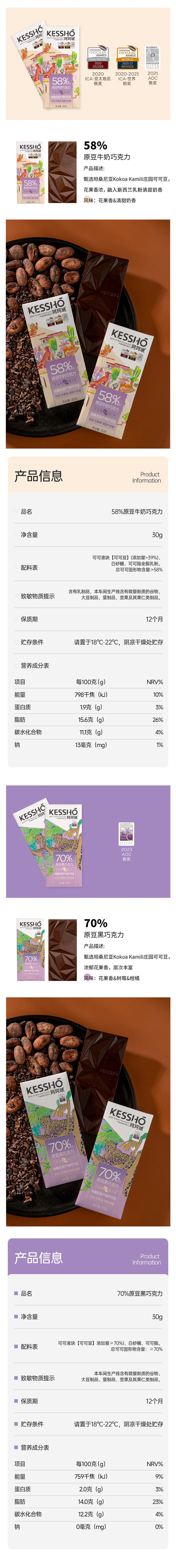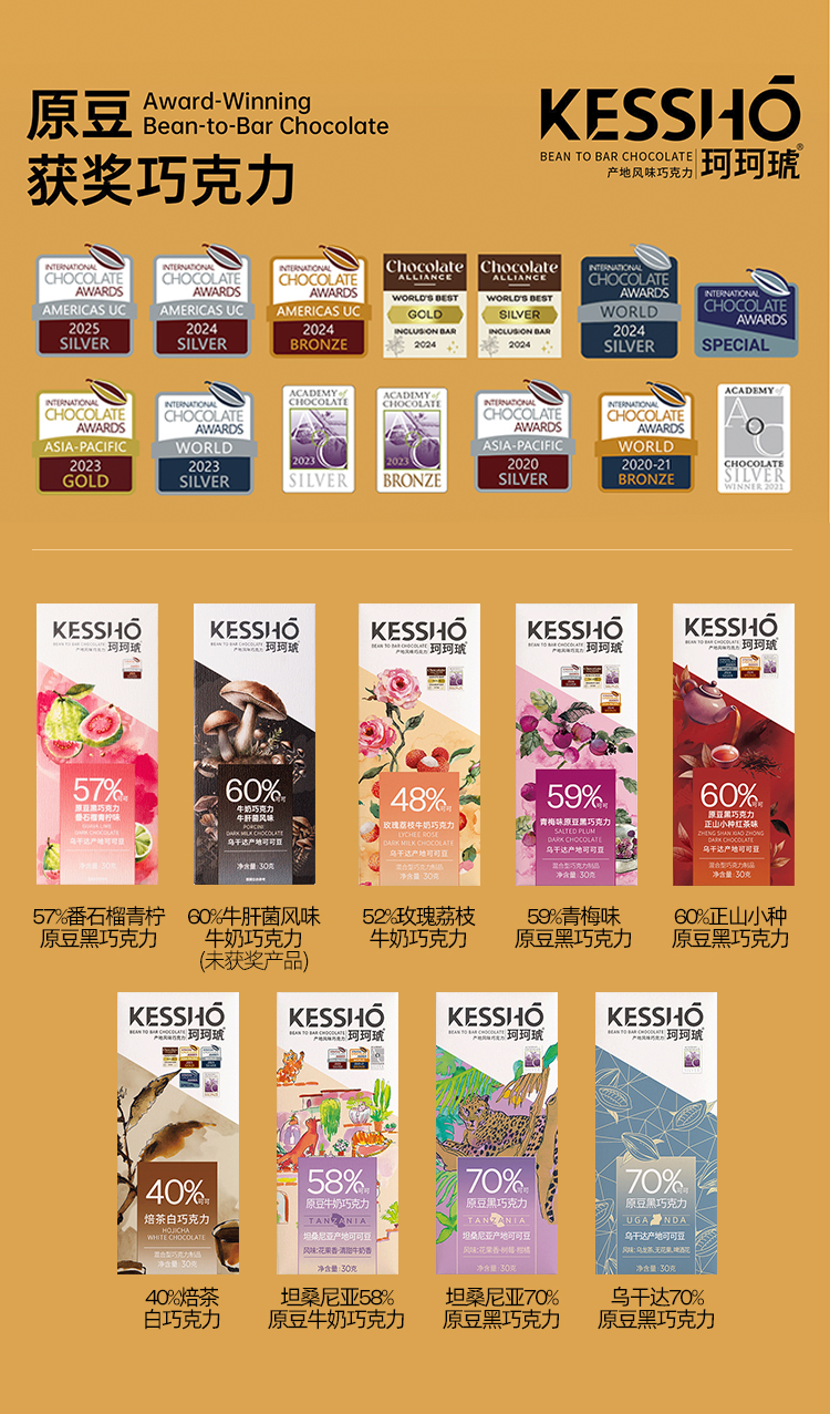 企鹅市集|中国 珂珂琥KESSHO 巧克力排块30g/块 奶巧/黑巧/白巧 多产地风味可选