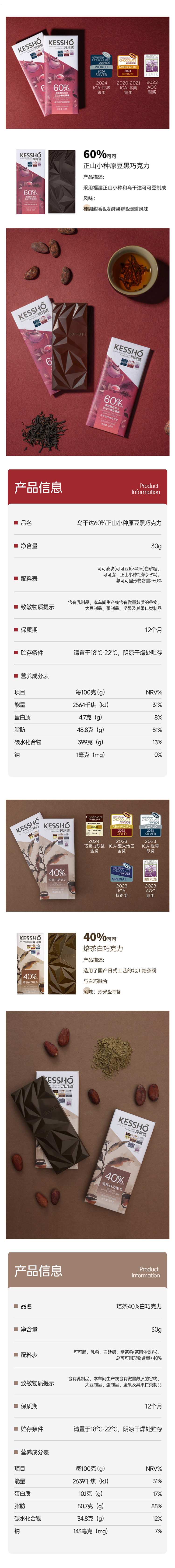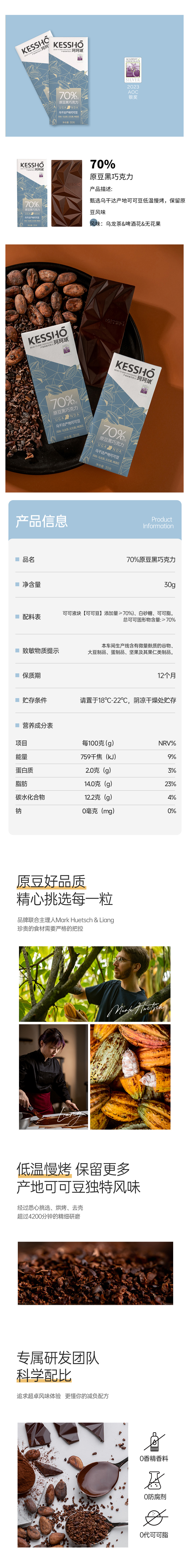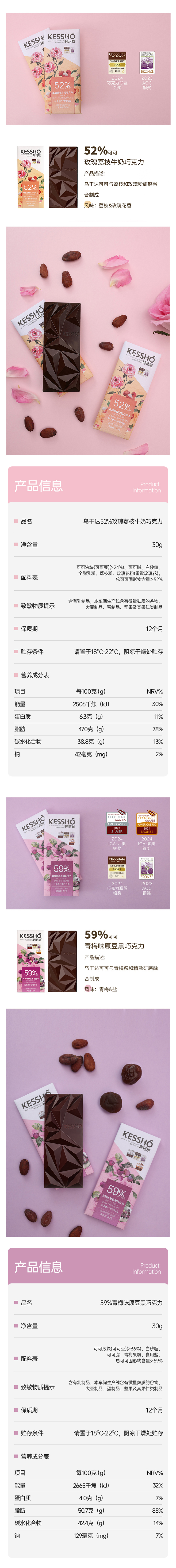 企鹅市集|中国 珂珂琥KESSHO 巧克力排块30g/块 奶巧/黑巧/白巧 多产地风味可选