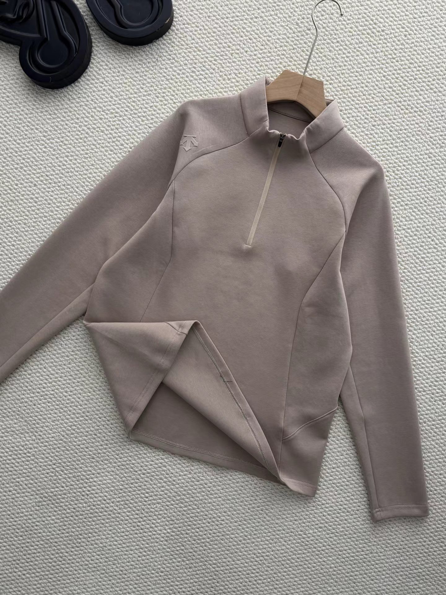 男士长袖半拉链贴身保暖针织衫春秋单穿!jing典时尚!冬季还可以当做内搭!非常实用!男子长袖针织衫,采用SOLOTEX双面布空气面料,兼具弹力与柔软触感,贴身保暖且活动自如。jing典半拉链设计方便穿脱,插肩袖结构扩展肩部运动范围。贴合版型兼顾运动灵活与日常穿搭,适应综训、休闲等多种场景。