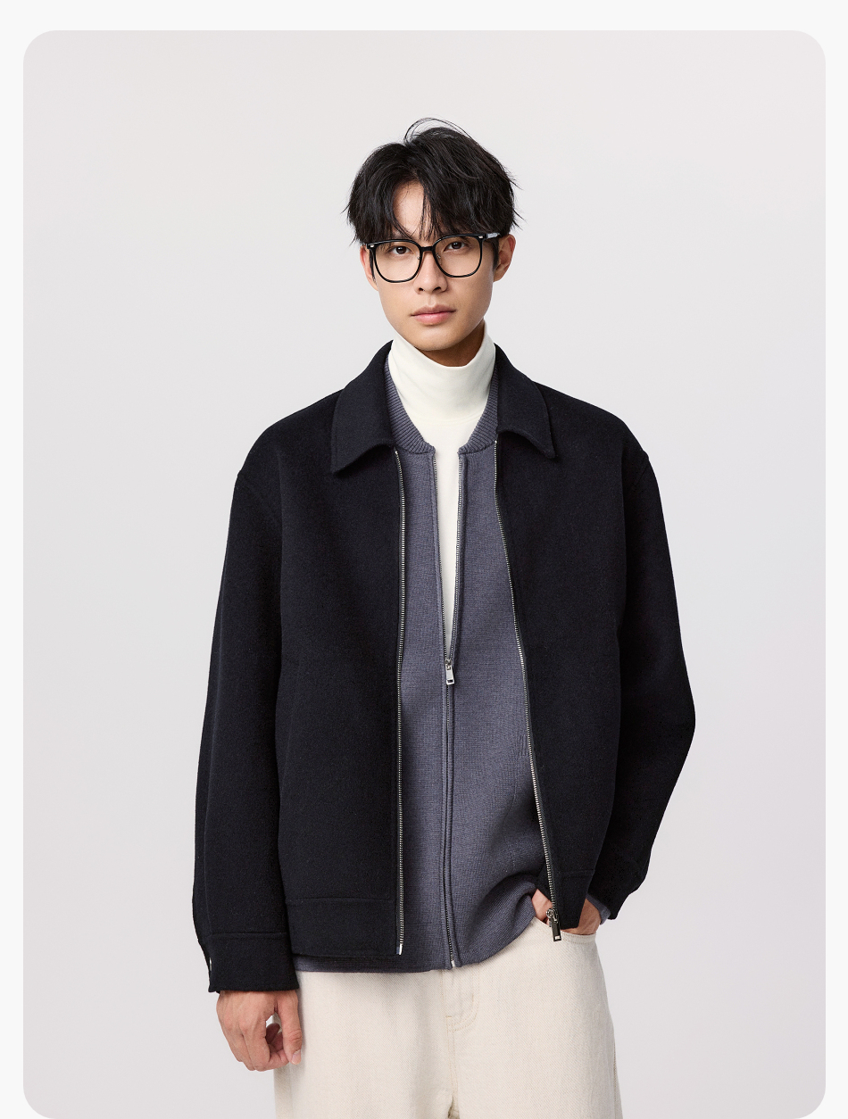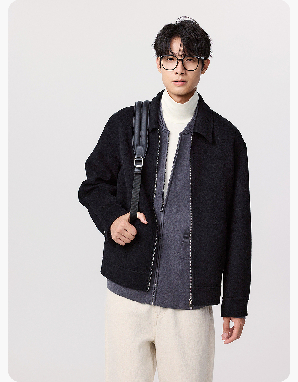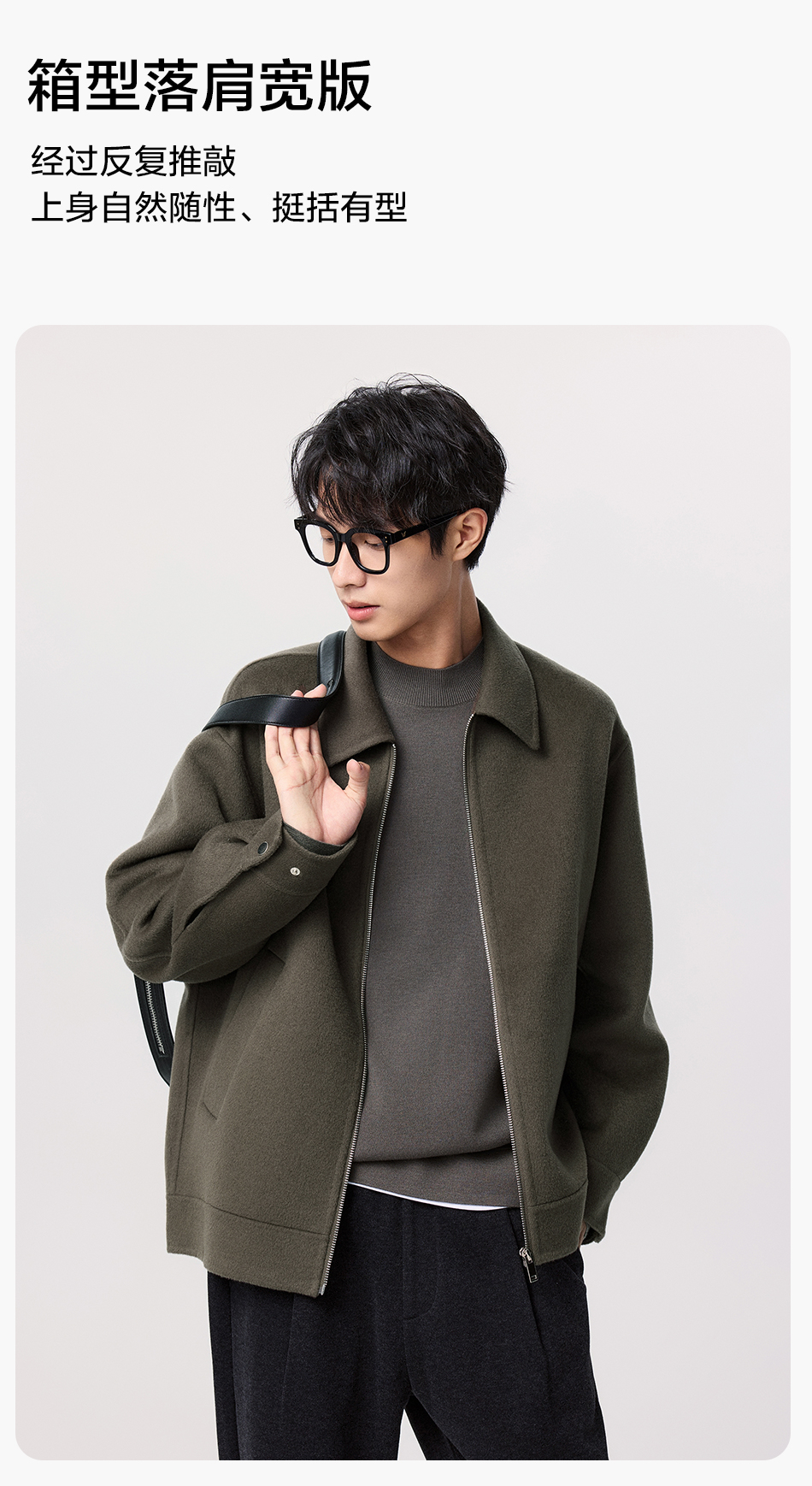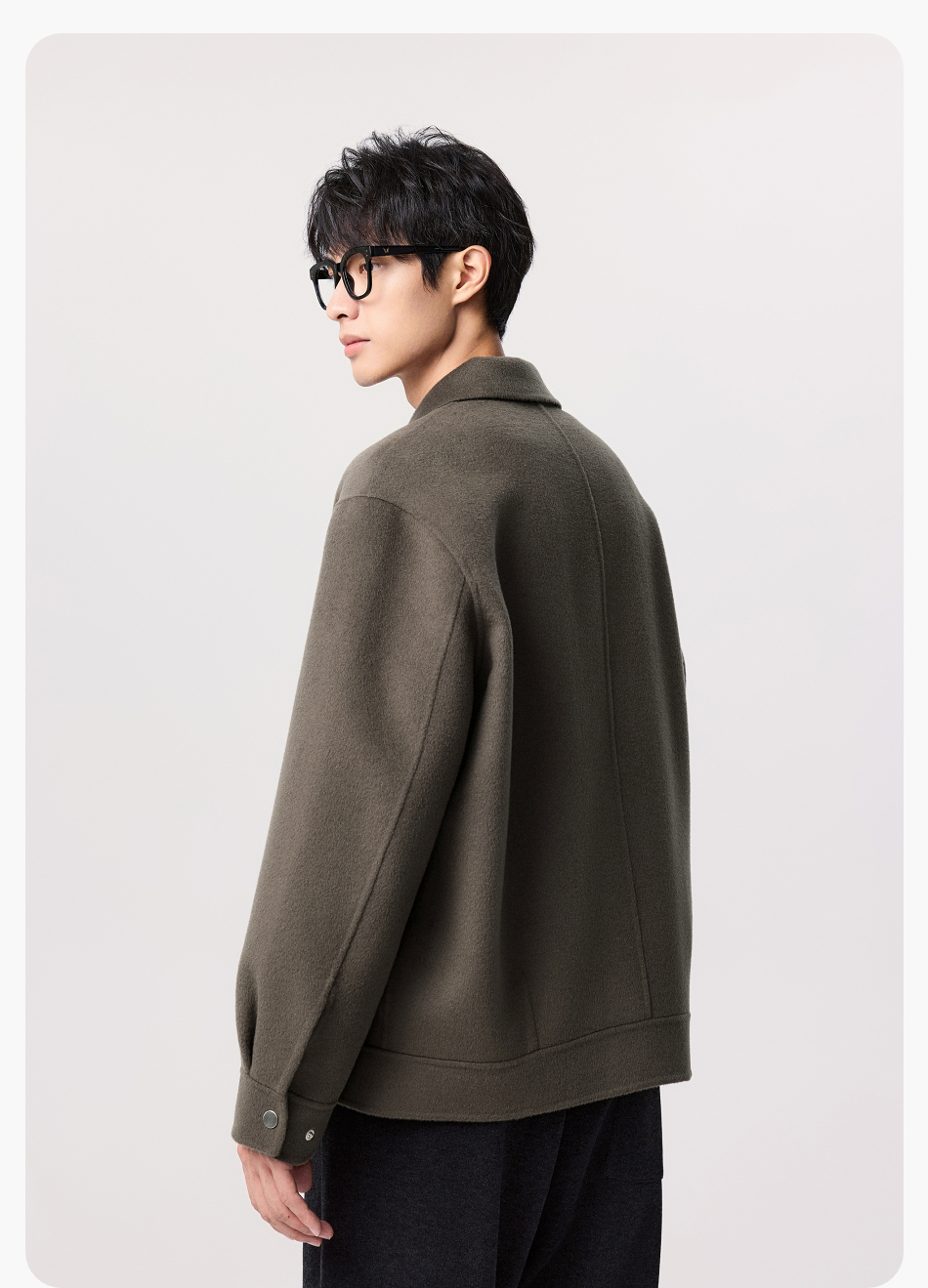 棉仓357811005-5系高支精纺全羊毛双面呢毛呢夹克男 秋冬短款行政翻领外套