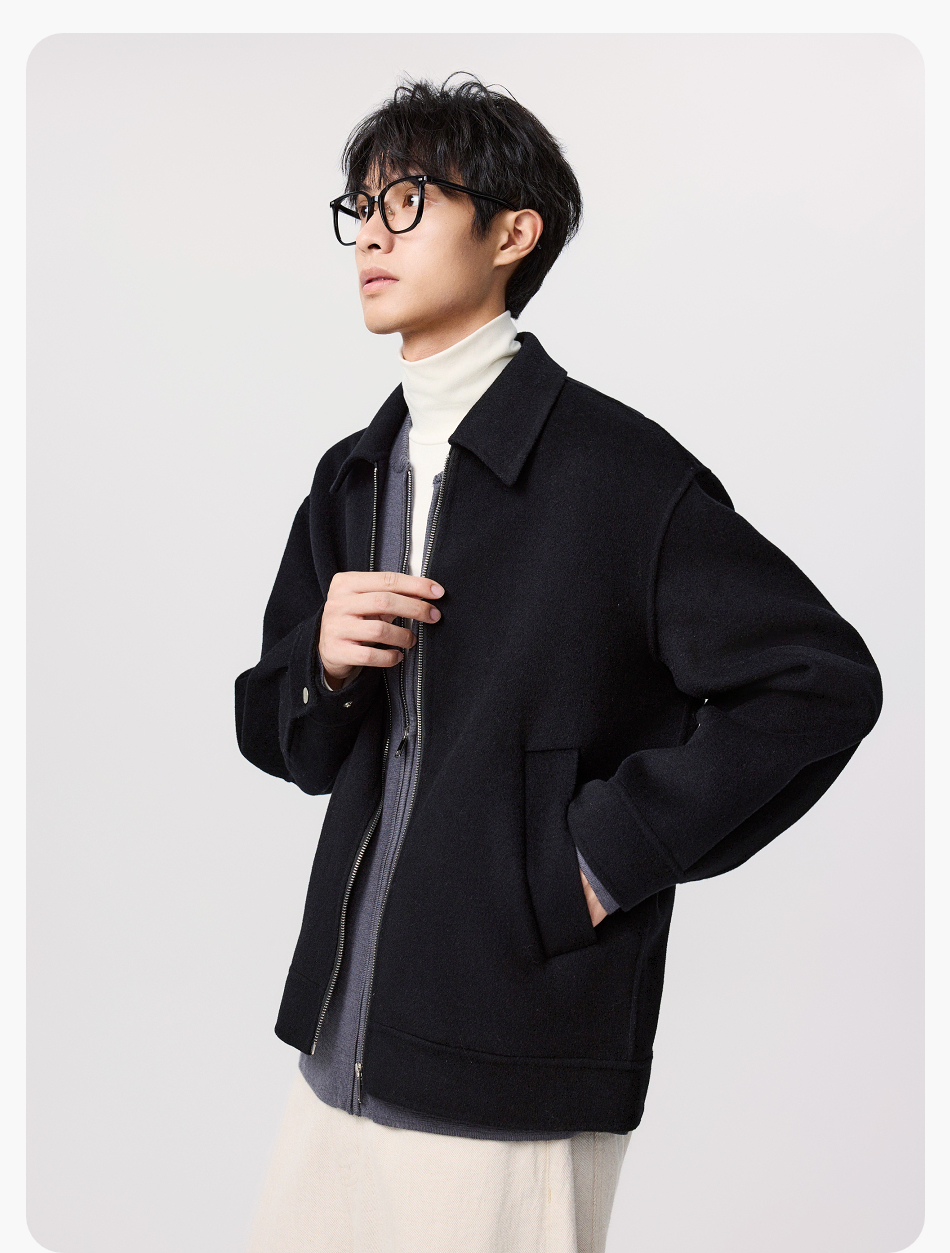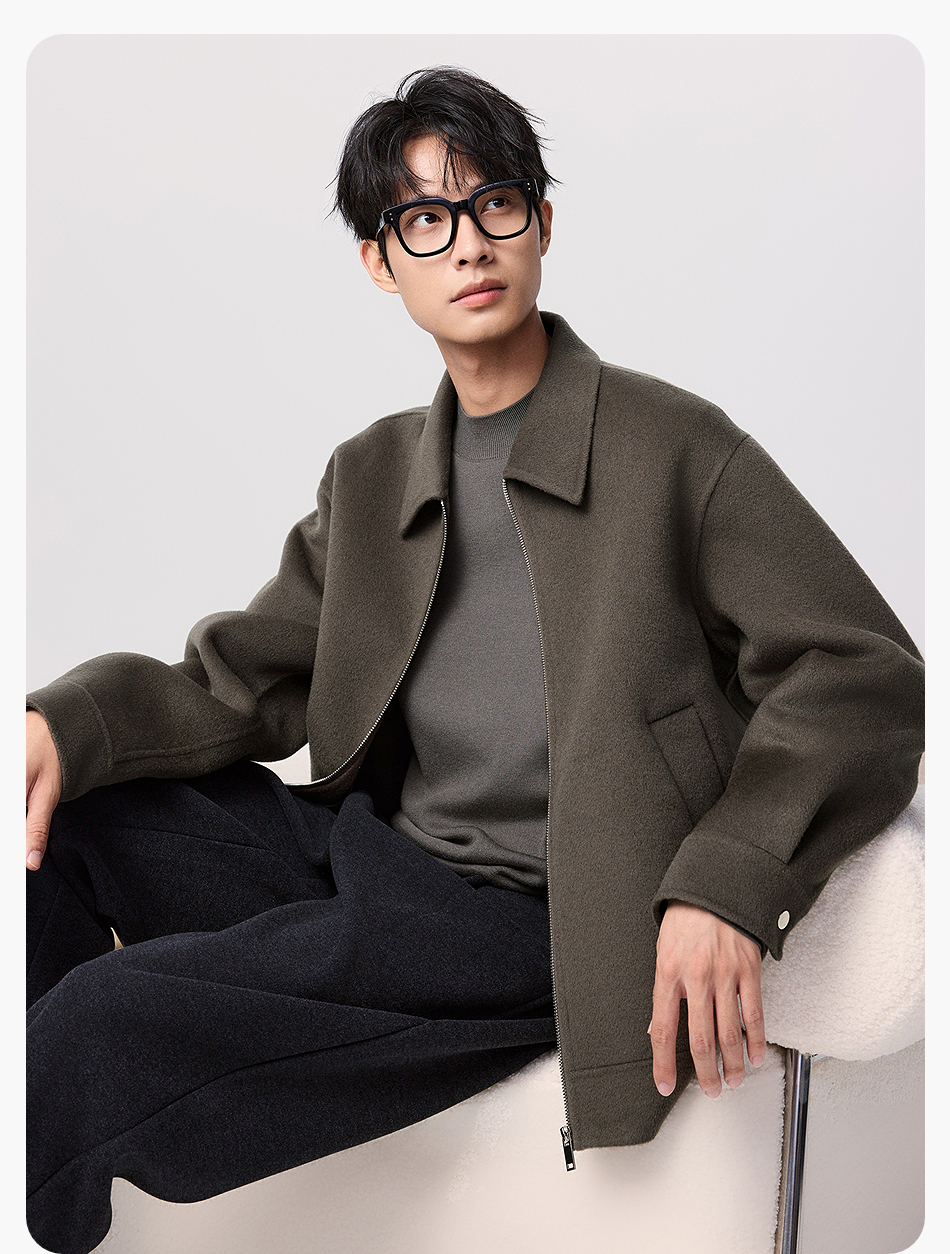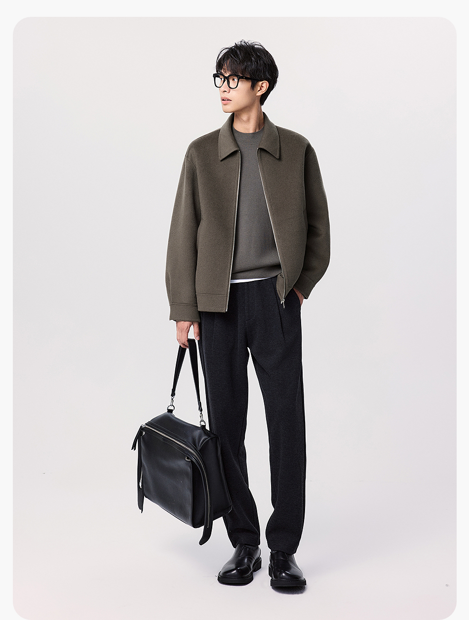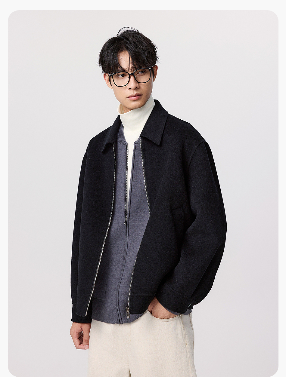 棉仓357811005-5系高支精纺全羊毛双面呢毛呢夹克男 秋冬短款行政翻领外套