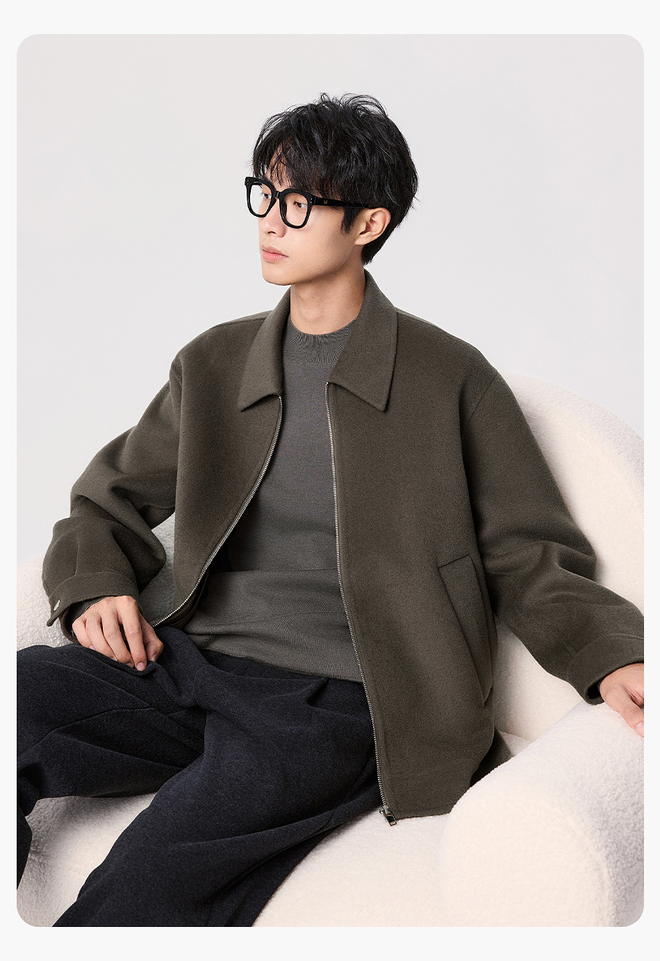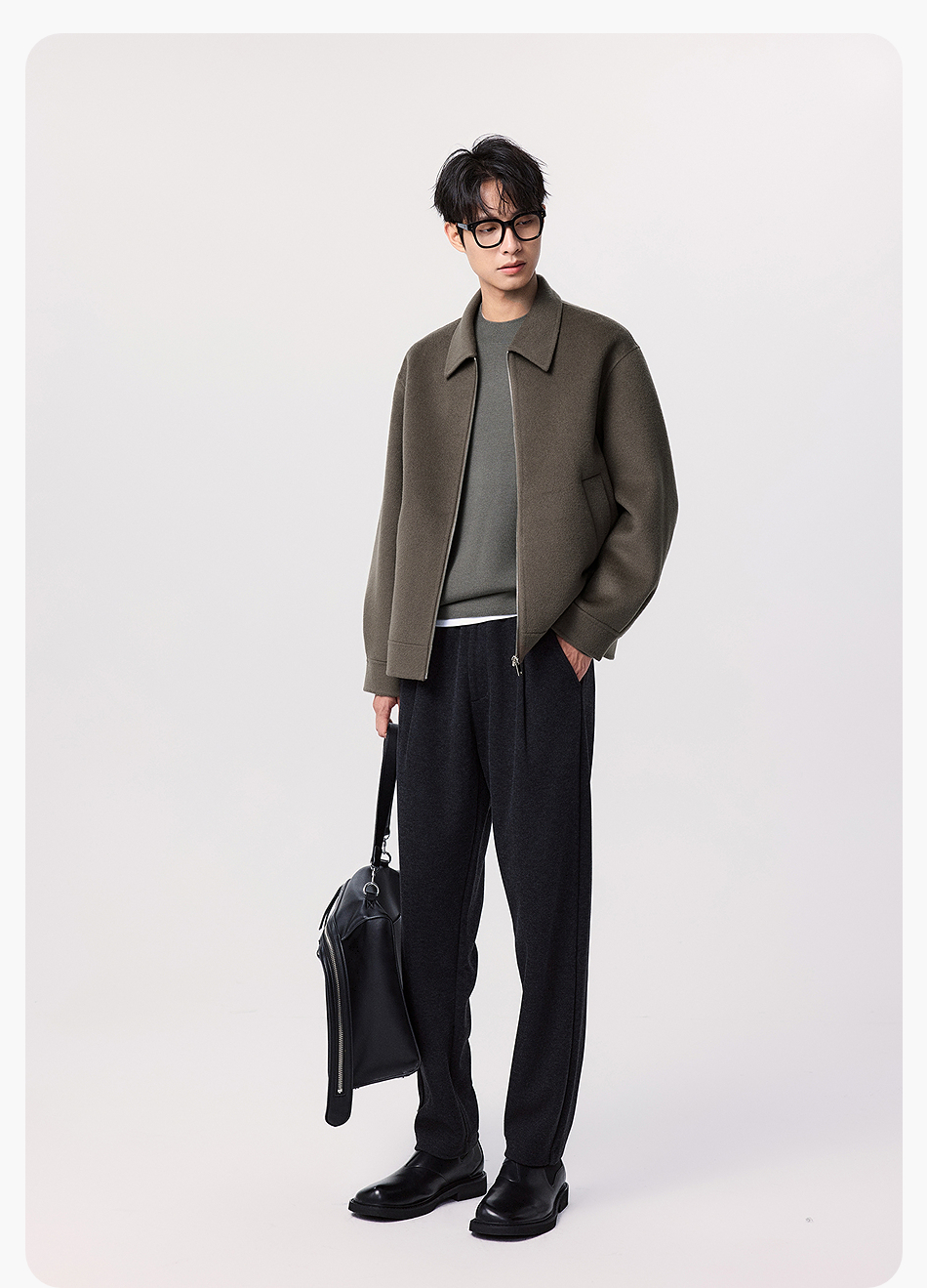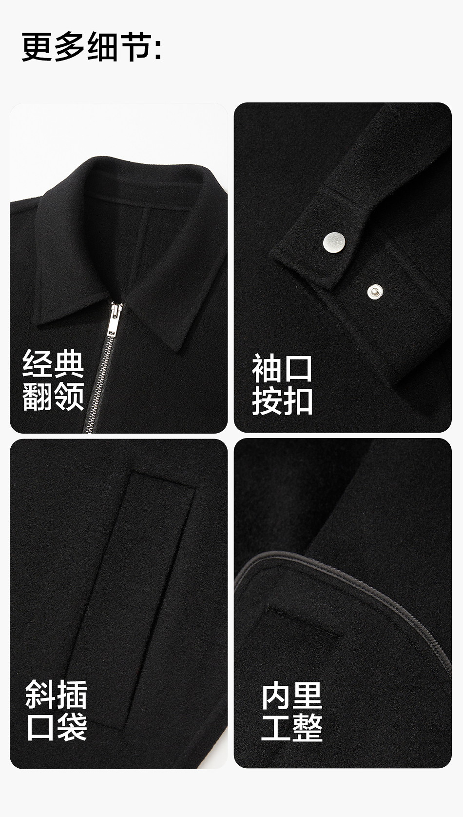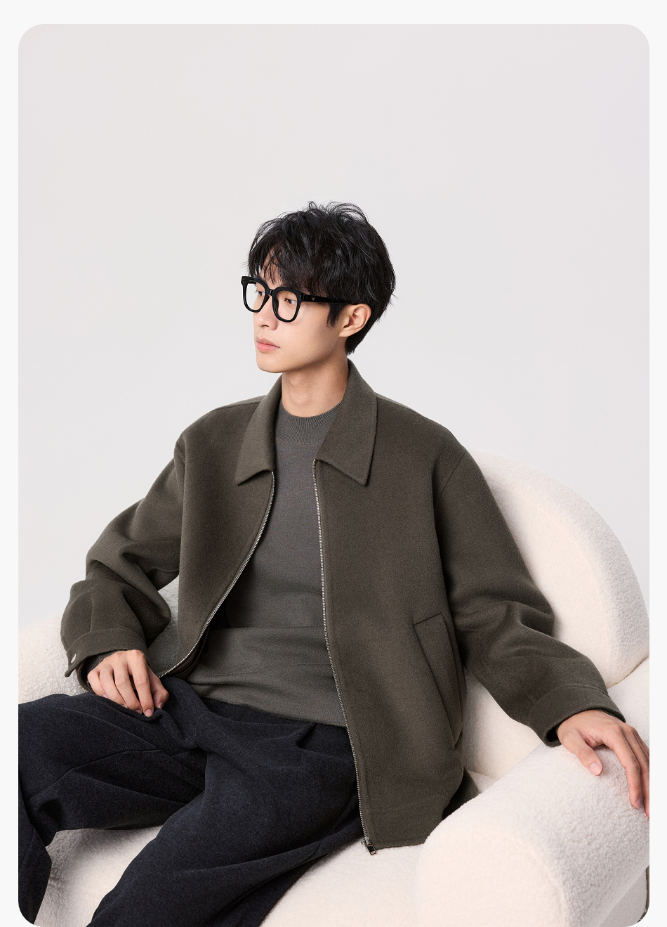 棉仓357811005-5系高支精纺全羊毛双面呢毛呢夹克男 秋冬短款行政翻领外套