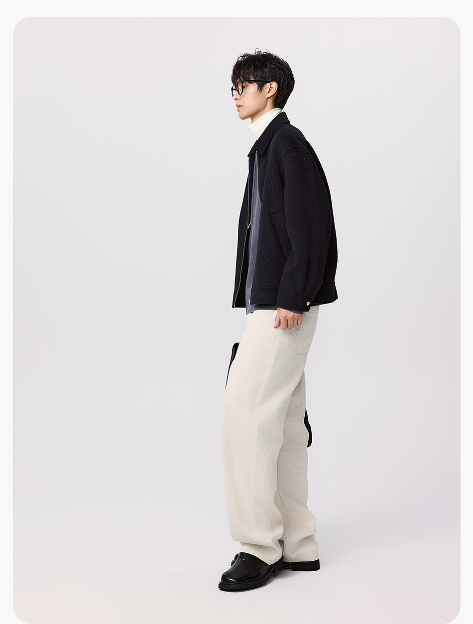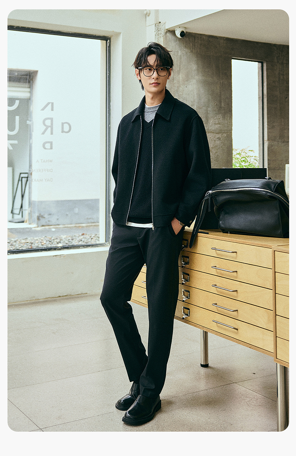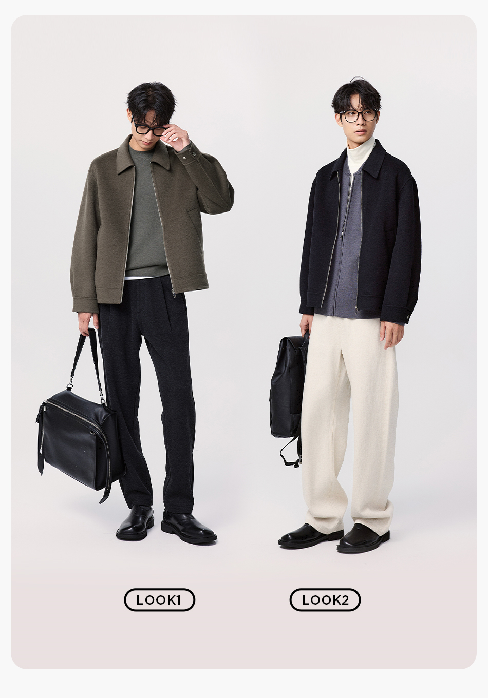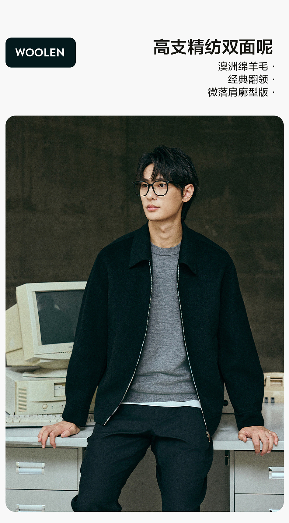 棉仓357811005-5系高支精纺全羊毛双面呢毛呢夹克男 秋冬短款行政翻领外套