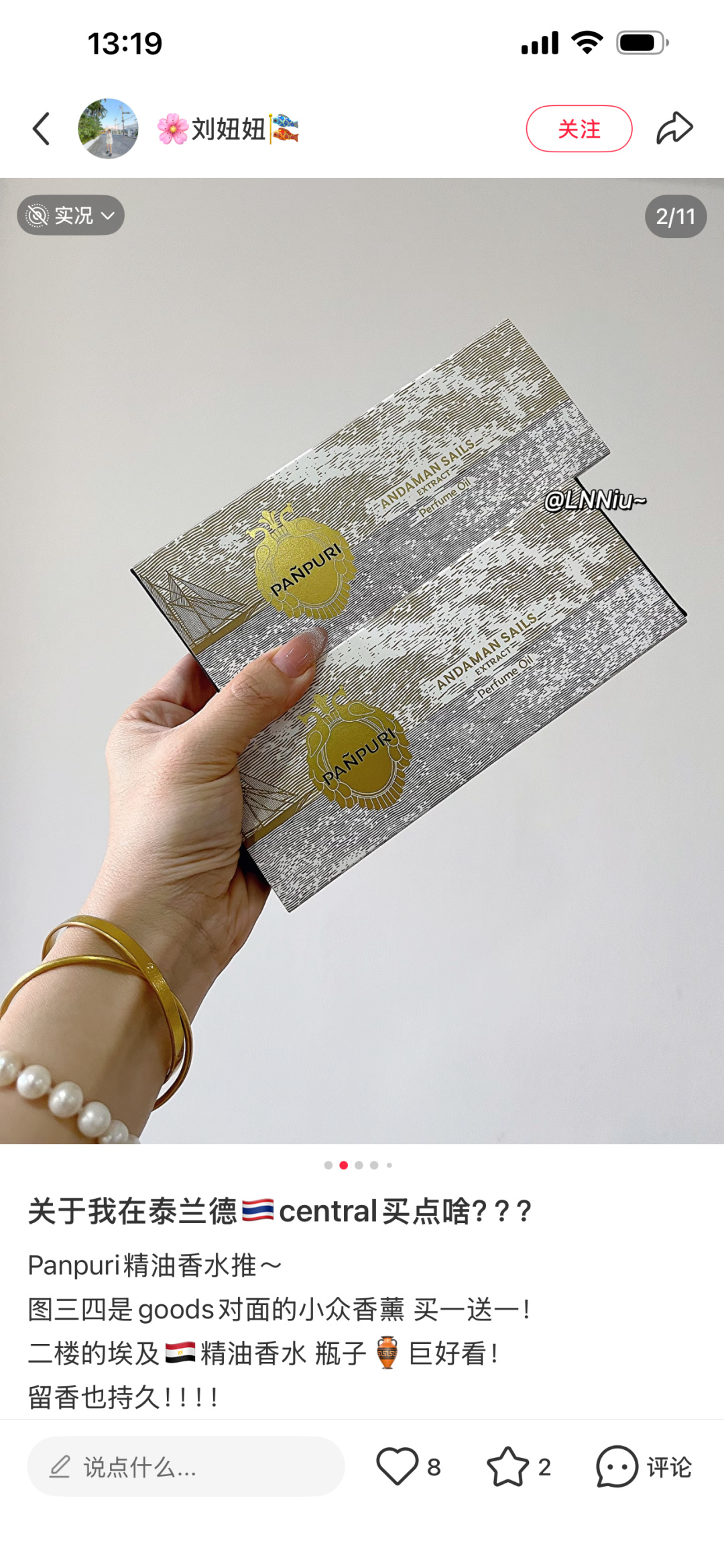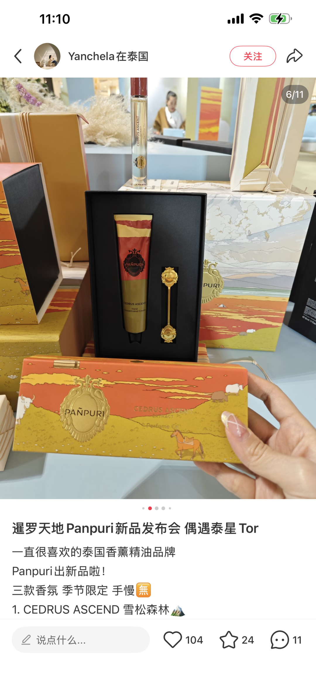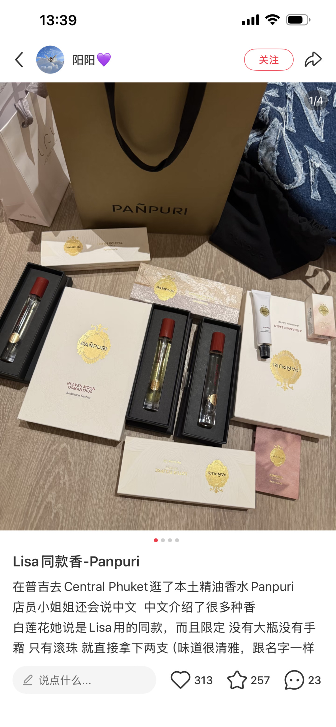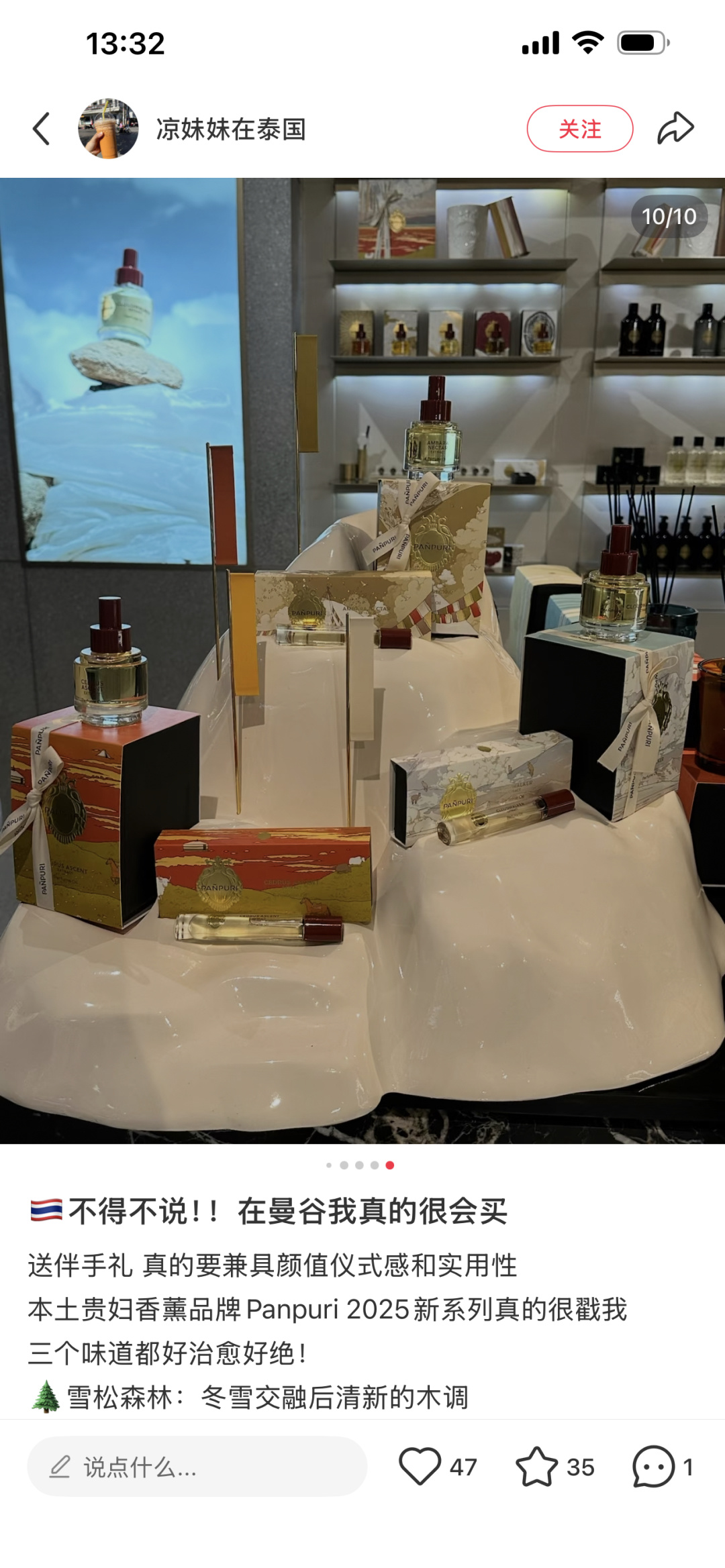 曼谷必入伴手礼 PANPUR*I 遇见曼谷香水油泰国香氛滚珠香水10ml 来啦! 官网正在售490软妹币 折扣完420软妹币左右 在泰国入手算下来也要将近360 370软妹币 所以代购那些200多的东西 不可能是柜子上出来的哈 这批货有一部分就是出给代购渠道哒 所以你们懂! 你们2只3只入手就行了 收到只会找我回购哒! 而且这个价格基本就是成本价 块八毛的利润哈 春夏来临~ 马上就是随时随地补香的季节啦 姐妹们一定不要错过! 自留五只 真的太好用啦! 每一个味道都在我审美上哈哈哈哈哈 而且她非常方便携带 滚珠设计留香更久 刚才发了预览 老粉还在说 每次去泰国🇹🇭曼谷 都要去他家逛一下 所有的香都值得入手 众所周知 热带🏝️ 泰国基本每天都要喷香水 能在本土竞争激烈的地方扎根的品牌 一定不是凡夫俗子! 全套包装 不同香调包装颜色是不同的 送人自用都很有面子 单独玻璃瓶 你们自己去看这种通透度 都是极好的 起订量巨大 要不是跟着订单出来 都拿不下真的~ 身边有做香认识的你们可以随便去问 而且都是进口玻璃材质 通透有质感 顶部是滚珠设计 肉眼可见的精致程度 贴纸阿 编码都在 不同香调编码也都是独立哒 一共五个香调 我真的说实话都很喜欢… CEDRUS ASCENT雪松森林 限定系列 雪松的木质香 是男生女生都可以用的 一家人的选择 送人不知道选什么可以选它 前调:佛手柑/马告 中调:秘鲁香脂/大马士革玫瑰精油 后调:有机桧木/雪松木/檀香/ 麝香/乳香/广藿香 LOTUS ECLIPSE 白莲海韵# 清爽的青柠加上茉莉花香后调带檀香木 清爽不腻 前调:青柠 芫荽海盐中调:茉莉 白莲花 后调:岩兰草 檀香木 零陵香豆 黄葵籽 ANDAMAN SAILS 安达曼海# 我个人非常喜欢 不知道是不是因为他的配料比较少 反而特别好闻 清爽不重佛手柑的清香我觉得没有人不喜欢加上了绿茶 中和的太完美了! 首选! 前调:佛手柑 中调:绿茶 后调:肉豆蔻/檀香木 CLOUDWALKER云麝漫行# 限定系列 温暖又细腻的香调 中合果香花香与麝香 人见人爱 前调:梨/佛手柑/橙花中调:含羞草/茉莉花 后调:琥珀/麝香/香豆子/桧木/雪松木/檀香/拉丹木 AMBARA NECTAR 琥珀花蜜# 标准的花香➕佛手柑与琥珀 他家的所有香调都给人一种不腻的清新 前调:佛手柑 中调:玫瑰/抹茶拿铁/绿茶/含羞草/茉莉 后调:香豆素/暖香草/拉丹木/琥珀/香根草/雪松/檀香/麝香 方便携带 持久留香 补香方便 他不是传统意义上的香水 他是香水油 可吸收无毒害 与肌肤接触 香味满满释放环绕