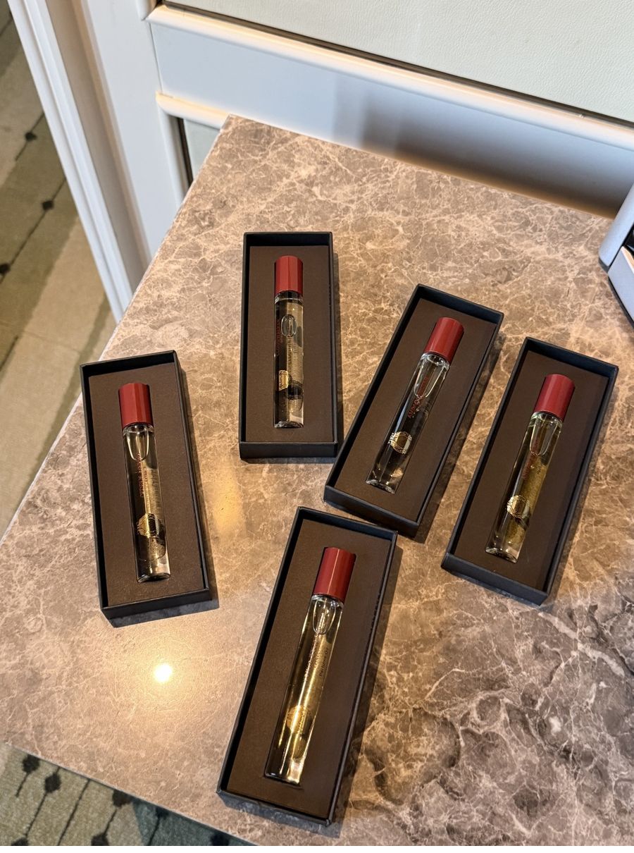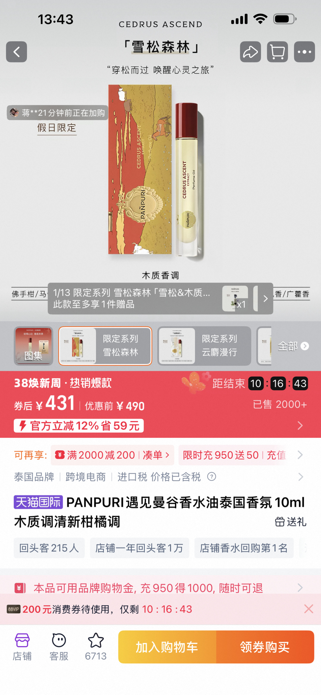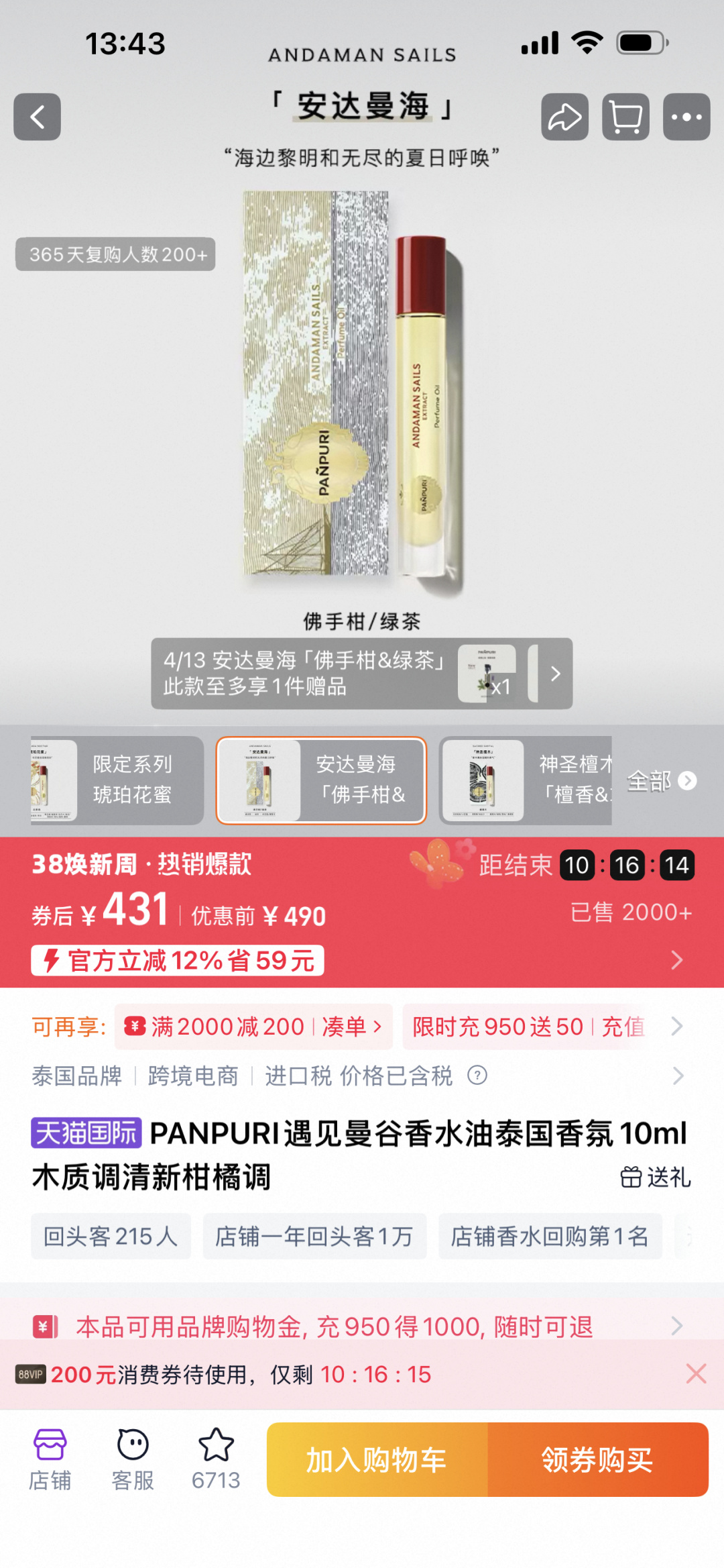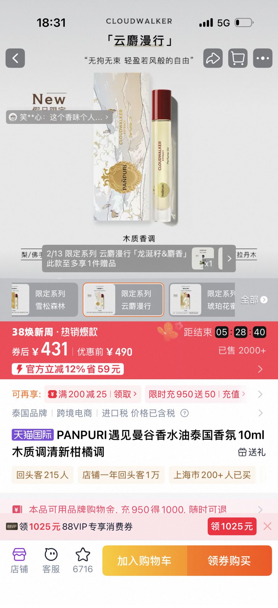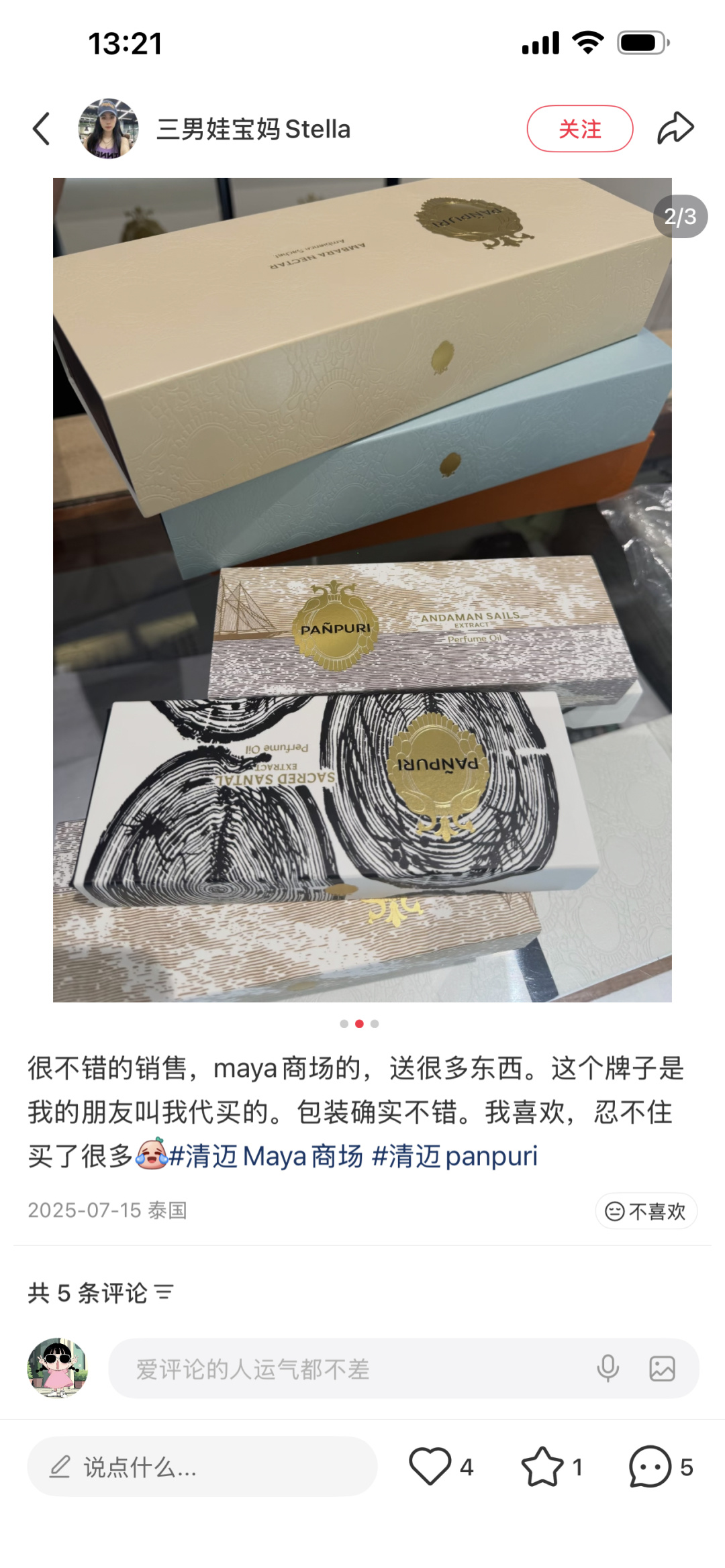 曼谷必入伴手礼 PANPUR*I 遇见曼谷香水油泰国香氛滚珠香水10ml 来啦! 官网正在售490软妹币 折扣完420软妹币左右 在泰国入手算下来也要将近360 370软妹币 所以代购那些200多的东西 不可能是柜子上出来的哈 这批货有一部分就是出给代购渠道哒 所以你们懂! 你们2只3只入手就行了 收到只会找我回购哒! 而且这个价格基本就是成本价 块八毛的利润哈 春夏来临~ 马上就是随时随地补香的季节啦 姐妹们一定不要错过! 自留五只 真的太好用啦! 每一个味道都在我审美上哈哈哈哈哈 而且她非常方便携带 滚珠设计留香更久 刚才发了预览 老粉还在说 每次去泰国🇹🇭曼谷 都要去他家逛一下 所有的香都值得入手 众所周知 热带🏝️ 泰国基本每天都要喷香水 能在本土竞争激烈的地方扎根的品牌 一定不是凡夫俗子! 全套包装 不同香调包装颜色是不同的 送人自用都很有面子 单独玻璃瓶 你们自己去看这种通透度 都是极好的 起订量巨大 要不是跟着订单出来 都拿不下真的~ 身边有做香认识的你们可以随便去问 而且都是进口玻璃材质 通透有质感 顶部是滚珠设计 肉眼可见的精致程度 贴纸阿 编码都在 不同香调编码也都是独立哒 一共五个香调 我真的说实话都很喜欢… CEDRUS ASCENT雪松森林 限定系列 雪松的木质香 是男生女生都可以用的 一家人的选择 送人不知道选什么可以选它 前调:佛手柑/马告 中调:秘鲁香脂/大马士革玫瑰精油 后调:有机桧木/雪松木/檀香/ 麝香/乳香/广藿香 LOTUS ECLIPSE 白莲海韵# 清爽的青柠加上茉莉花香后调带檀香木 清爽不腻 前调:青柠 芫荽海盐中调:茉莉 白莲花 后调:岩兰草 檀香木 零陵香豆 黄葵籽 ANDAMAN SAILS 安达曼海# 我个人非常喜欢 不知道是不是因为他的配料比较少 反而特别好闻 清爽不重佛手柑的清香我觉得没有人不喜欢加上了绿茶 中和的太完美了! 首选! 前调:佛手柑 中调:绿茶 后调:肉豆蔻/檀香木 CLOUDWALKER云麝漫行# 限定系列 温暖又细腻的香调 中合果香花香与麝香 人见人爱 前调:梨/佛手柑/橙花中调:含羞草/茉莉花 后调:琥珀/麝香/香豆子/桧木/雪松木/檀香/拉丹木 AMBARA NECTAR 琥珀花蜜# 标准的花香➕佛手柑与琥珀 他家的所有香调都给人一种不腻的清新 前调:佛手柑 中调:玫瑰/抹茶拿铁/绿茶/含羞草/茉莉 后调:香豆素/暖香草/拉丹木/琥珀/香根草/雪松/檀香/麝香 方便携带 持久留香 补香方便 他不是传统意义上的香水 他是香水油 可吸收无毒害 与肌肤接触 香味满满释放环绕