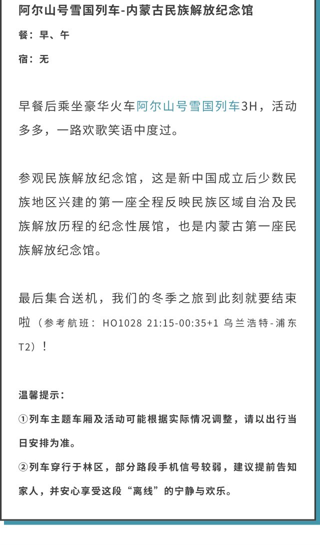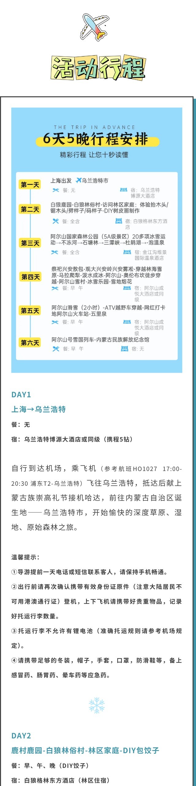 去程航班参考:HO1027 17:00-20:30 浦东T2-乌兰浩特