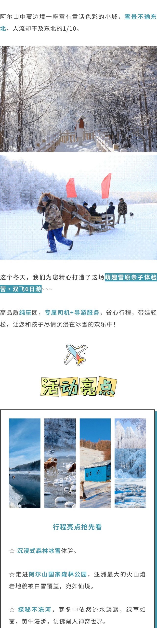 【寒假亲子营】含机票6天5晚嗨玩雪原阿尔山!独家升级1晚五钻温泉酒店+体验雪国专列!