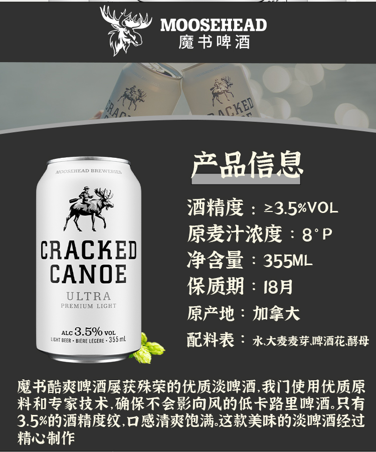 加拿大进口魔书酷爽啤酒 3.5%vol 355ml*24