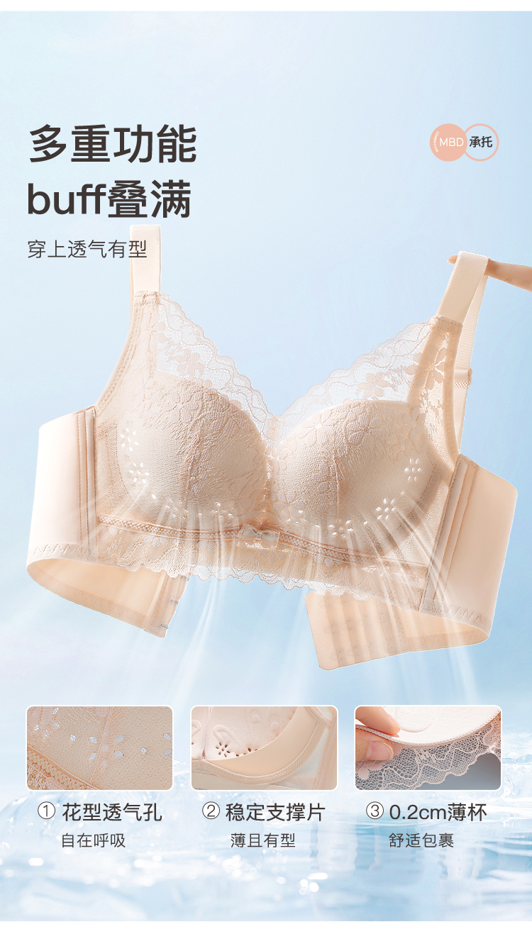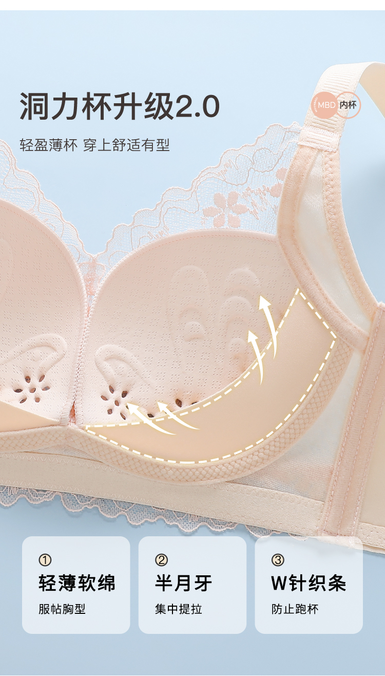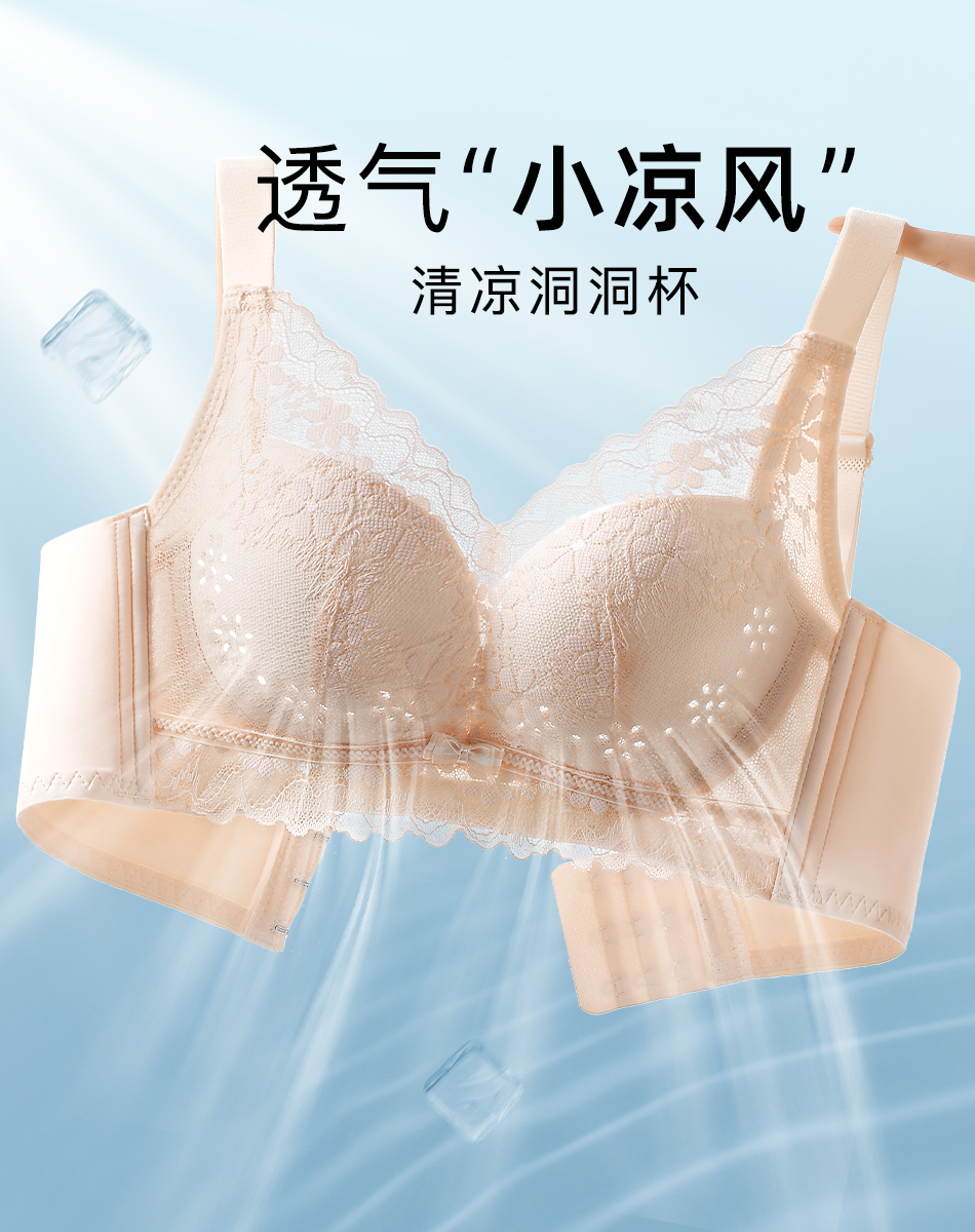 【透气洞洞杯】时尚蕾丝上托聚拢内衣女轻薄有型收副乳无钢圈文胸桃花仙姿