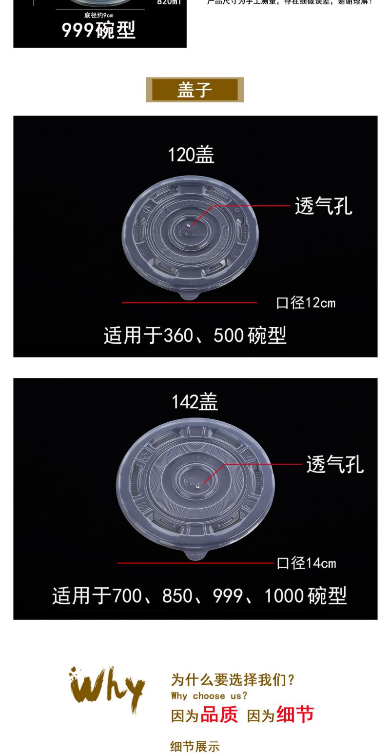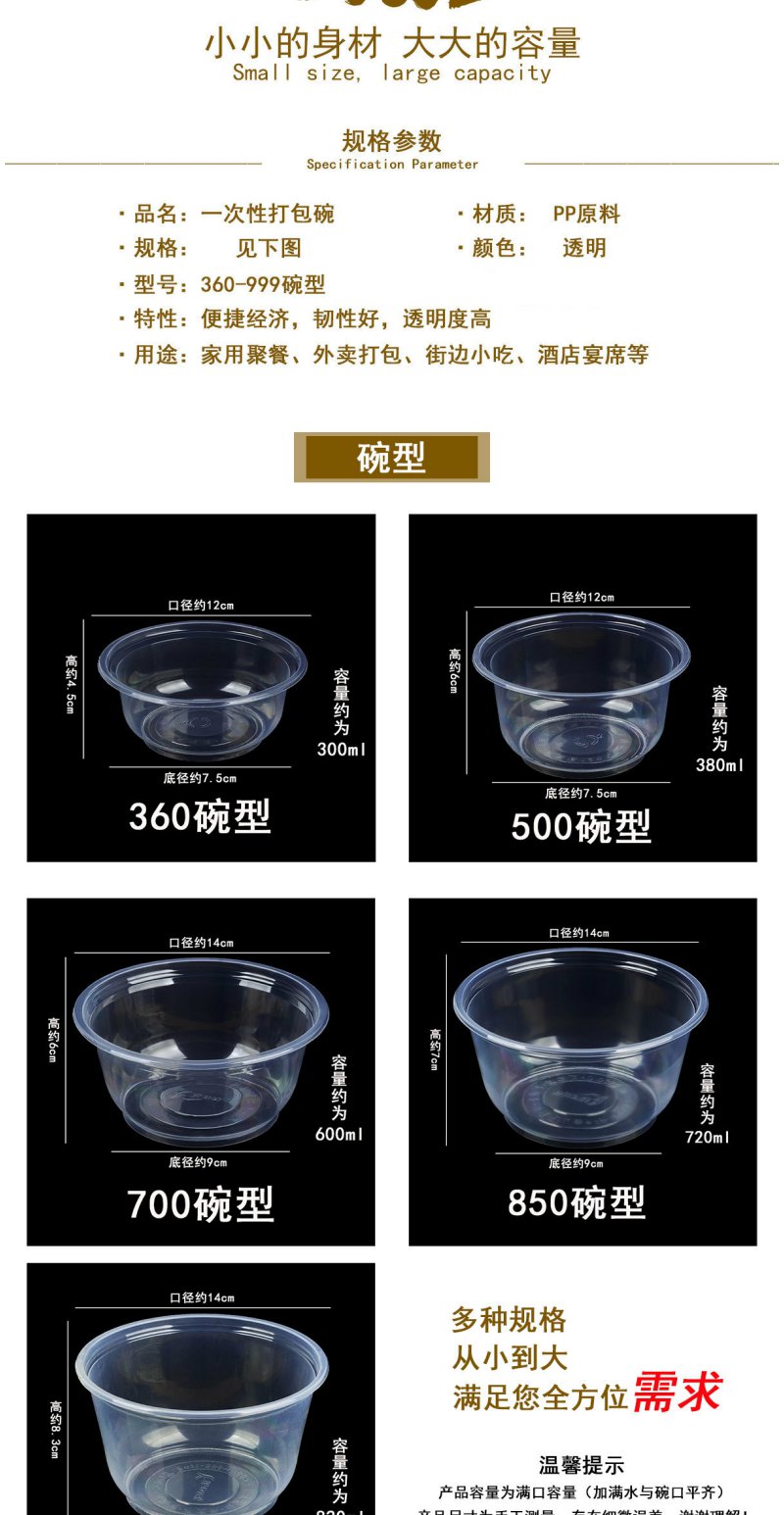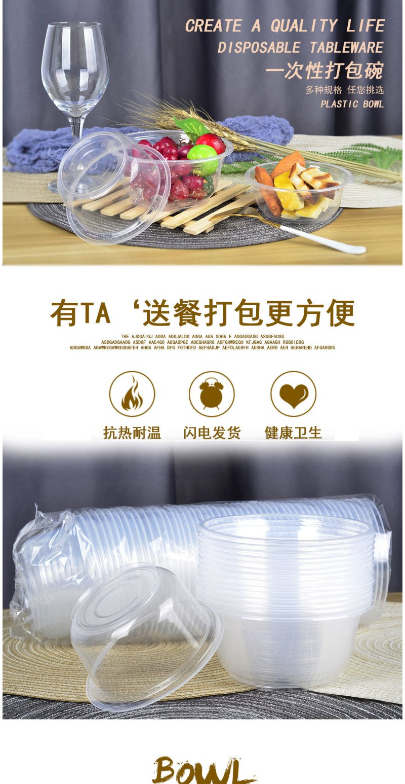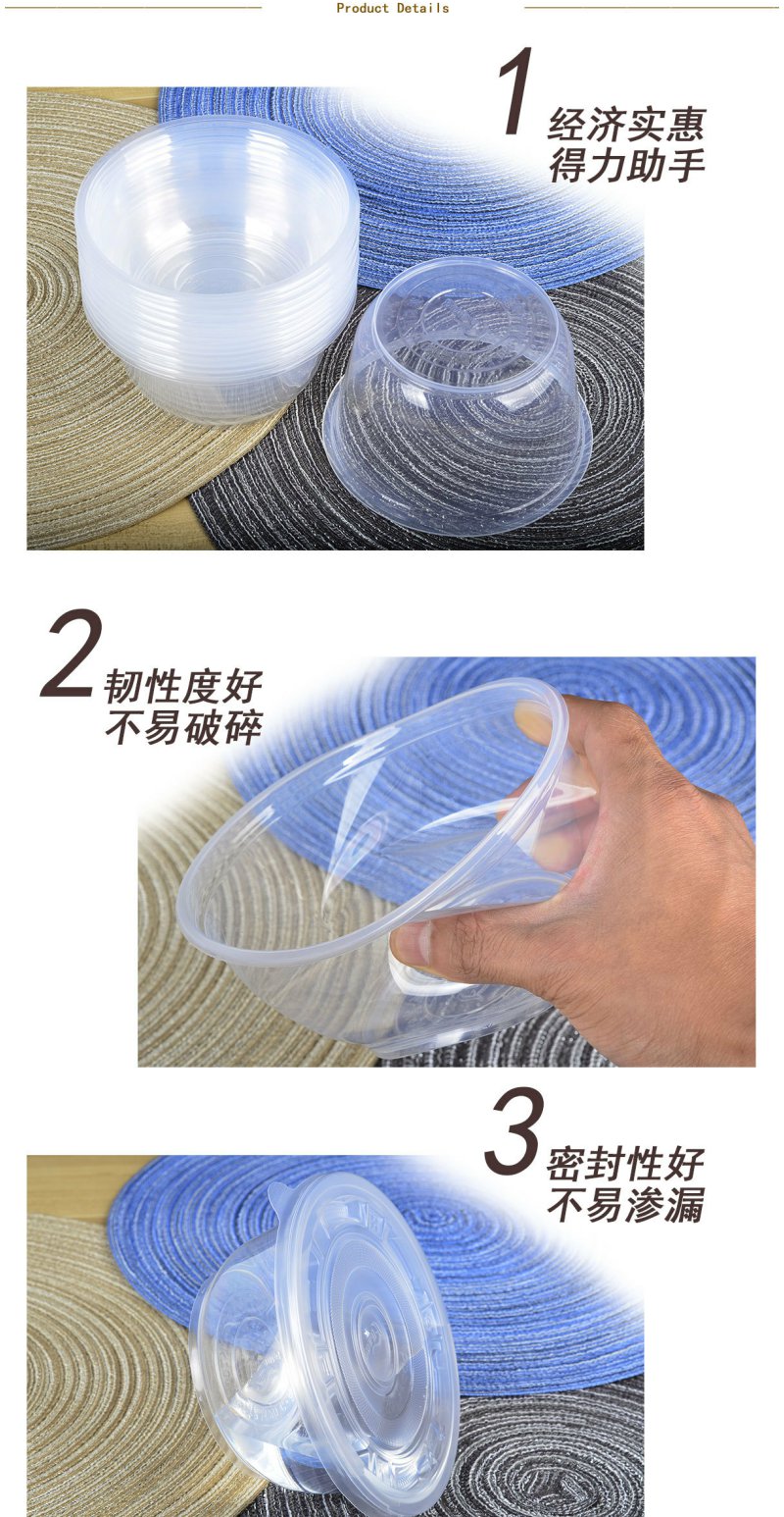 820ml一次性碗圆形餐盒 可微波 带盖外卖盒保鲜盒加厚透明打包打包盒一次性汤碗