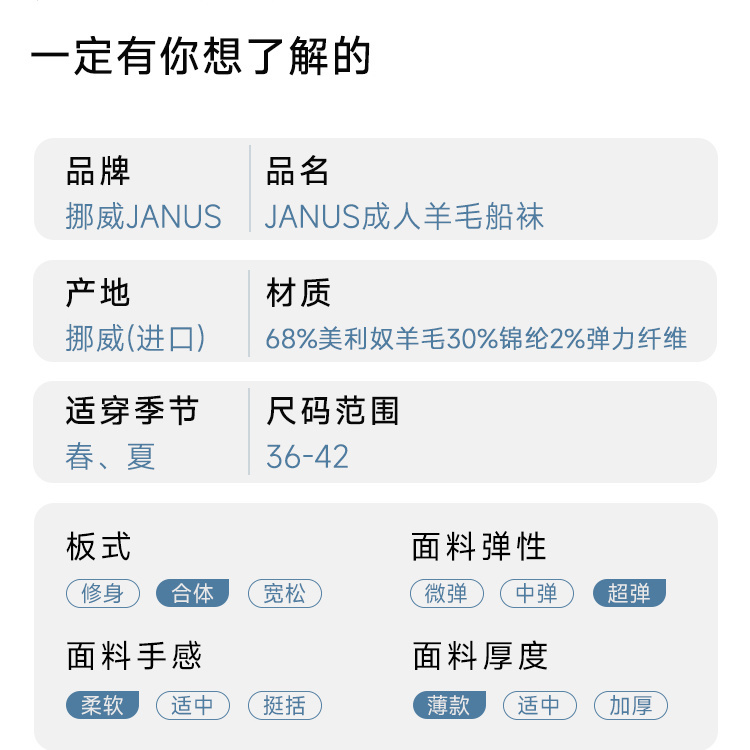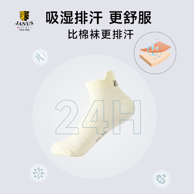 低于双11【36-46码】挪威进口JANUS春夏 68%美利奴羊毛成人船袜 2双装【2025新款】