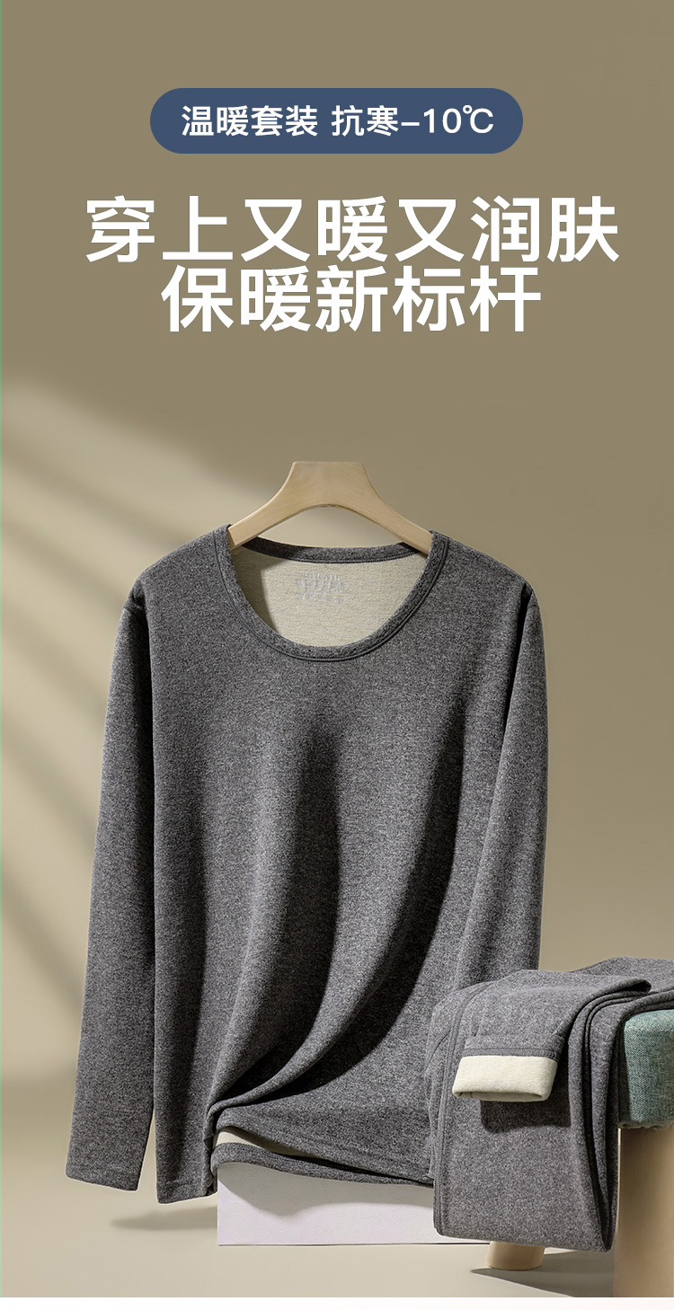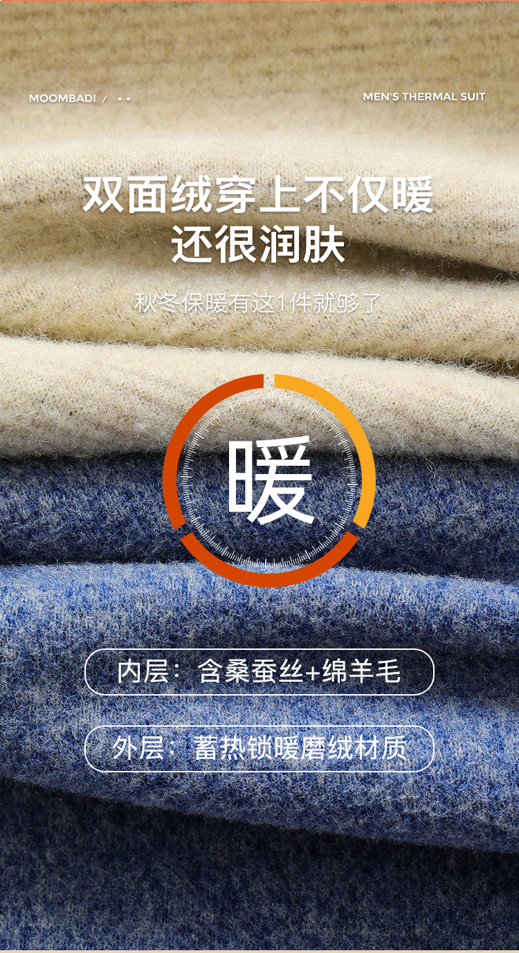 加绒加厚男士保暖内衣套装双面磨绒蚕丝养肤秋衣秋裤秋冬男士满天星保暖套装