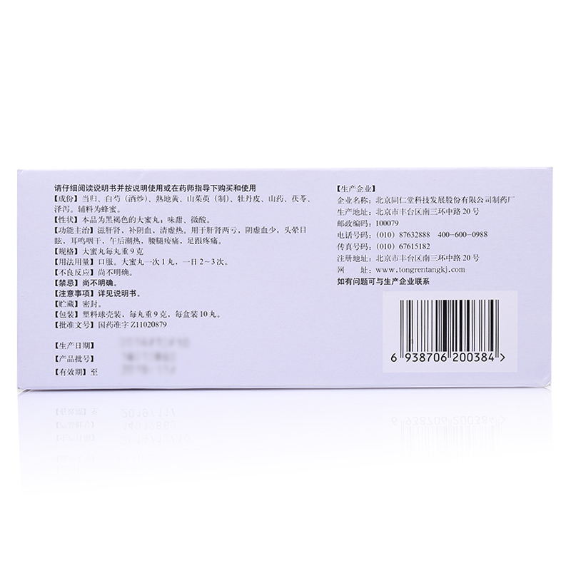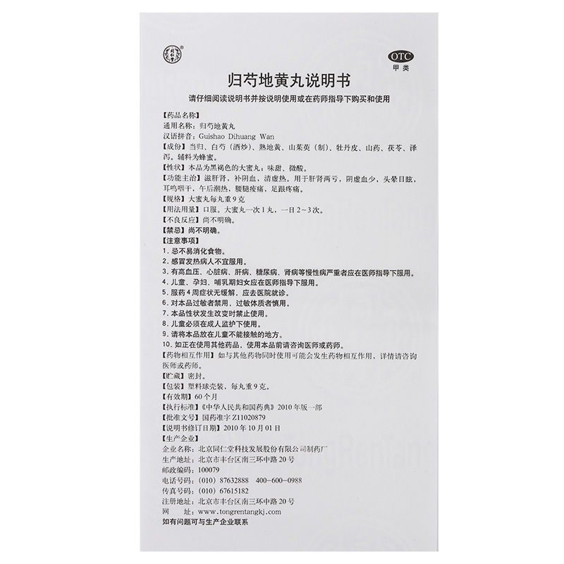 低至20/盒】同仁堂归芍地黄丸10丸/盒滋阴血补肝肾阴亏虚头晕目眩