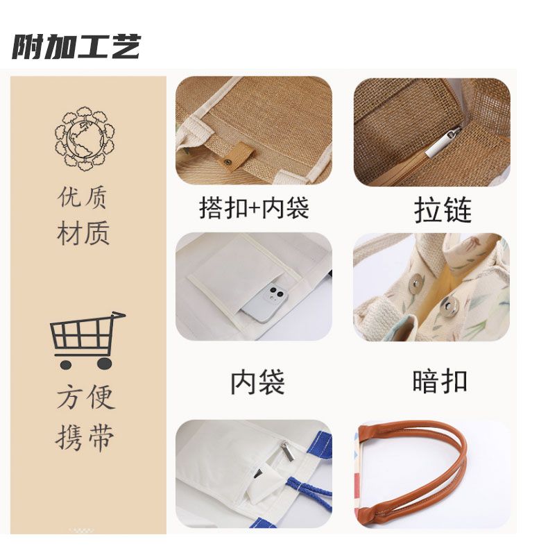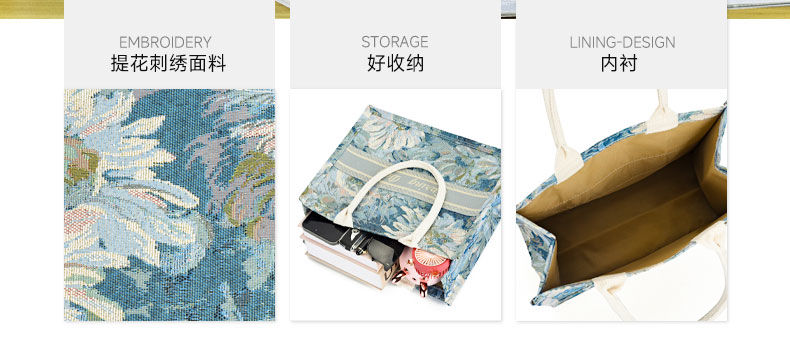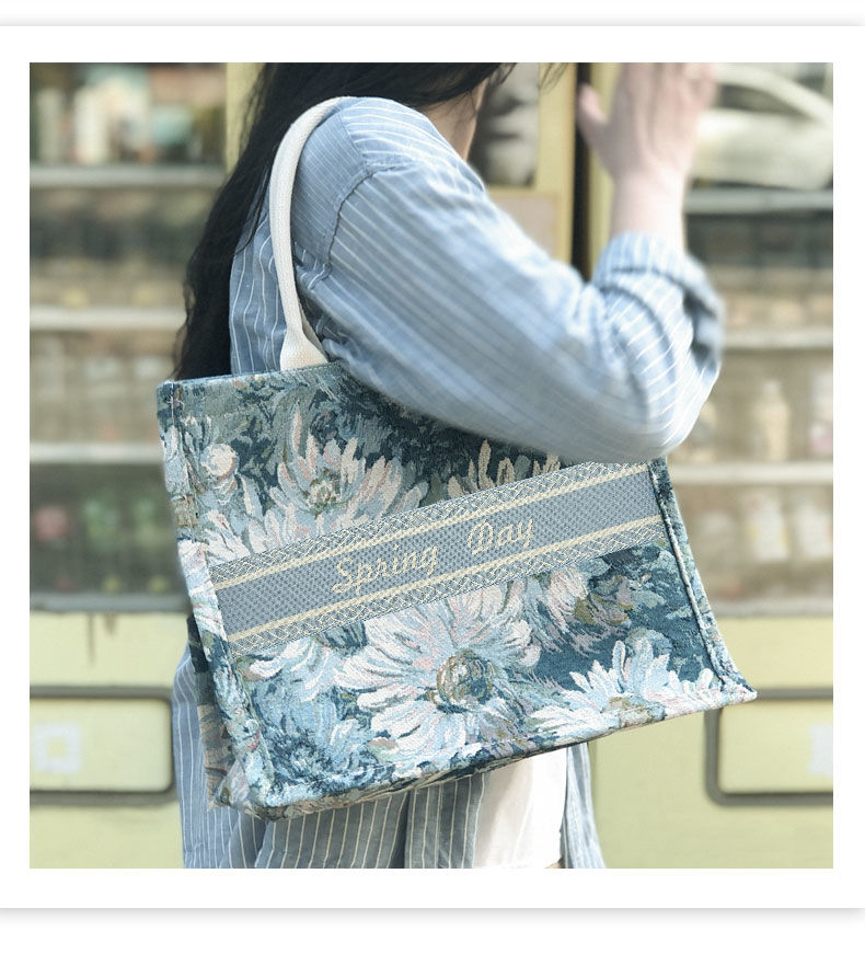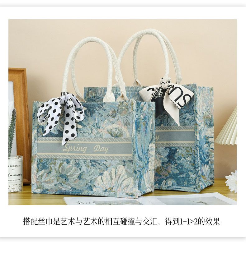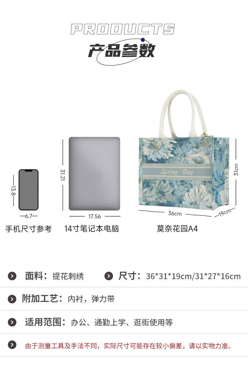 莫奈花园提花油画DIY托特包购物袋手提袋女生小清新麻布袋子定制